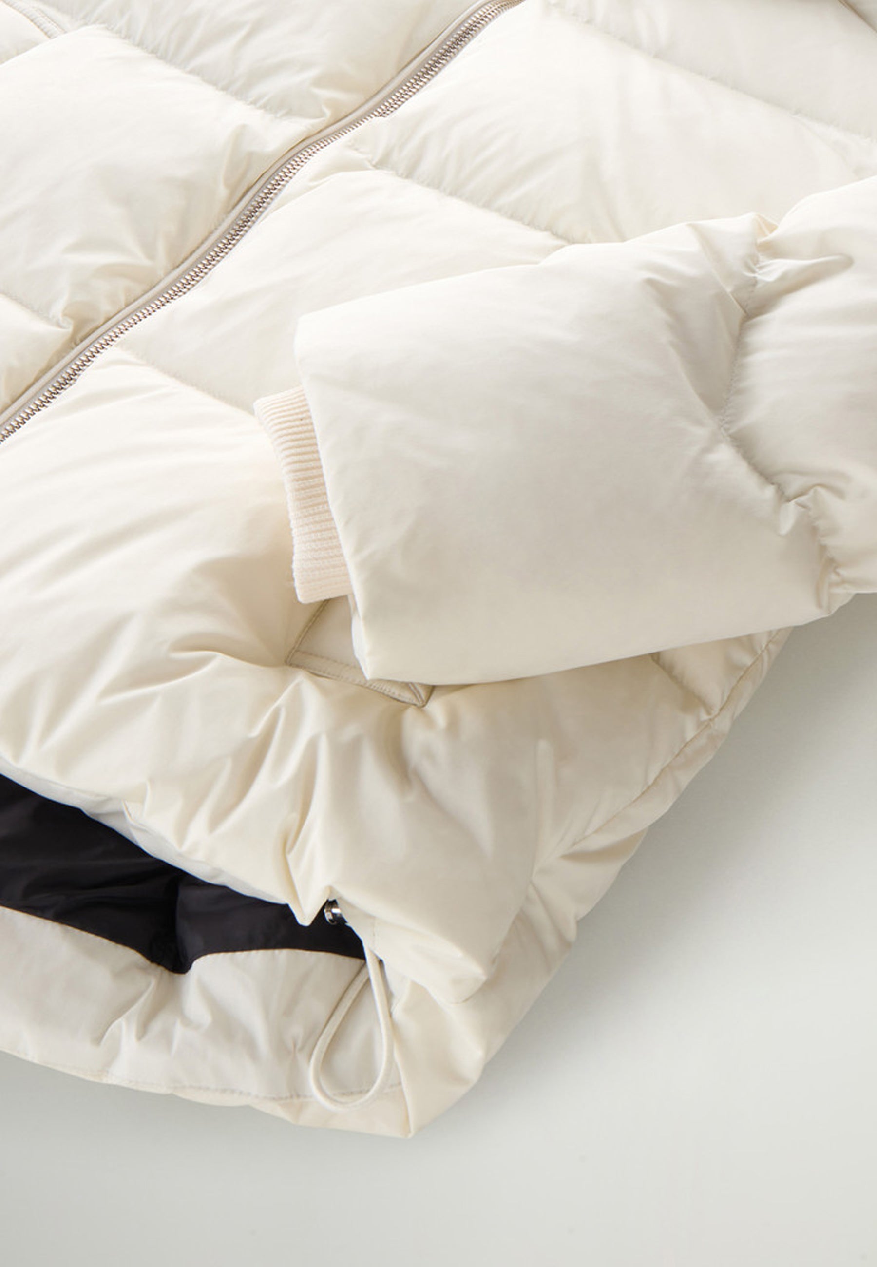 L'Alsea Parka non è solo caldo e avvolgente: è anche pratico, funzionale ed elegante. Caratterizzato da una struttura rilassata per adattarsi agli strati sottostanti, è resistente all'acqua e al vento ed è imbottito e trapuntato per trattenere il calore corporeo. Il logo Woolrich sul cappuccio staccabile aggiunge un tocco di classe.
