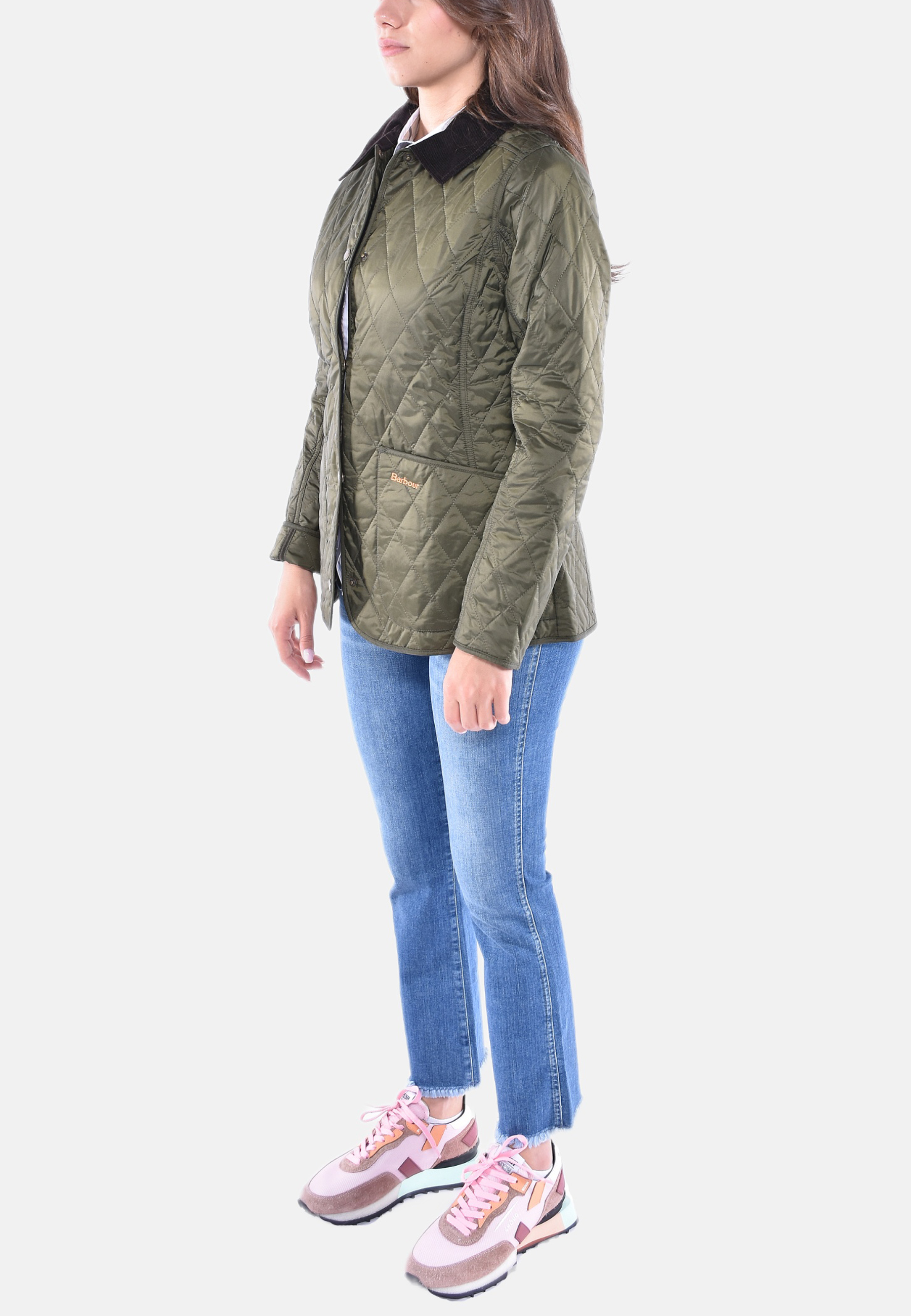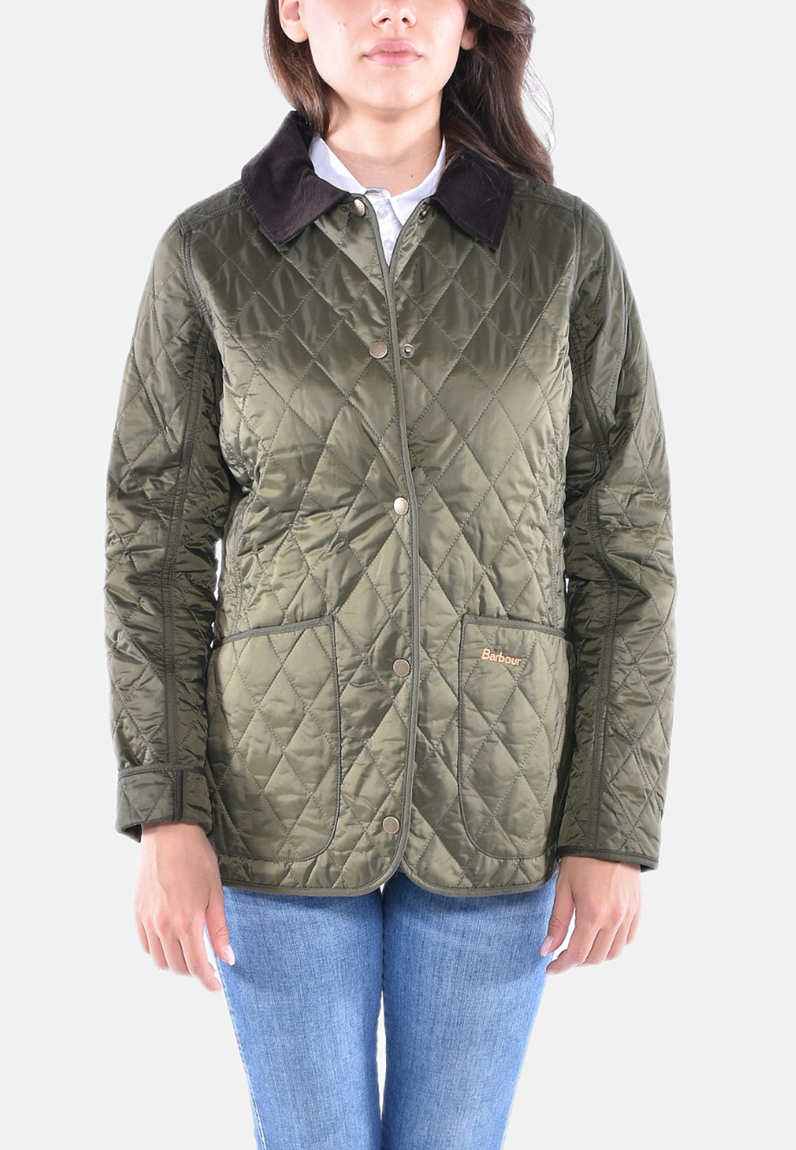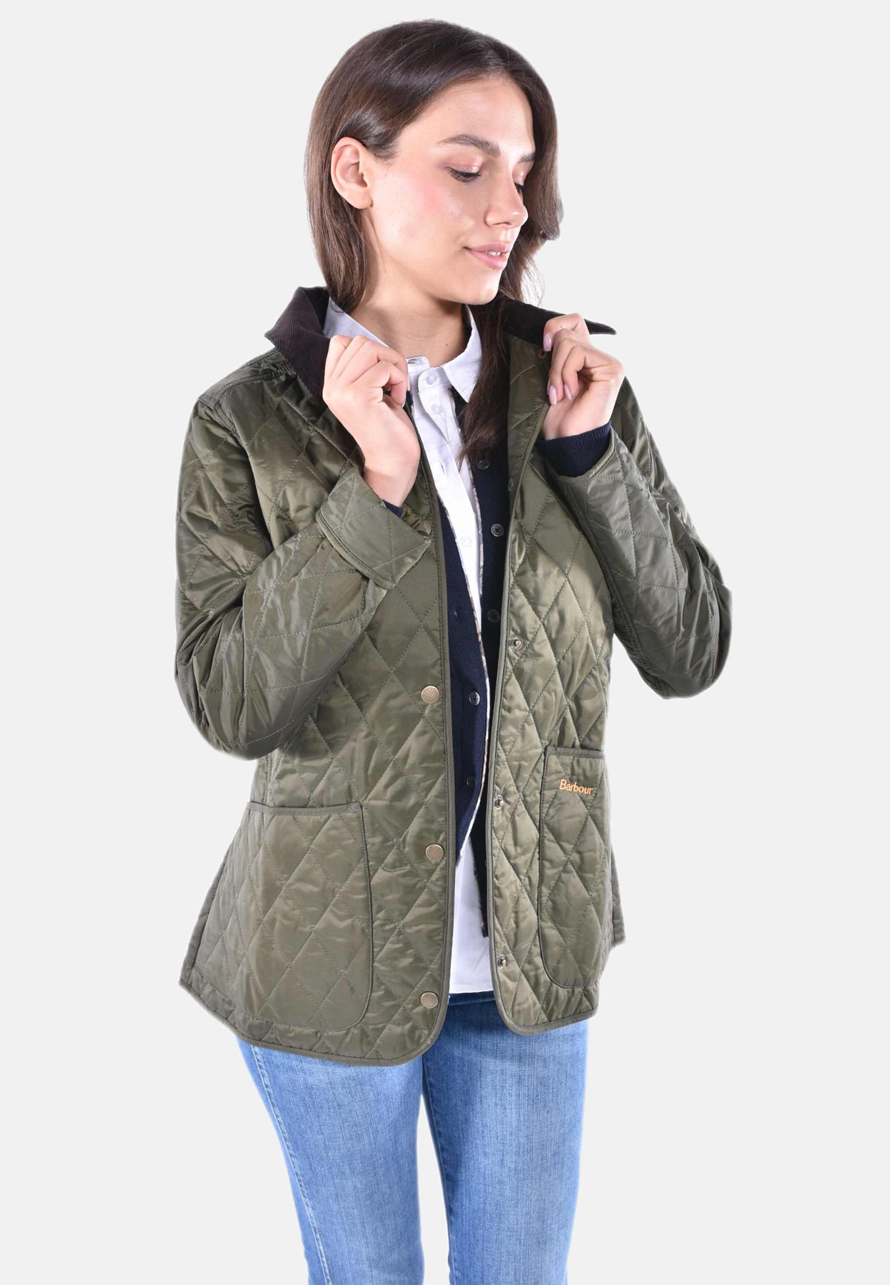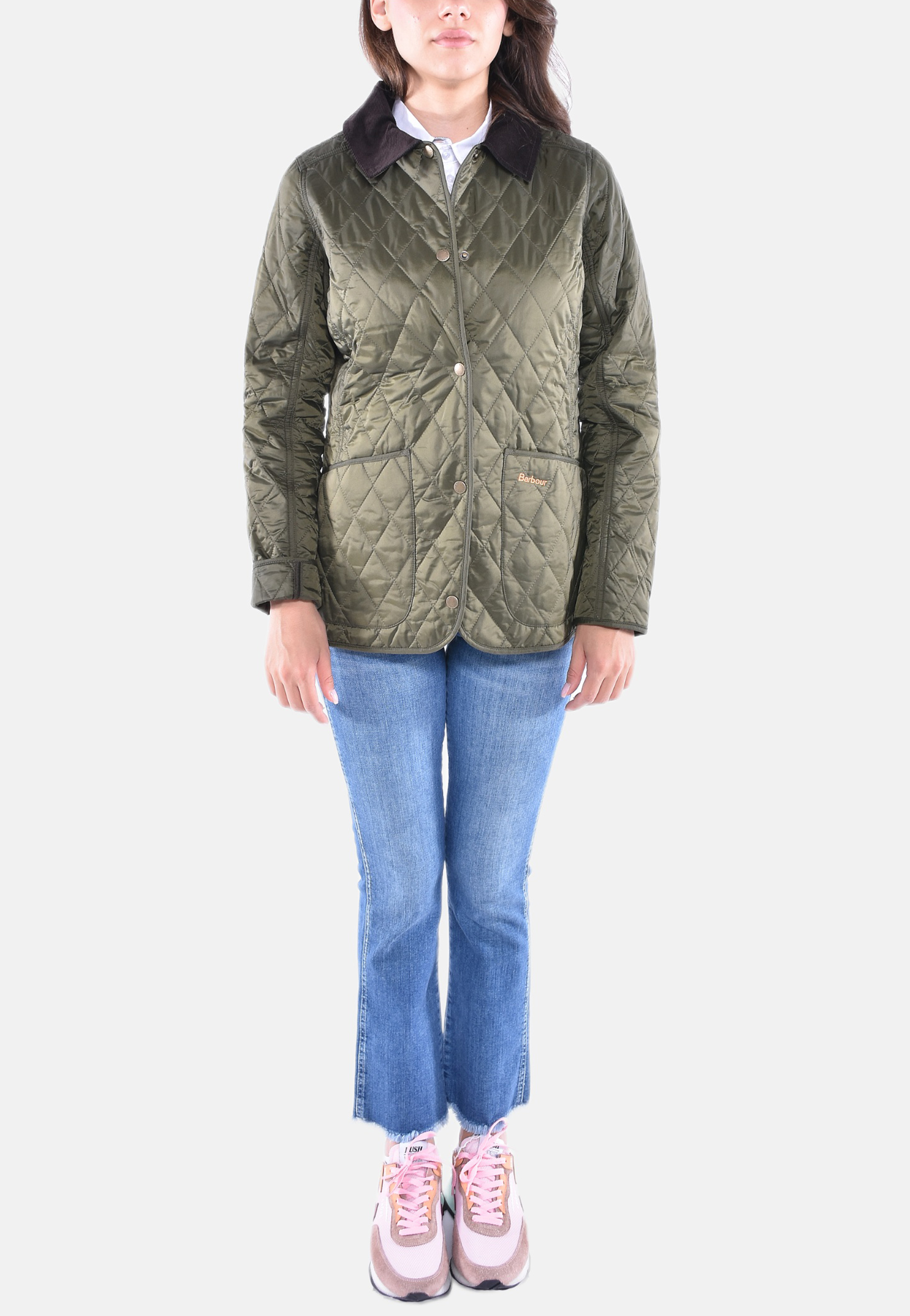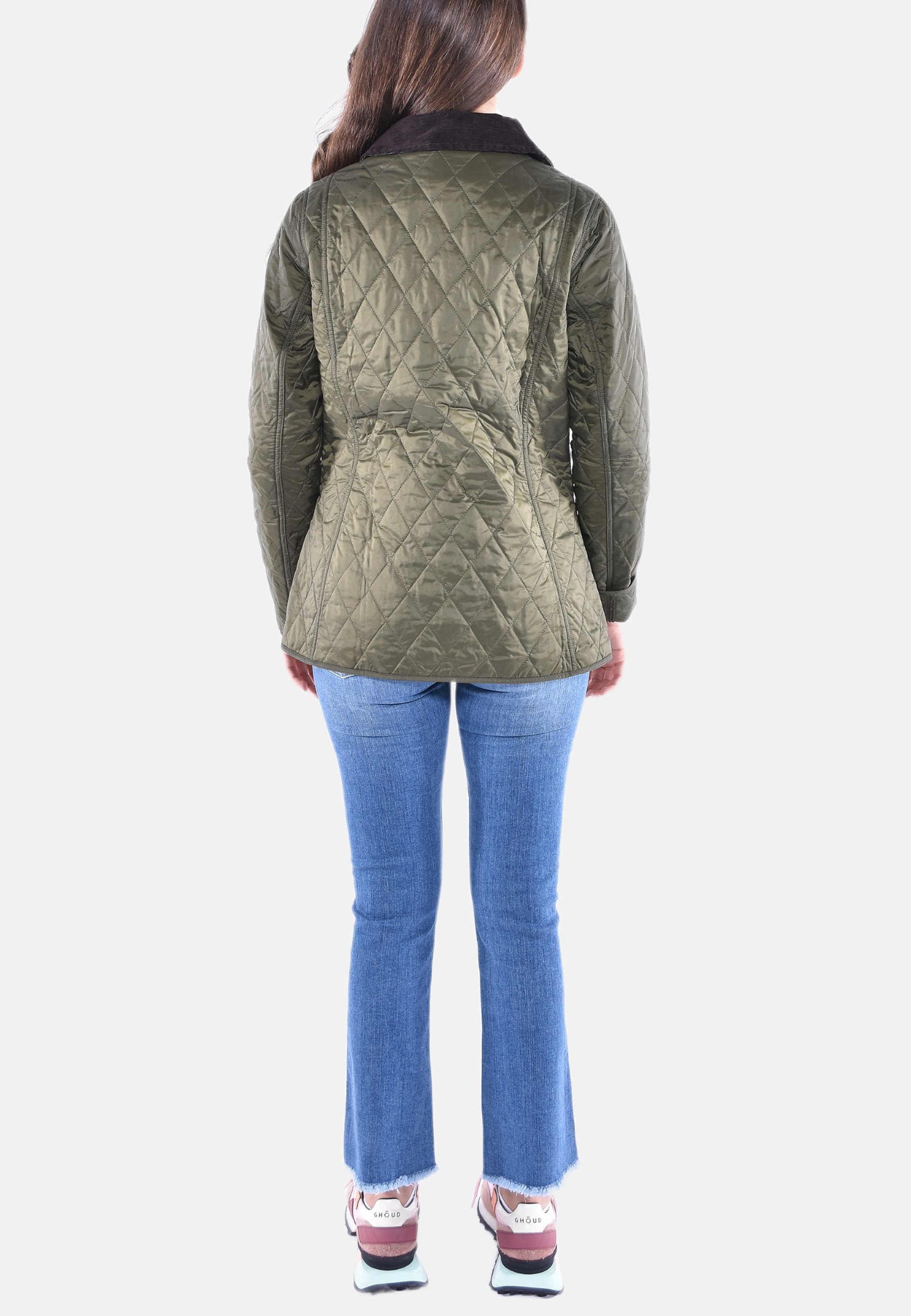 Questa elegante giacca trapuntata da donna presenta cuciture sul corpo che valorizzano la silhouette femminile. Il colletto in velluto a coste e l'esterno trapuntato a rombi creano il caratteristico look Barbour.
