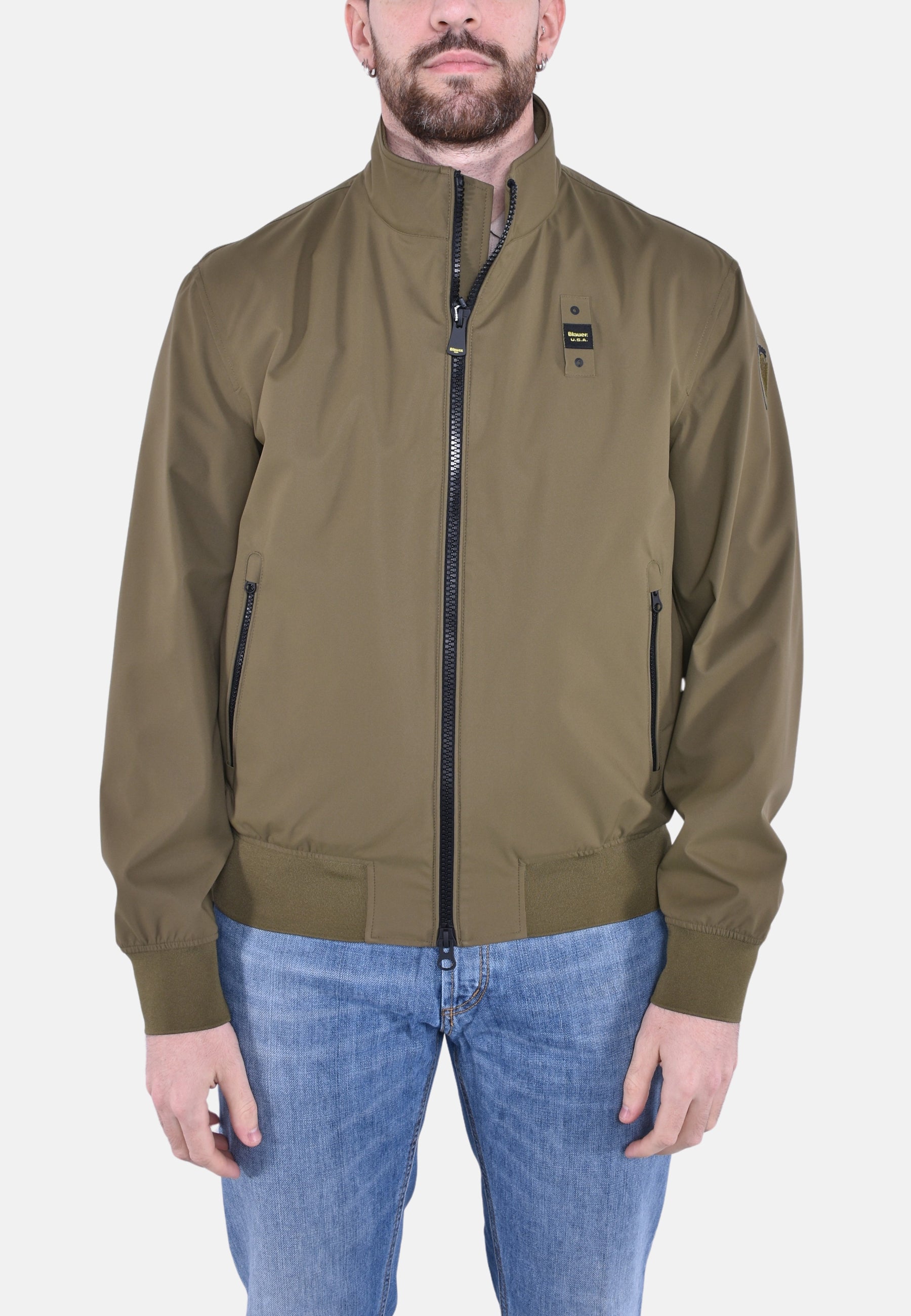 Bomber in neoprene leggero monocolore con cuciture interne nastrate. Capo raffinato indicato per le fresche serate e per le gite fuoriporta.