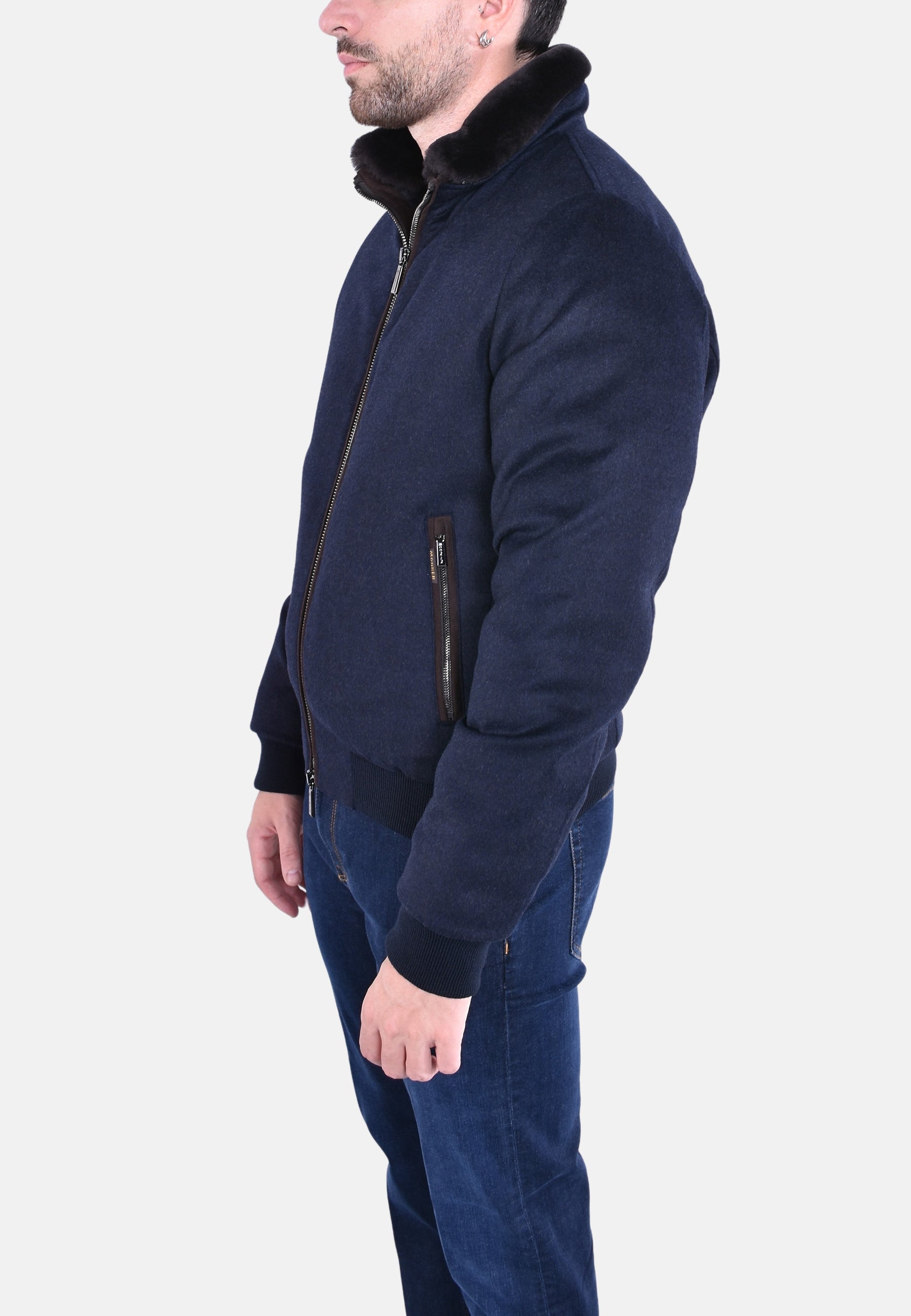 Bomber ibrido imbottito in piuma d’oca trapuntato a boudin, appartenente alla linea Acqua (1 ombrellino). Realizzato in un mix di materiali: tessuto tecnico con resinatura idrorepellente abbinato a parti in flanella di lana mista a cashmere con membrana traspirante e waterproof.