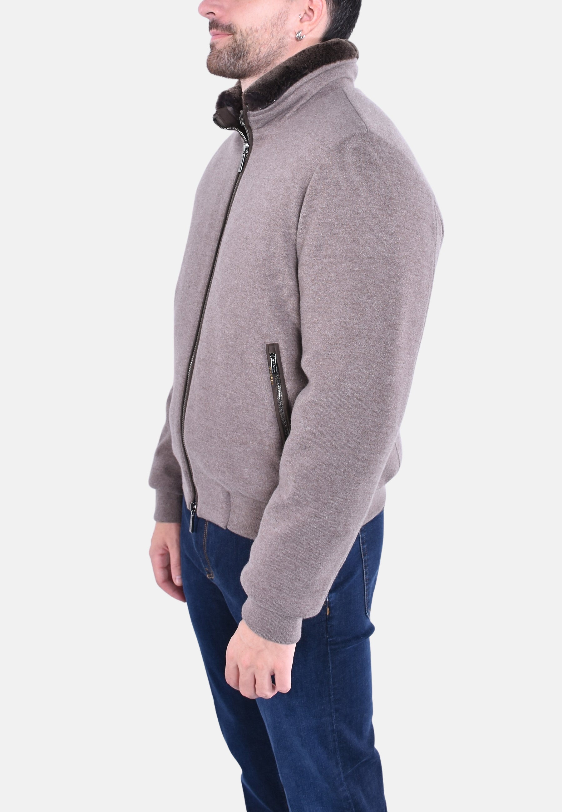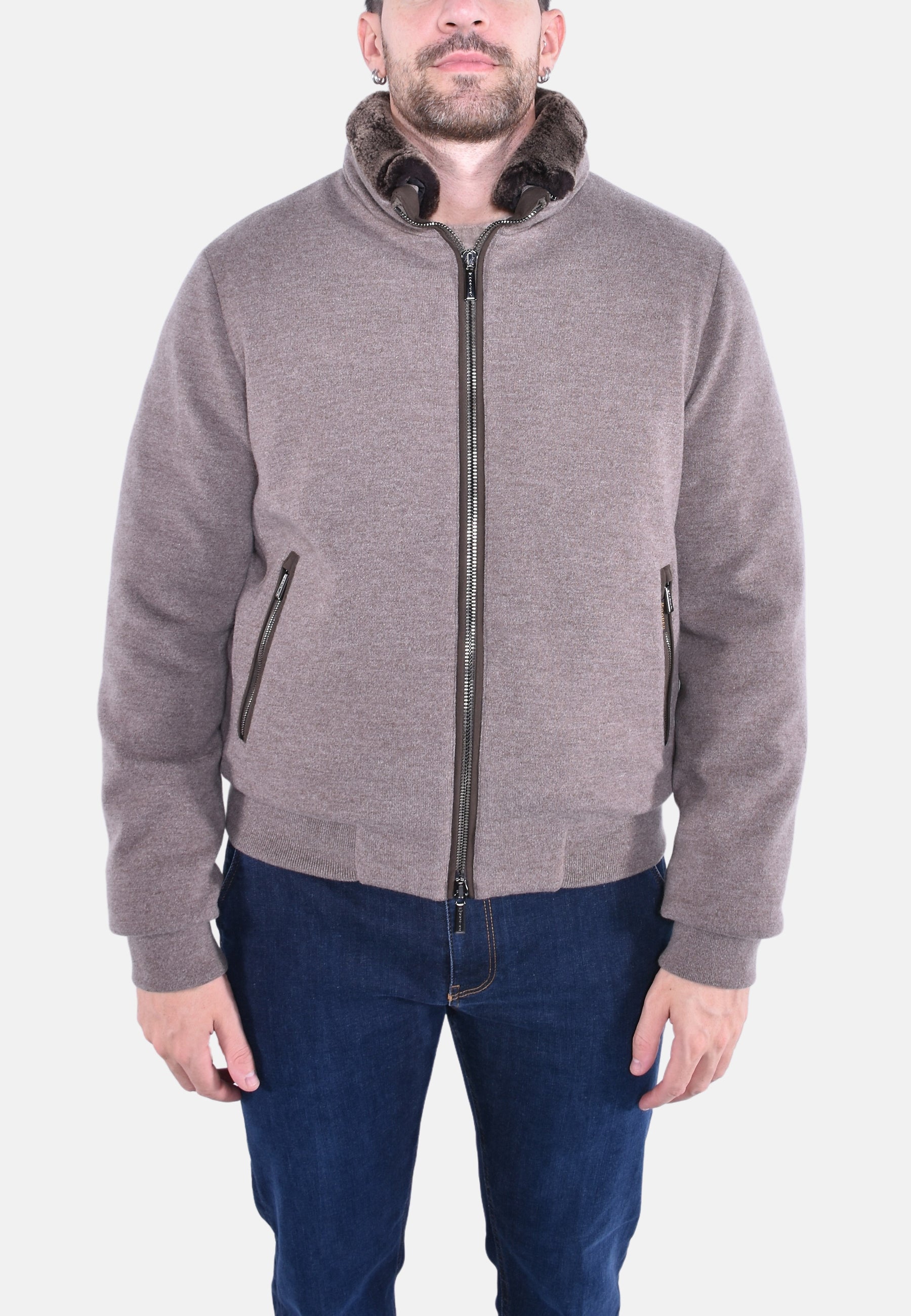 Bomber ibrido imbottito in piuma d’oca trapuntato a boudin, appartenente alla linea Acqua (1 ombrellino). Realizzato in un mix di materiali: tessuto tecnico con resinatura idrorepellente abbinato a parti in flanella di lana mista a cashmere con membrana traspirante e waterproof.