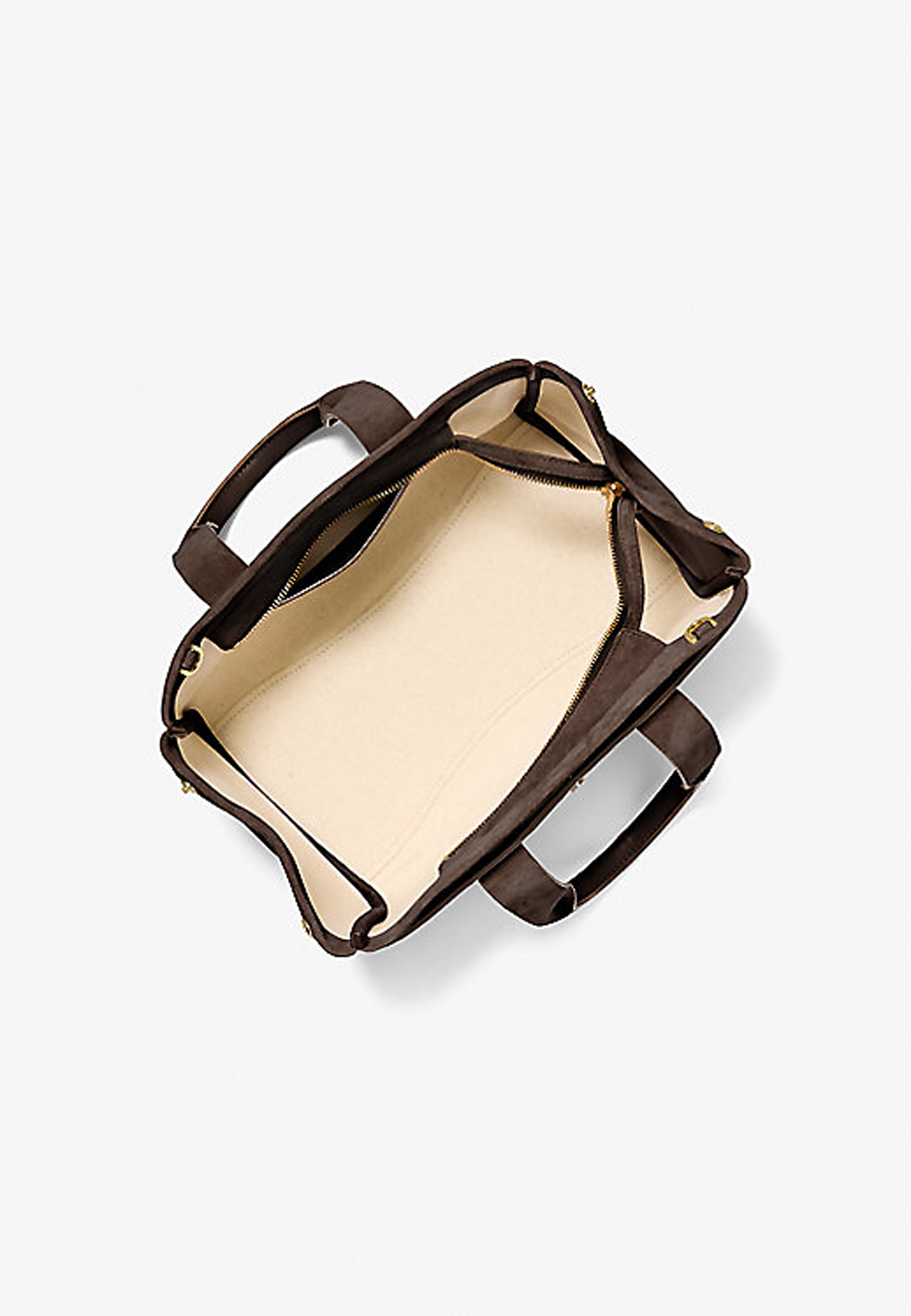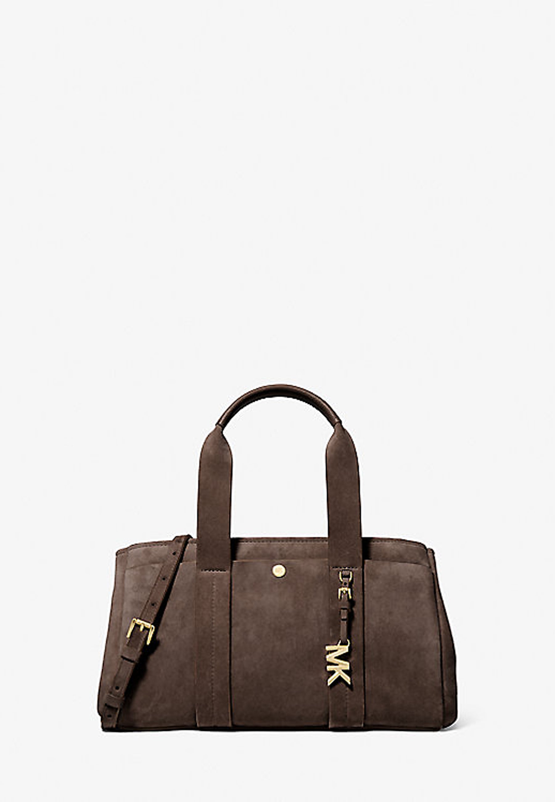 La nostra borsa a mano Romee è un concentrato di eleganza contemporanea. Realizzata in pelle scamosciata, è decorata con un ciondolo con logo MK lucido. I robusti manici superiori sono perfetti per indossarla comodamente a spalla, mentre la tracolla offre la massima libertà di movimento e un tocco di stile in più.