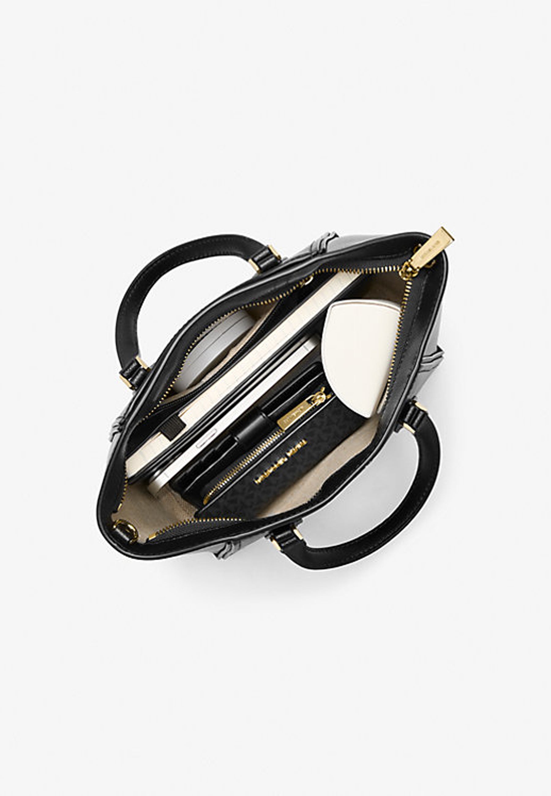 Con una silhouette moderna e uno stile classico, la borsa Taryn è perfetta per contenere gli oggetti essenziali quotidiani come telefono e portafoglio. Realizzata in pelle, offre un design convertibile per essere indossata a mano o a tracolla. Completa il look con accessori abbinati al portachiavi dorato.