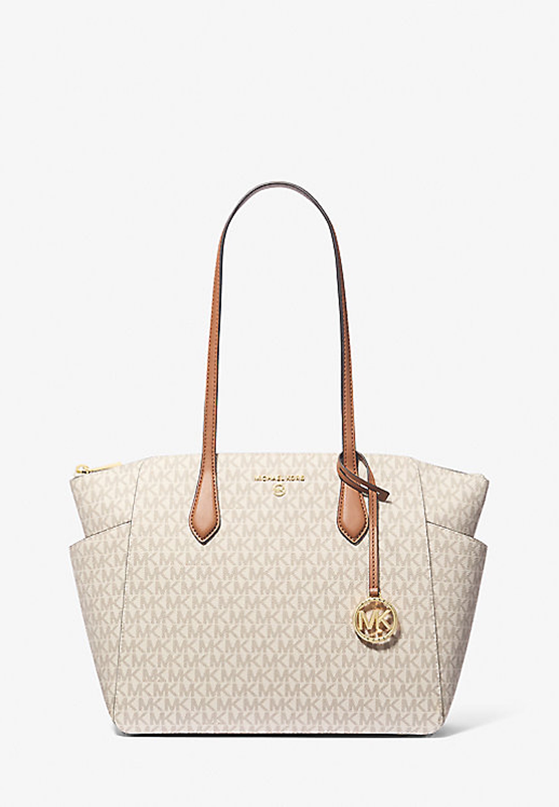 La borsa tote Marilyn è un accessorio indispensabile per tutti i giorni. Le iconiche iniziali "MK" donano un fascino inconfondibile a questo modello dal design strutturato, mentre l'interno capiente è dotato di tasche apposite per gli oggetti di uso quotidiano. I manici sottili la rendono ideale per essere indossata comodamente a spalla nelle giornate ricche di impegni.