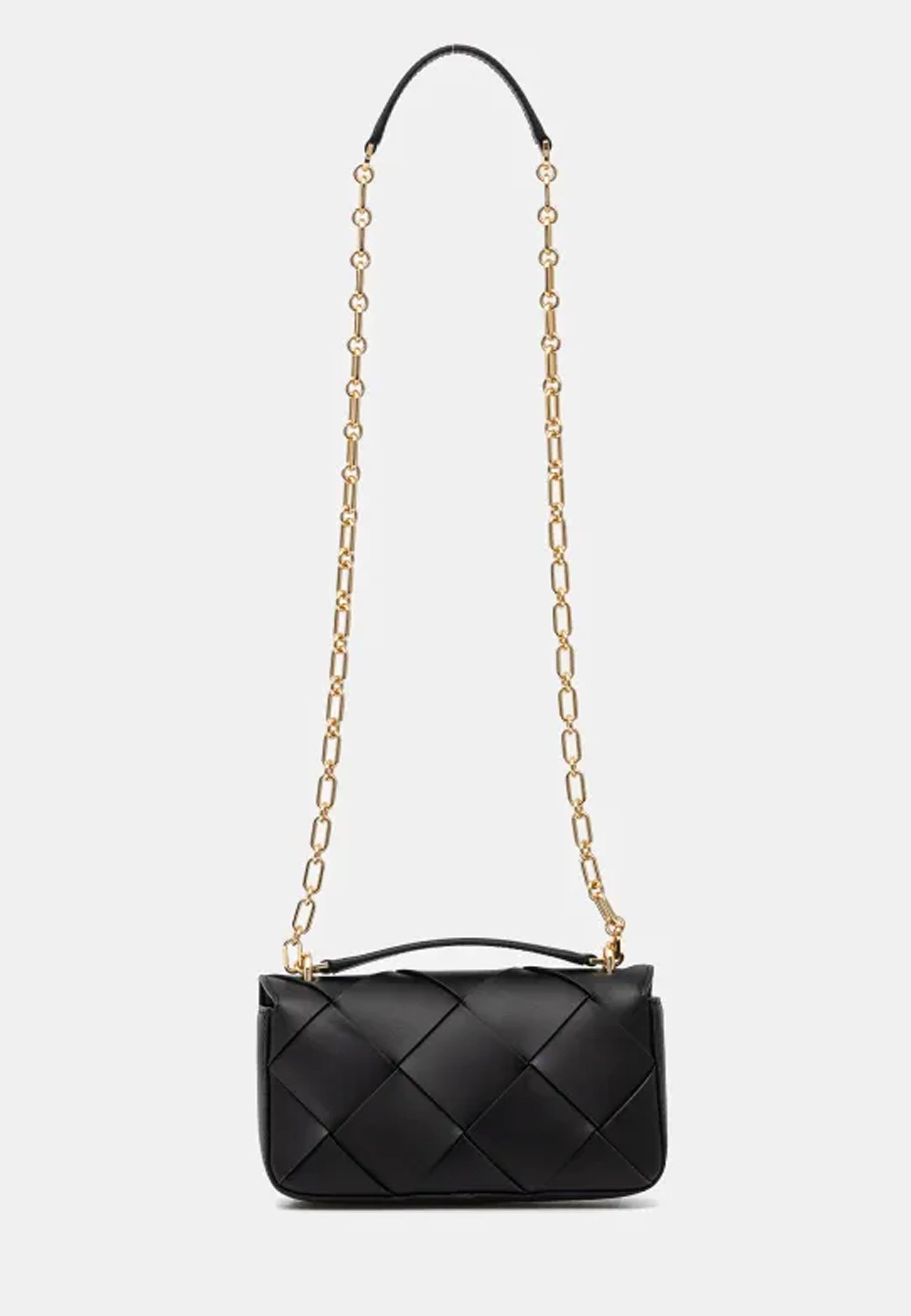 Realizzata in pelle trapuntata con dettaglio a catena, la nostra borsa a spalla Tribeca è la quintessenza dell'eleganza metropolitana. L'interno foderato ha la capienza ideale per contenere il telefono e il portafoglio, mentre il design convertibile la rende super versatile. Perfetta sia di giorno che di sera.