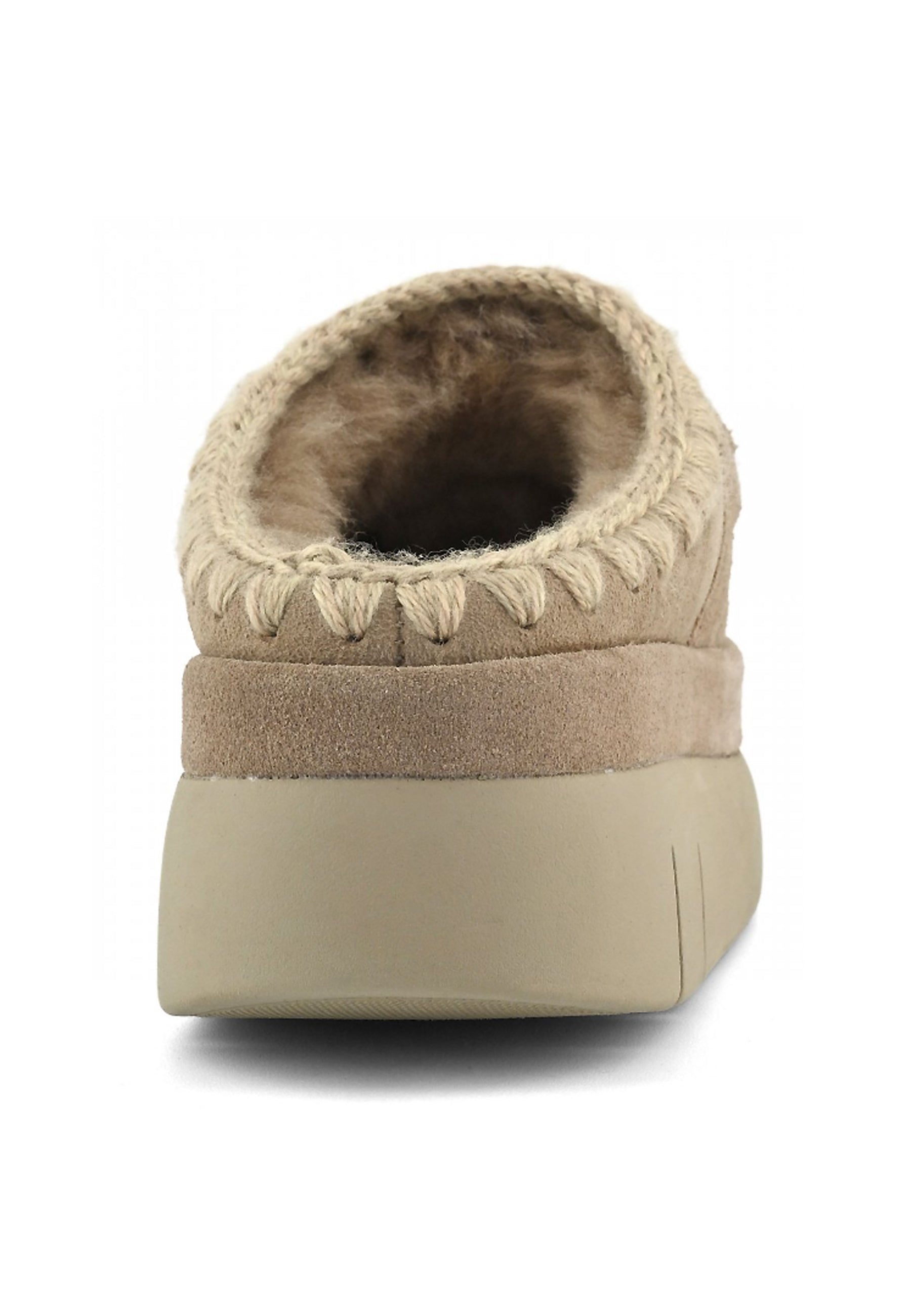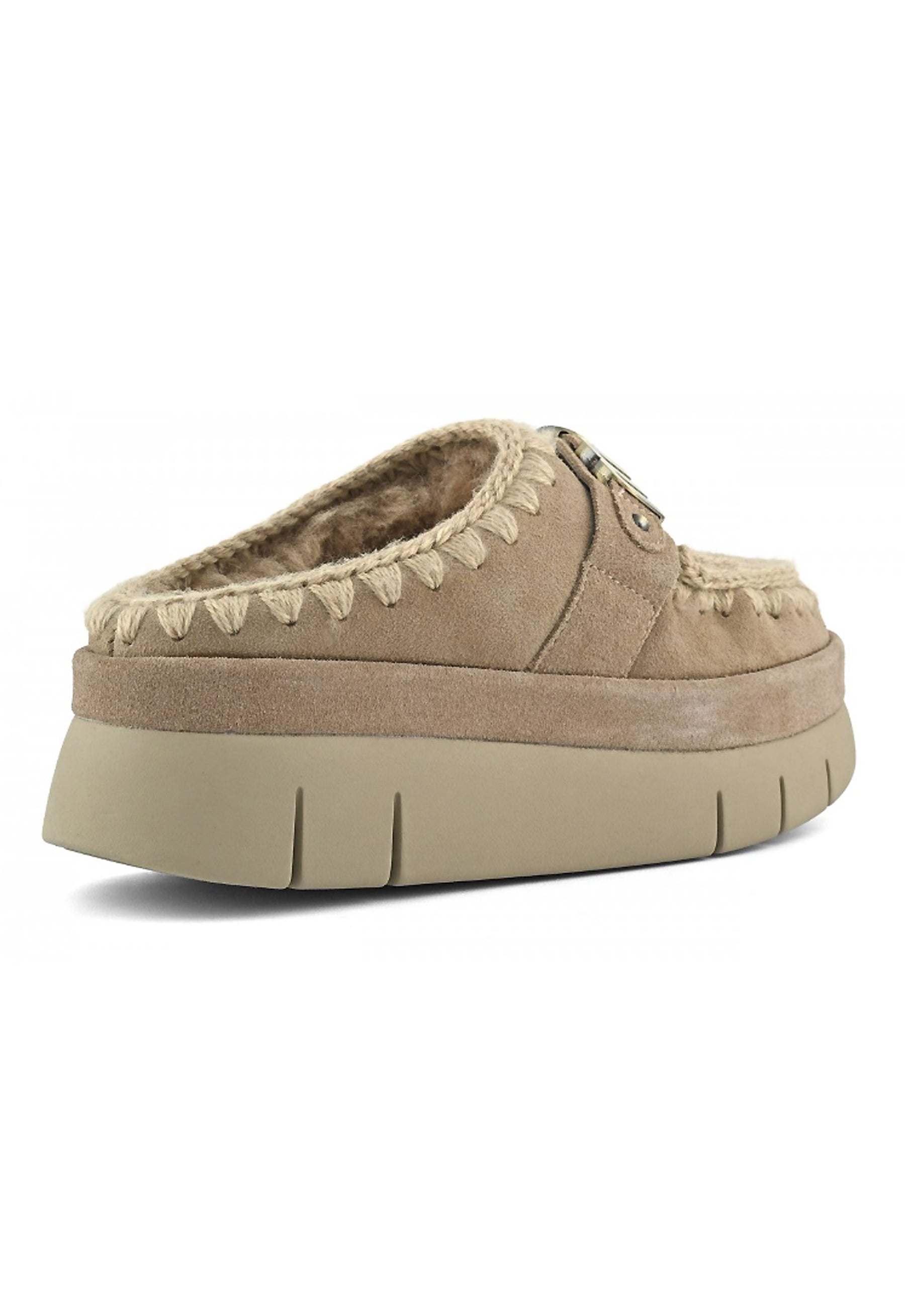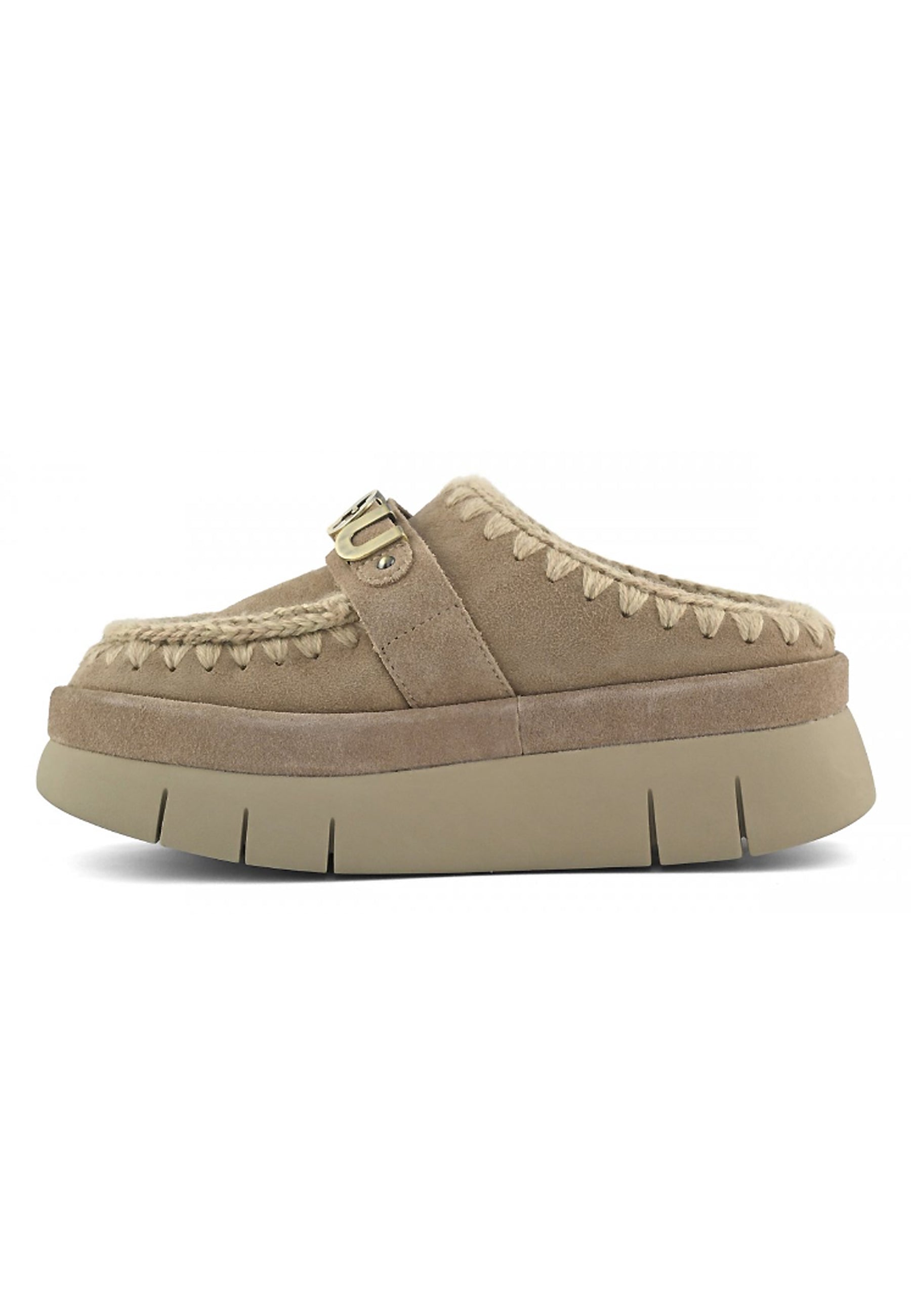 il bounce clog welt suede di mou è sapientemente realizzato artigianalmente in vera pelle di montone double-face con gli inconfondibili dettagli in lana all'uncinetto firmati mou, logo in metallo, plantare in morbido montone e suola in EVA flessibile e leggerissima.
