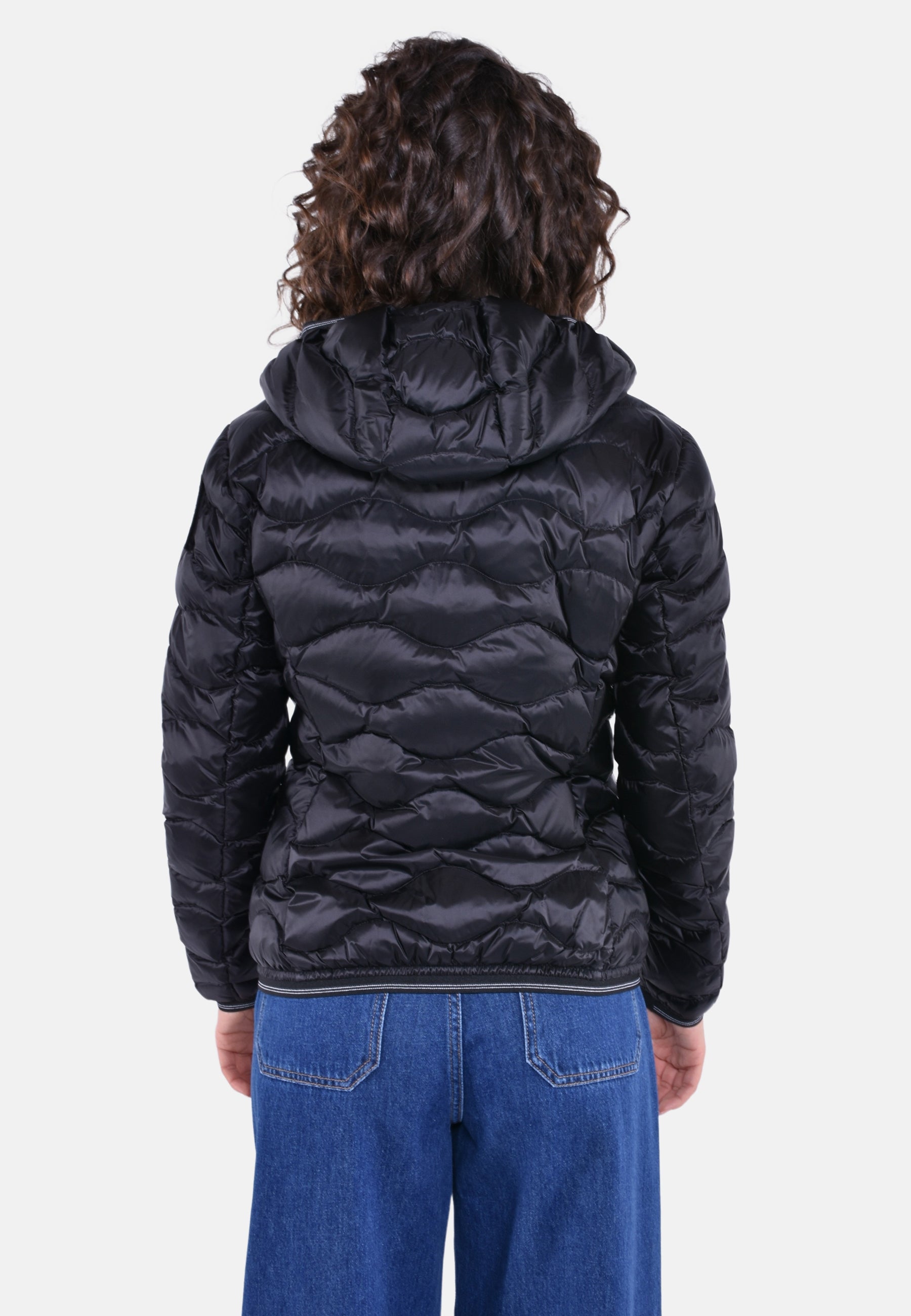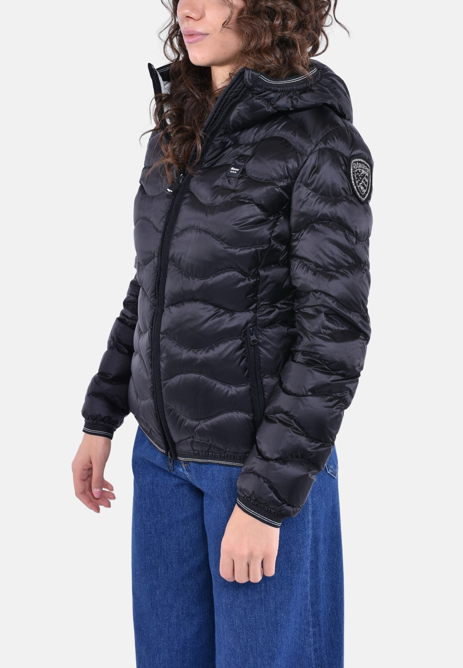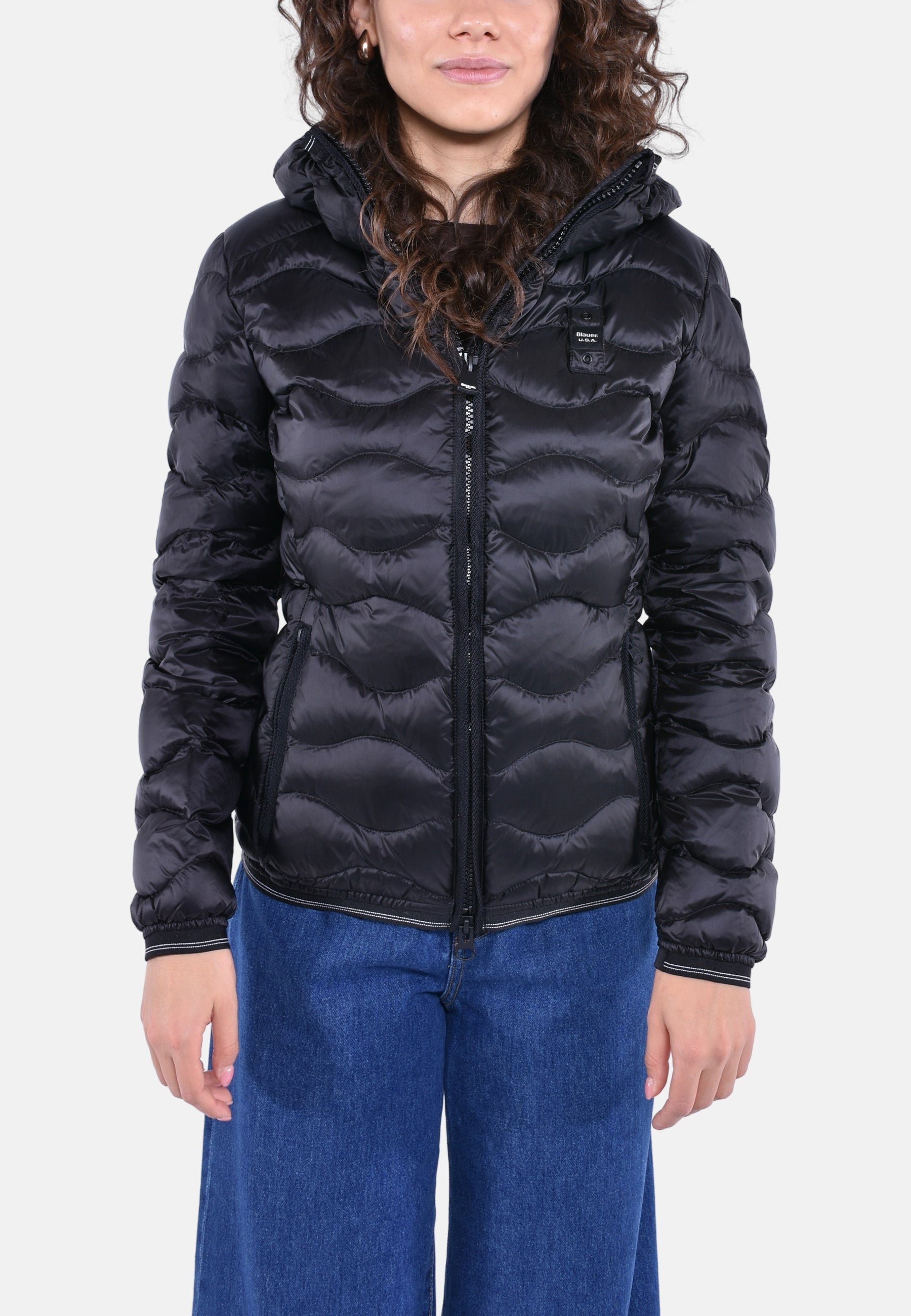Piumino idrorepellente trapuntato ad onde orizzontali dal taglio svasato. Capo iconico Blauer con imbottitura naturale, calda e non ingombrante.
