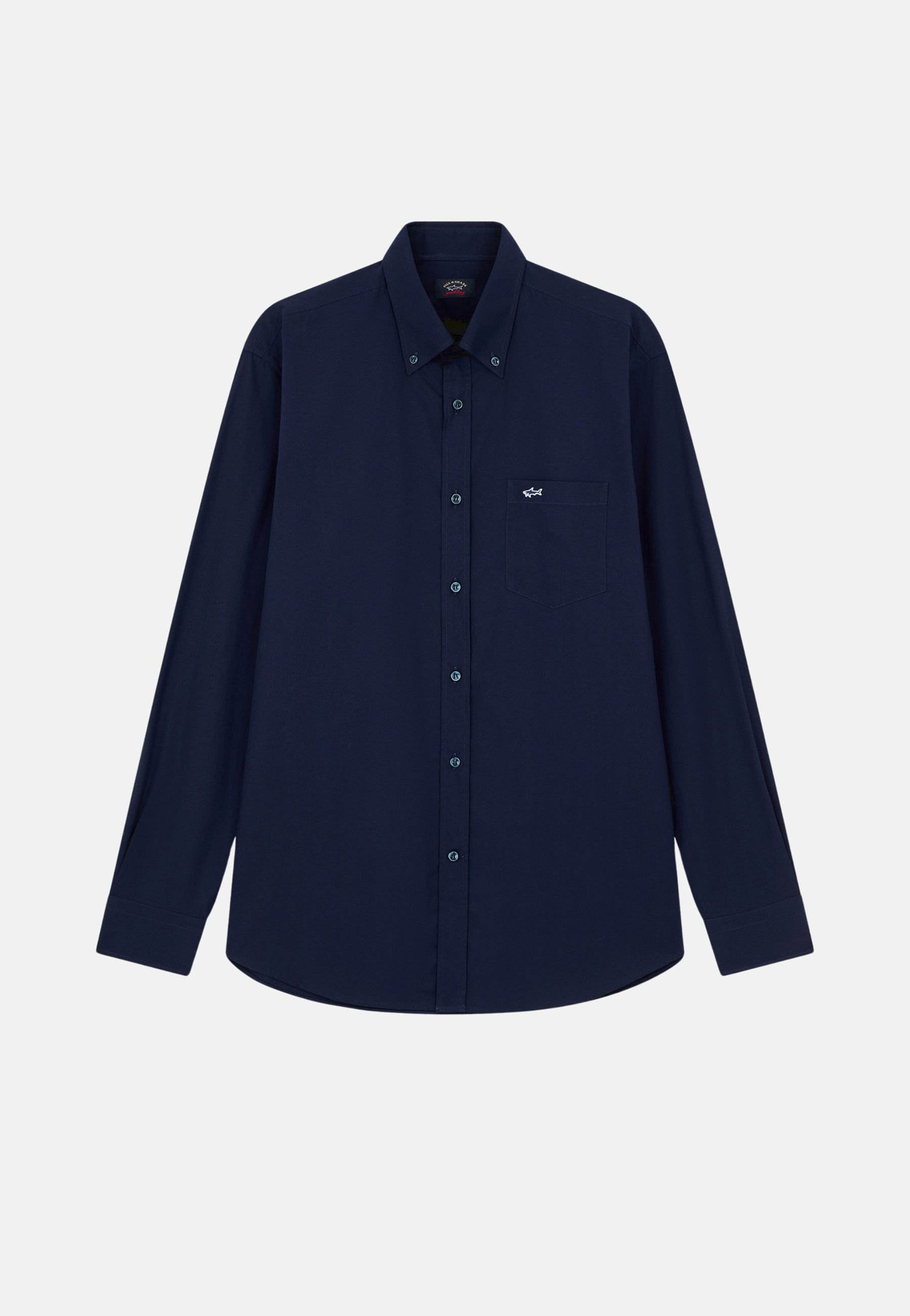 Camicia Paul & Shark in leggero popeline di cotone a maniche lunghe, regular fit, chiusura con bottoni, colletto botton down e taschino.