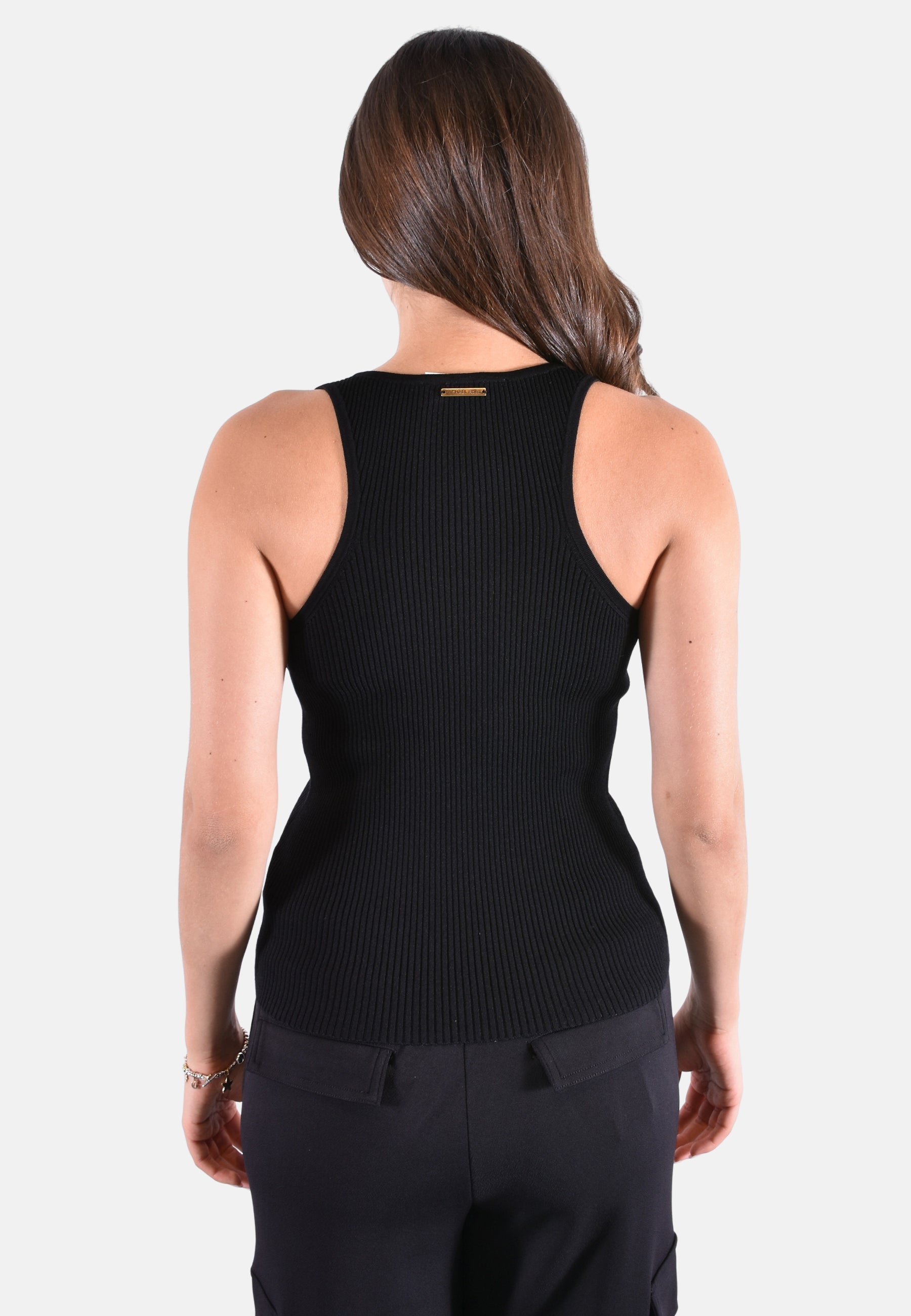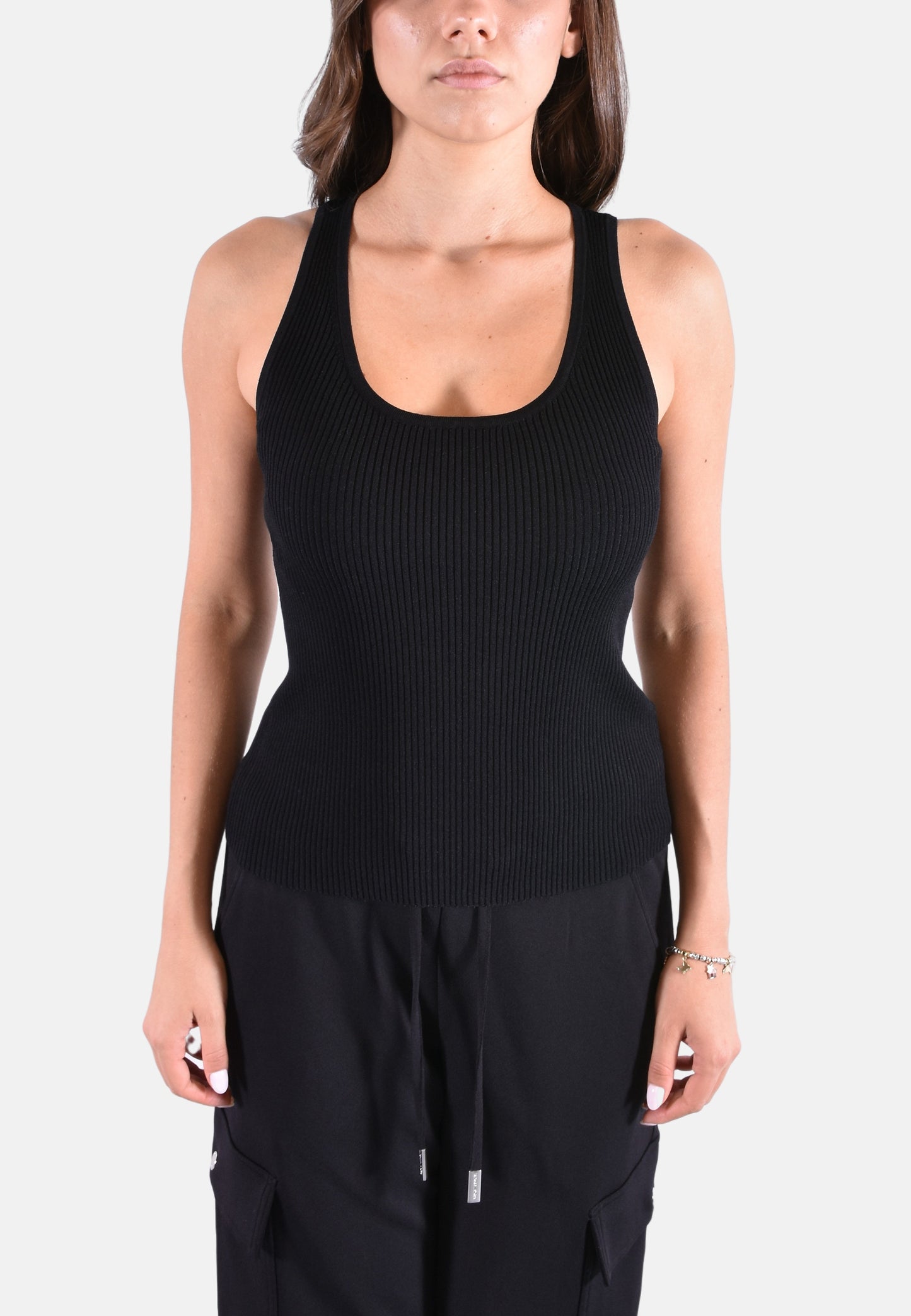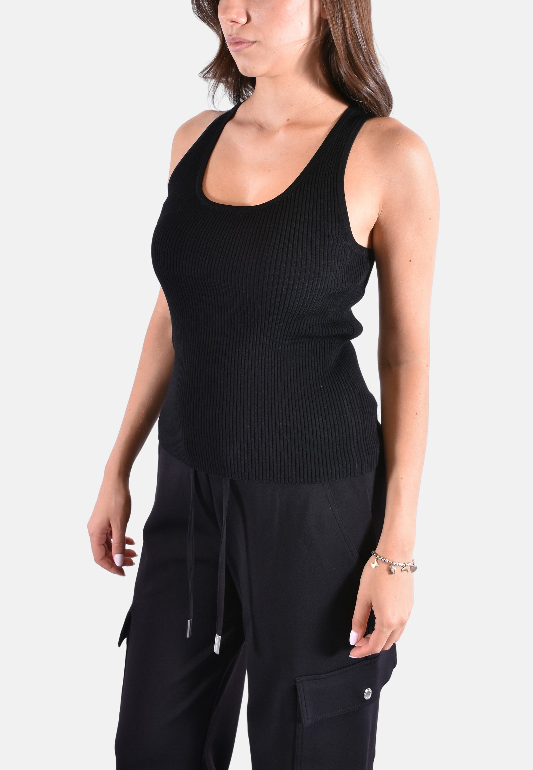 Versatile e raffinata, questa canotta in maglia a coste è un capo che può essere indossato tutti i giorni, in tutte le stagioni. Lo scollo rotondo e il retro a vogatore lo rendono un capo base ideale da indossare da solo o sotto altri indumenti.