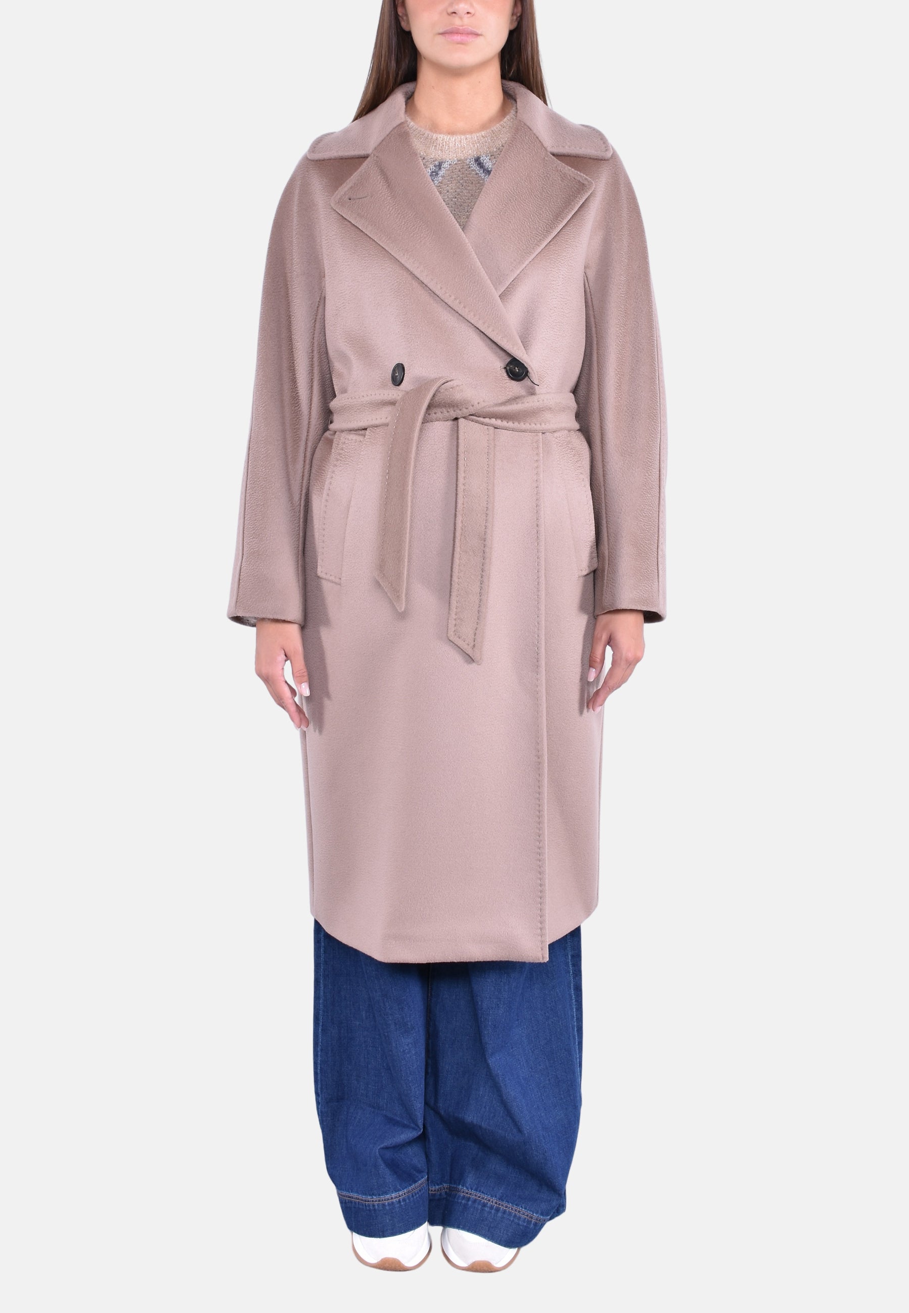 Cappotto doppiopetto realizzato in drap di pura lana rifinito con dettagli sartoriali e cintura abbinata da annodare vita.