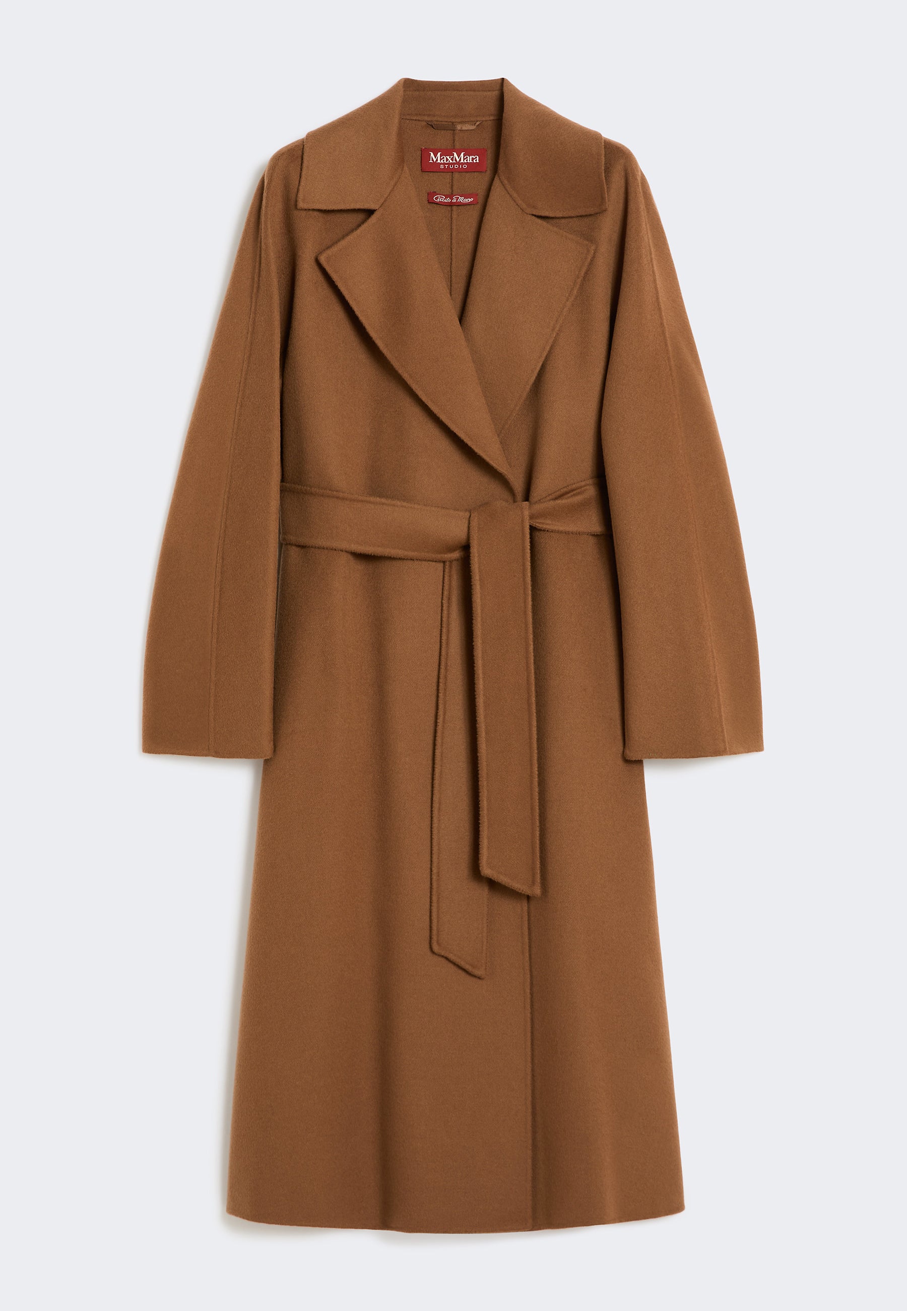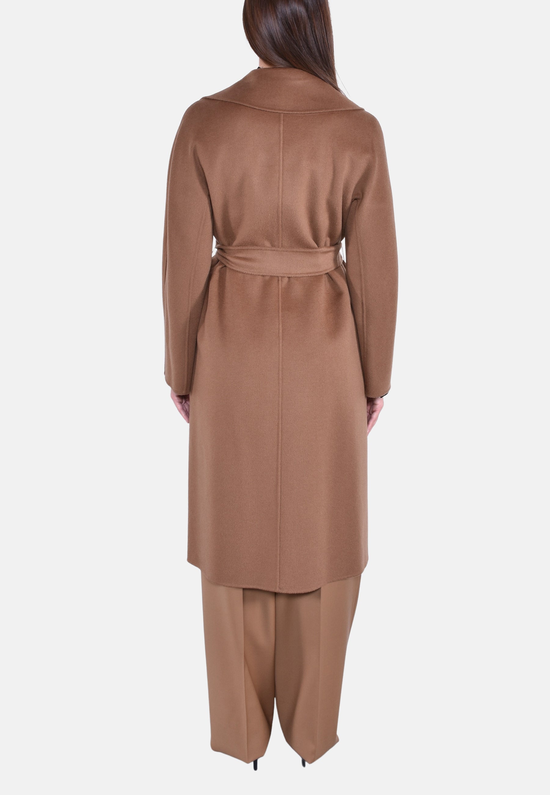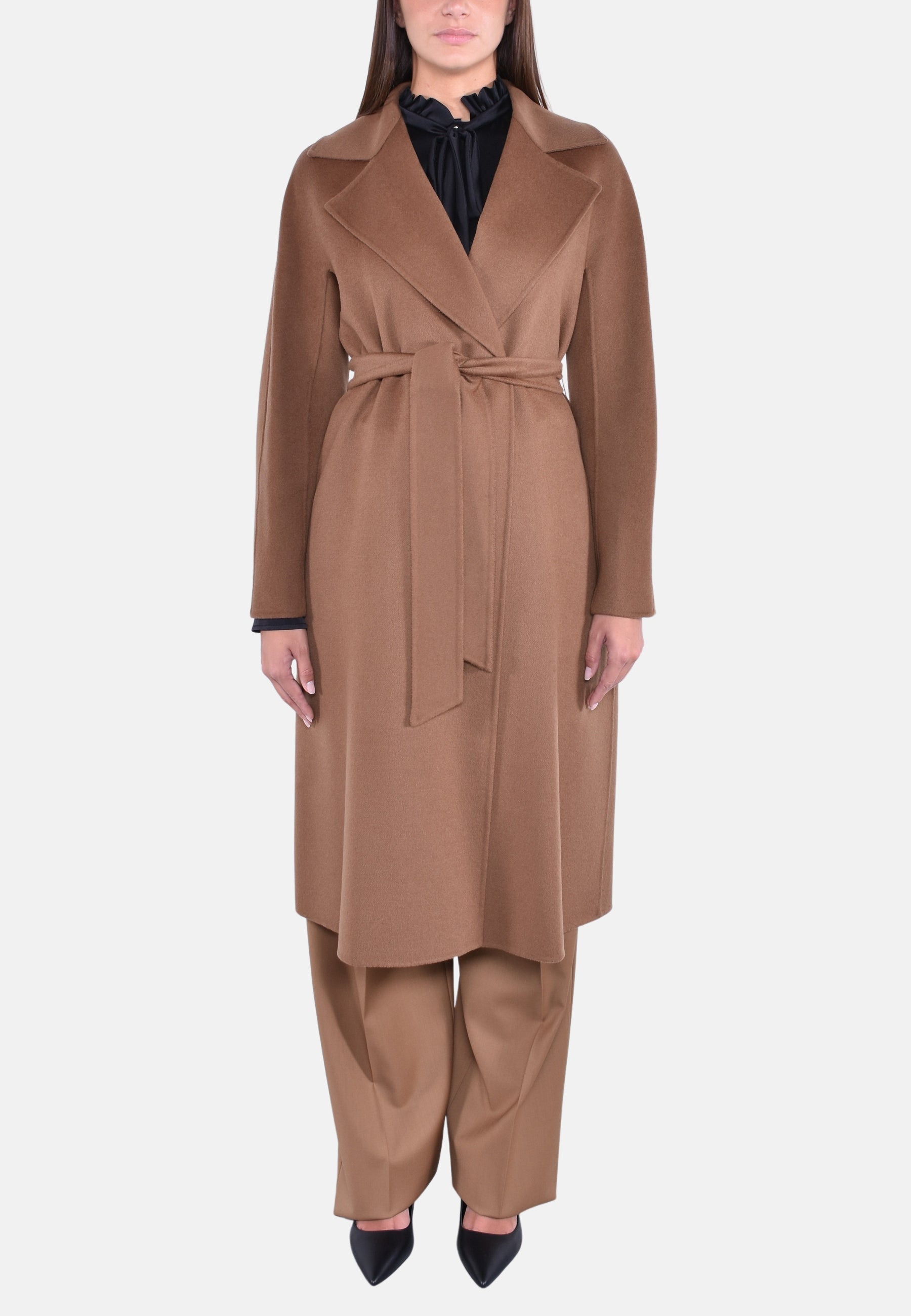 Cappotto midi a vestaglia con cintura abbinata per evidenziare la silhouette.