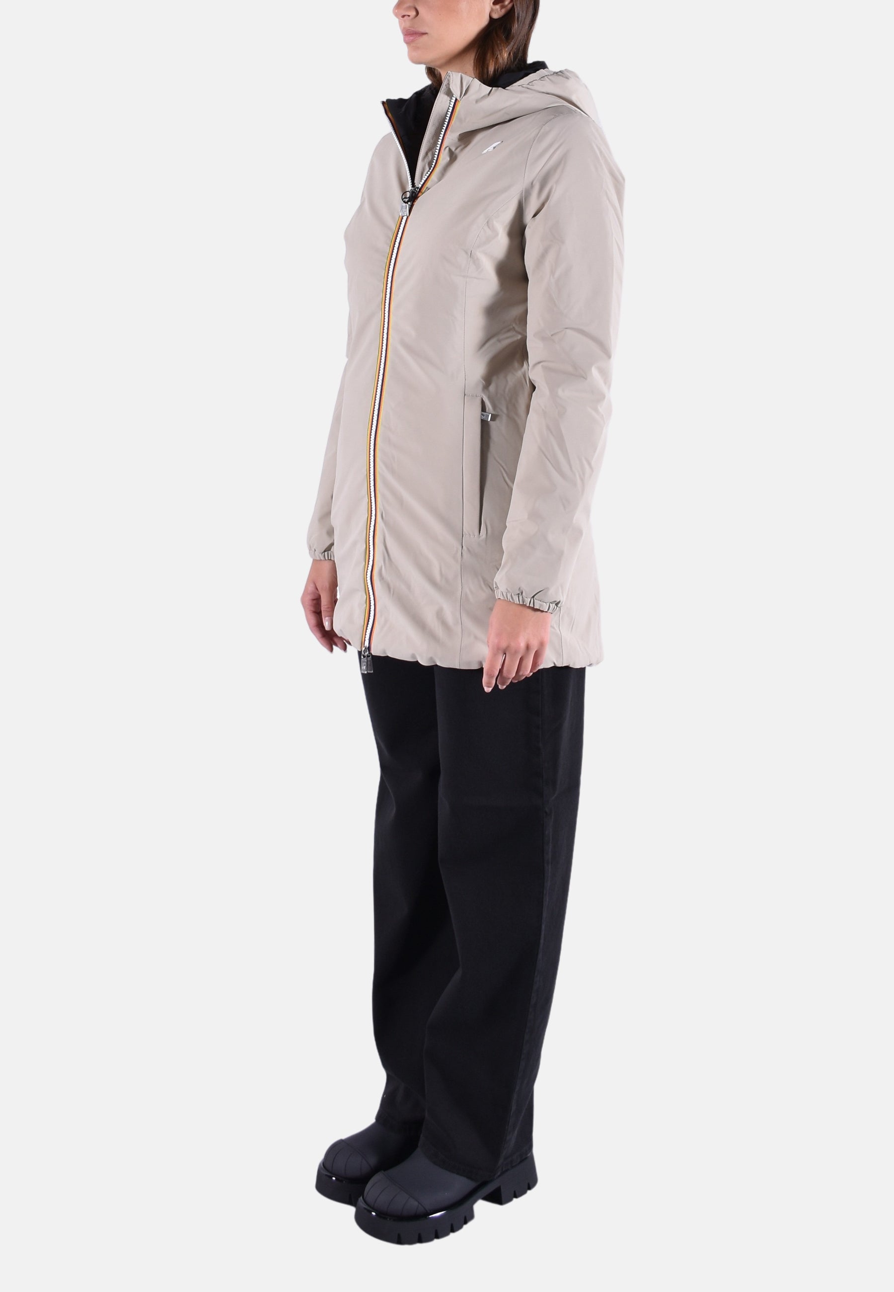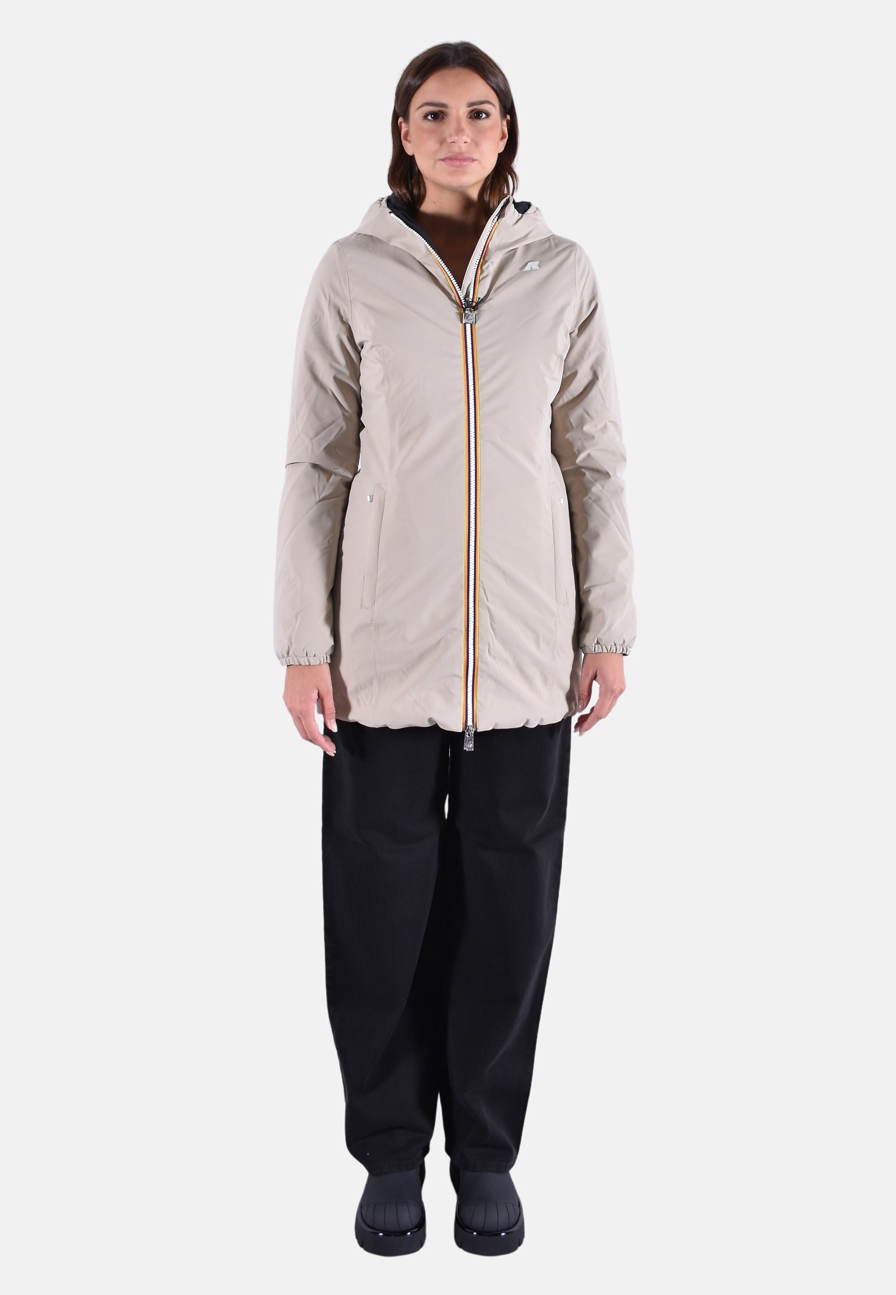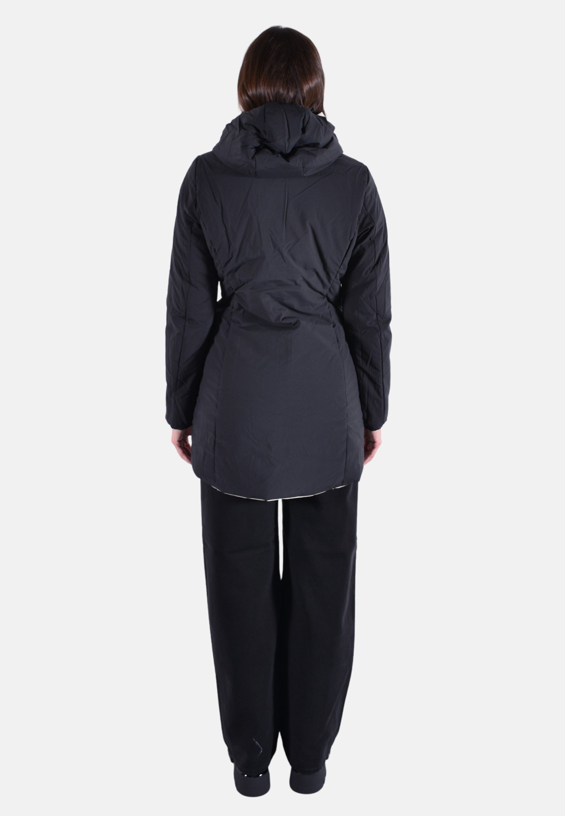 Denise è la giacca da donna con lunghezza a tre quarti che reinterpreta l'ispirazione funzionale K-Way in chiave femminile. Il modello combina un lato in poliestere elasticizzato impermeabile tinta unita e un lato in poliestere antivento dal colore a contrasto. L'imbottitura in ovatta offre un grado di calore medio, ideale per la mezza stagione, mentre le cuciture termonastrate isolano dal freddo e offrono maggiore comfort durante l'attività outdoor.