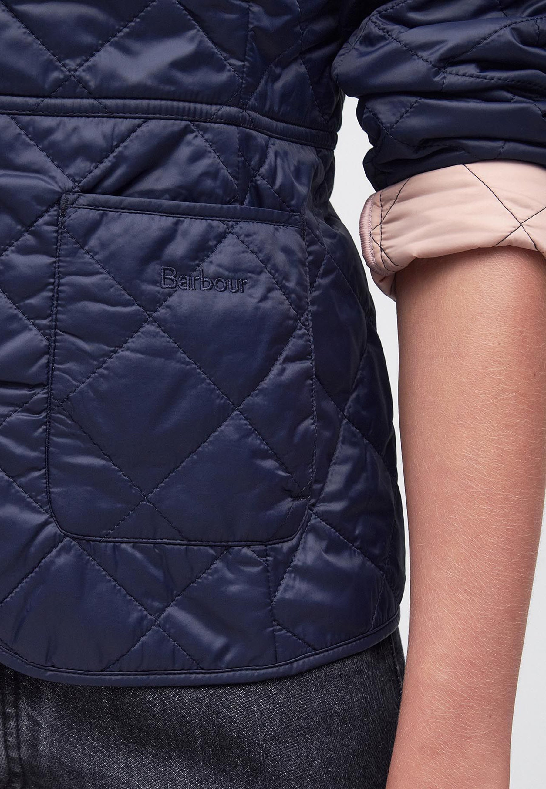 La giacca trapuntata Barbour Deveron presenta un colletto in velluto a costine e una fodera femminile a contrasto. È provvista di due pratiche tasche applicate sul davanti ed è finemente rifinita con il logo Barbour ricamato per un tocco di autenticità.
