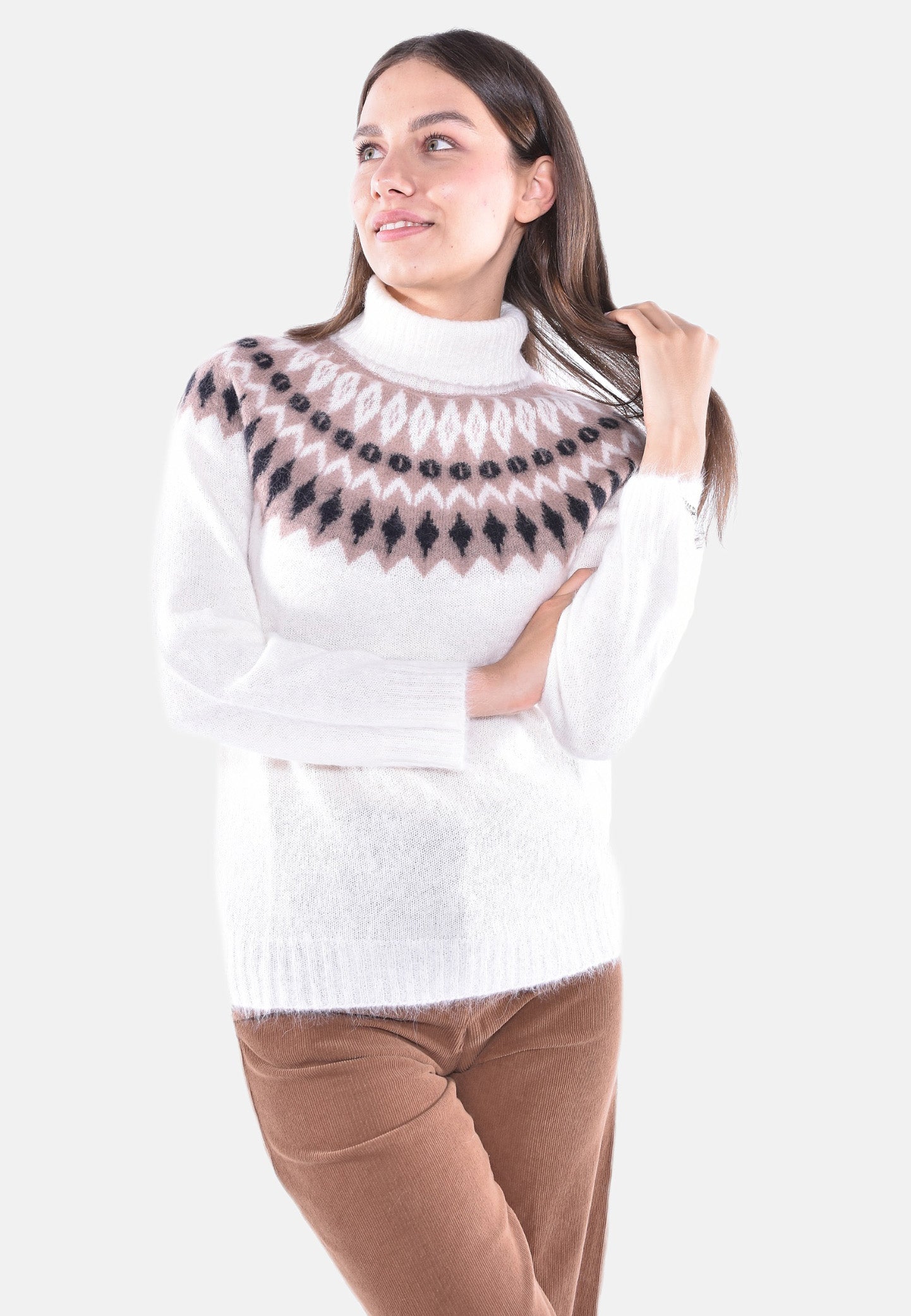 Dolcevita in calda e morbida lana di alpaca in fantasia norvegese.
