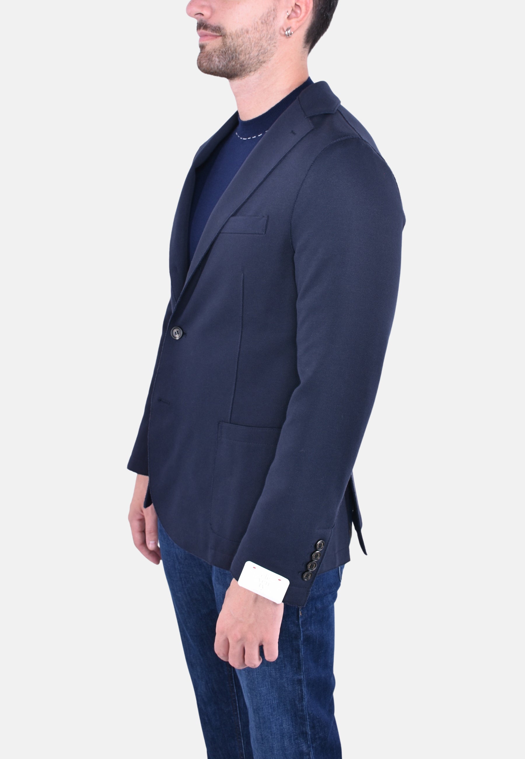 La giacca tre bottoni stirata 2, realizzata in tessuto di cotone e poliammide unito, rappresenta il capo iconico di Eleventy ed è impreziosita da dettagli in alcantara che la caratterizzano rendendola unica e speciale. La costruzione a taglio a vivo rende leggero il capospalla e l'elevato comfort conferisce una vestibilità che si adatta a qualsiasi corporatura, con la sensazione di indossare una maglia preservando l'aspetto impeccabile della giacca.