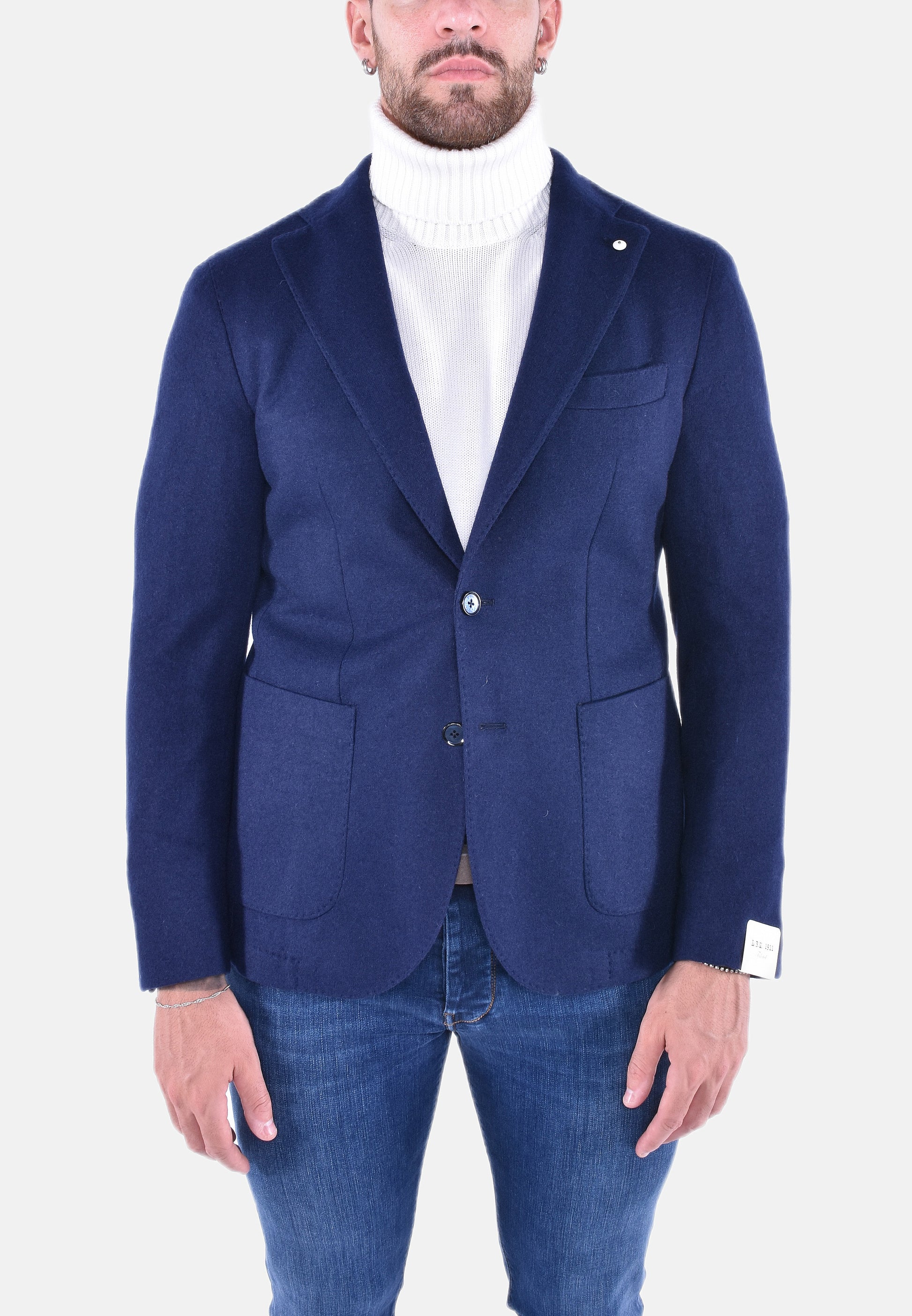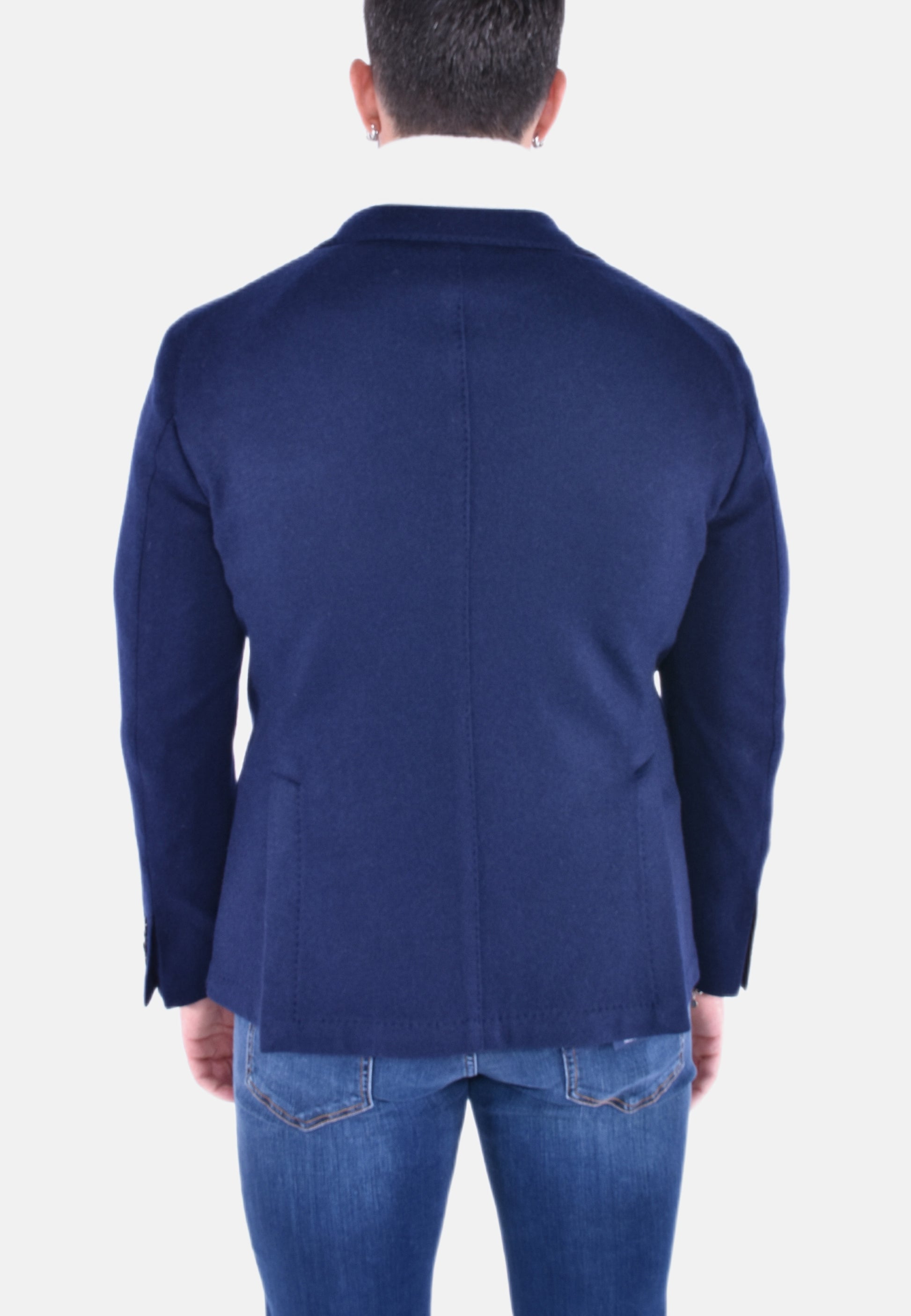 Giacca monopetto in lana elasticizzata, spalla decostruita per un miglior comfort. Interno sfoderato, taschino sul petto a barchetta e spilla porta occhiali. Sul retro due spacchi laterali. Tinta unita.