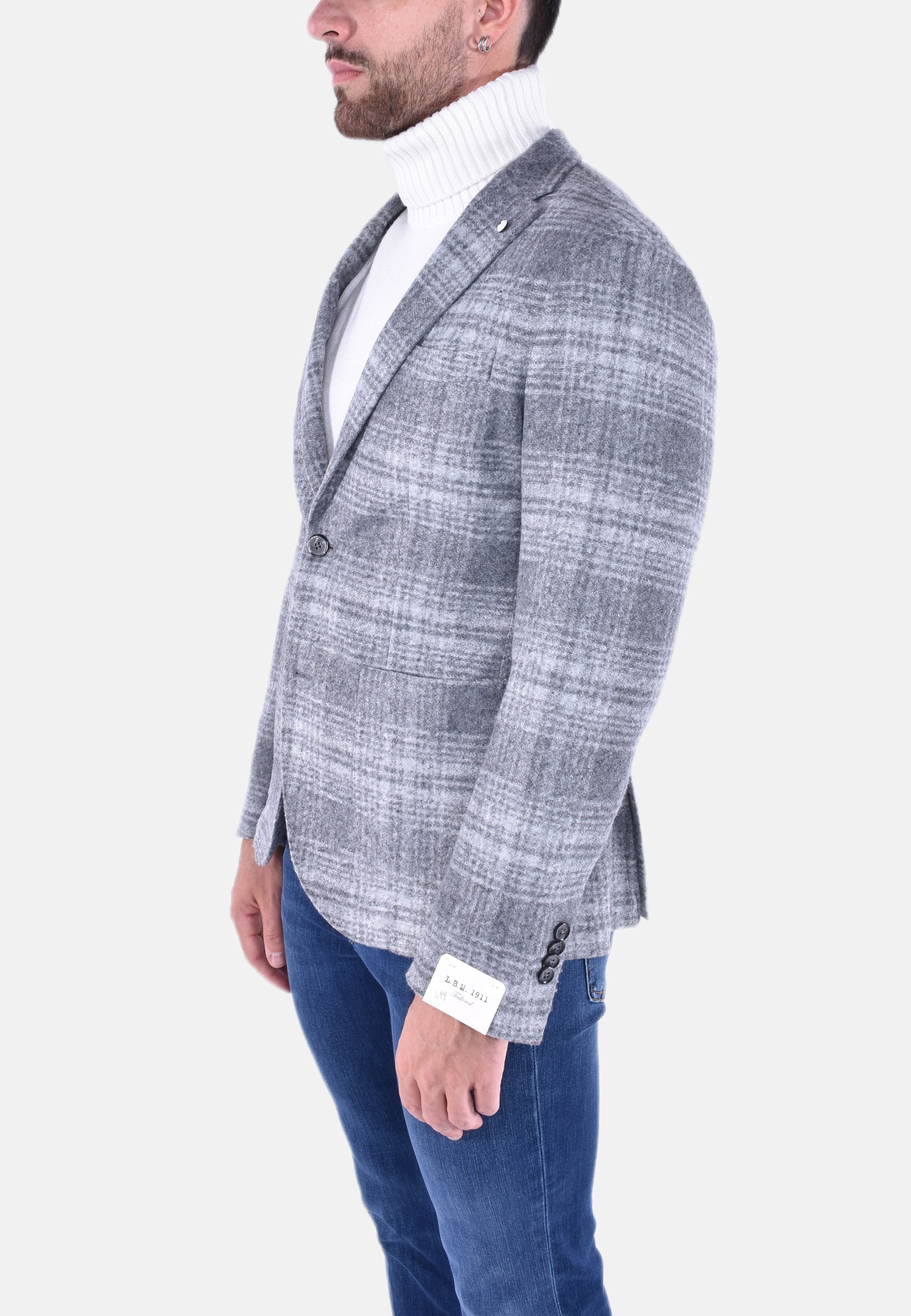 Giacca monopetto in lana elasticizzata, spalla decostruita per un miglior comfort. Interno sfoderato, taschino sul petto a barchetta e spilla porta occhiali. Sul retro due spacchi laterali. Fantasia principe di galles