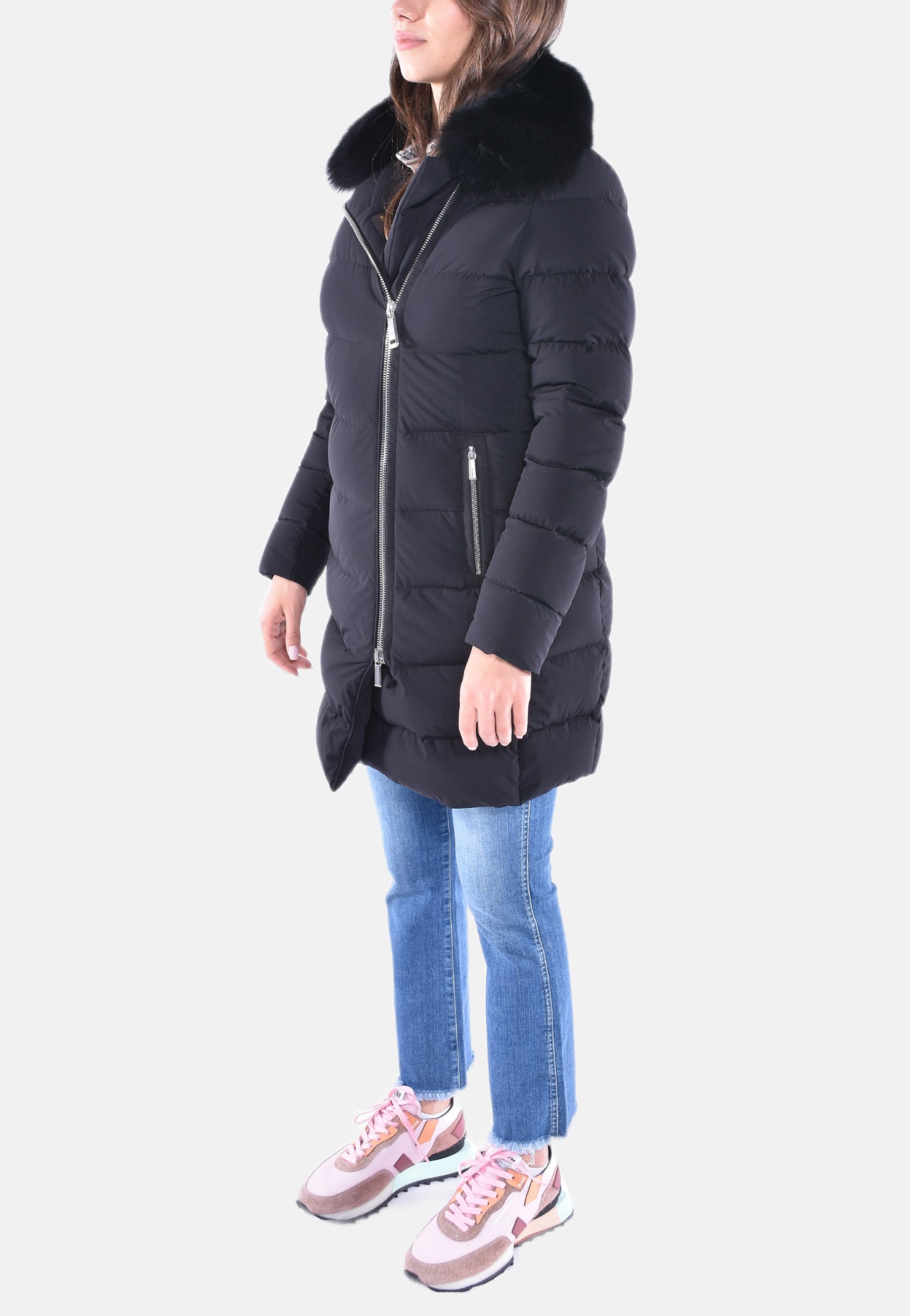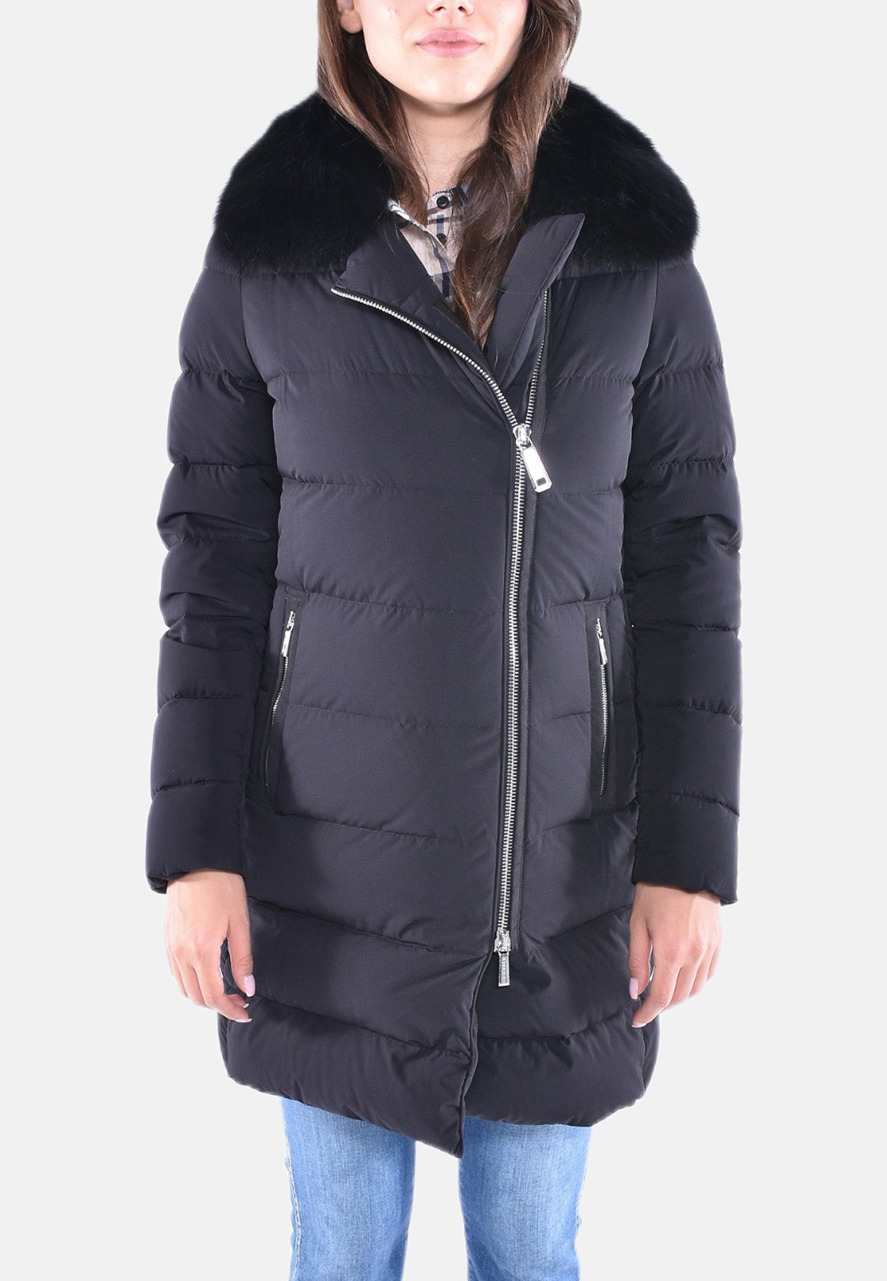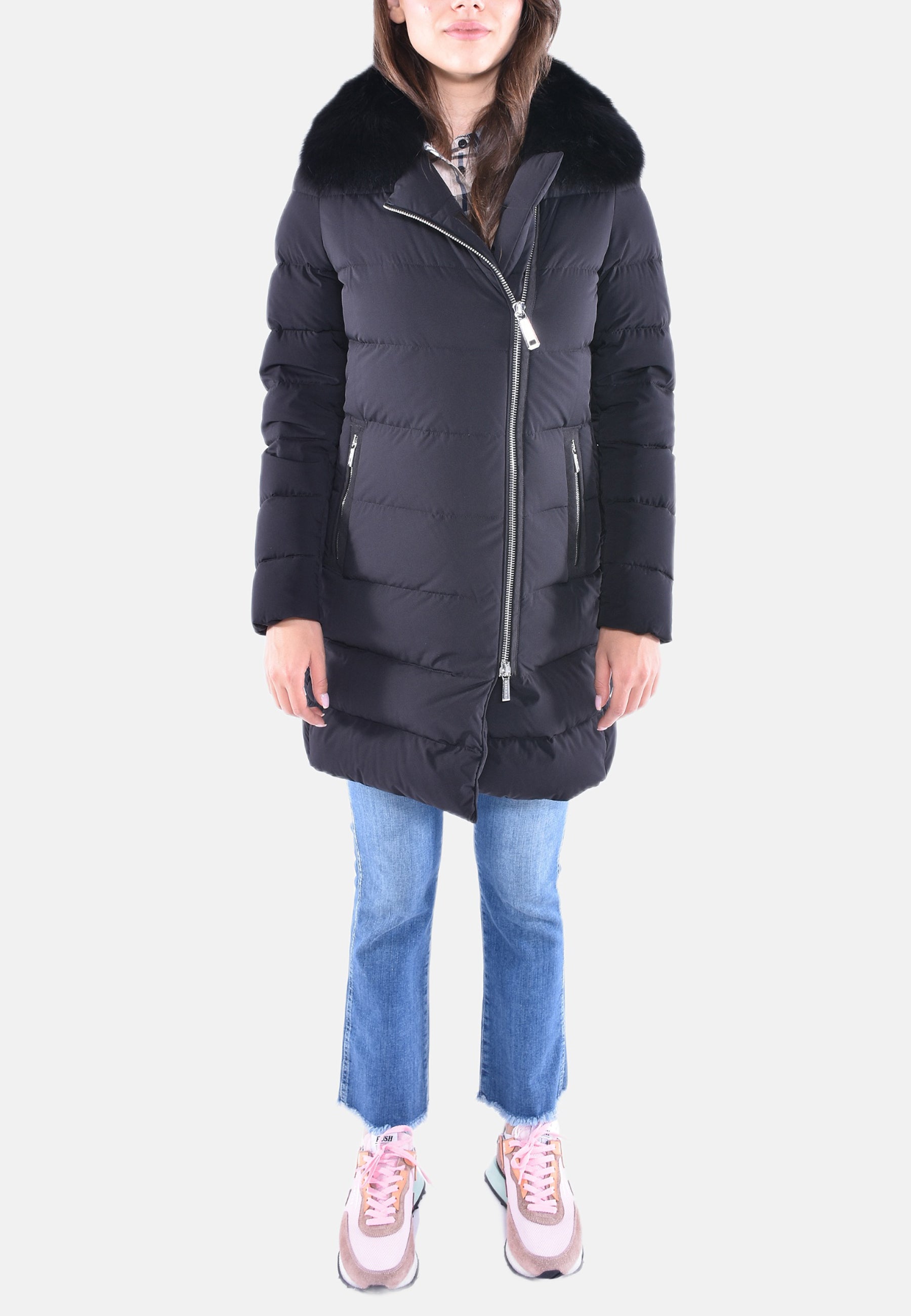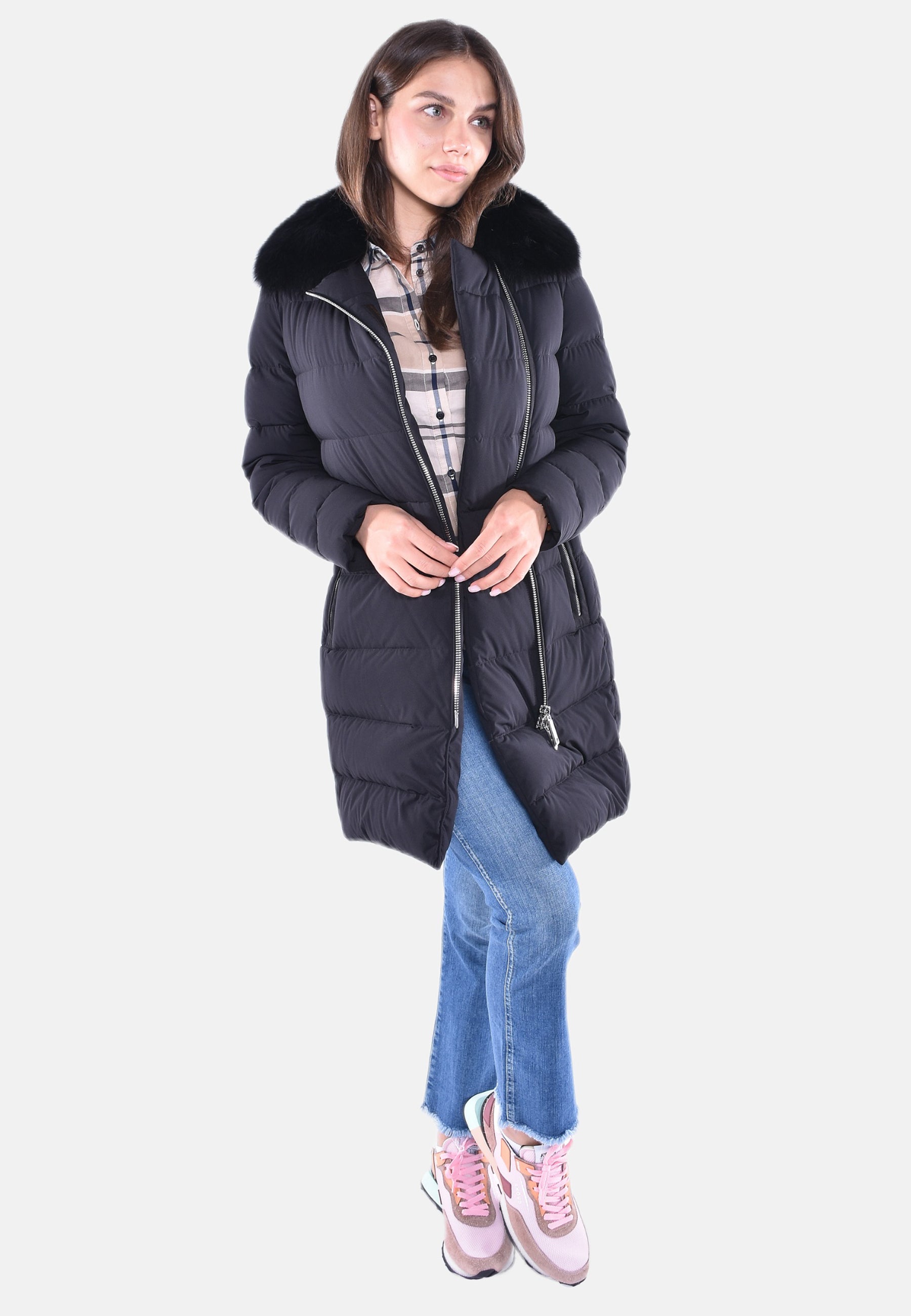 Piumino Donna modello Angele-Le firmato Moorer. Dotato di inserto liscio, chiusura latelae con zip e di un comodo pelo sul collo rimovibile. Un capo caldo e versatile, ideale per completare qualsiasi look casual.