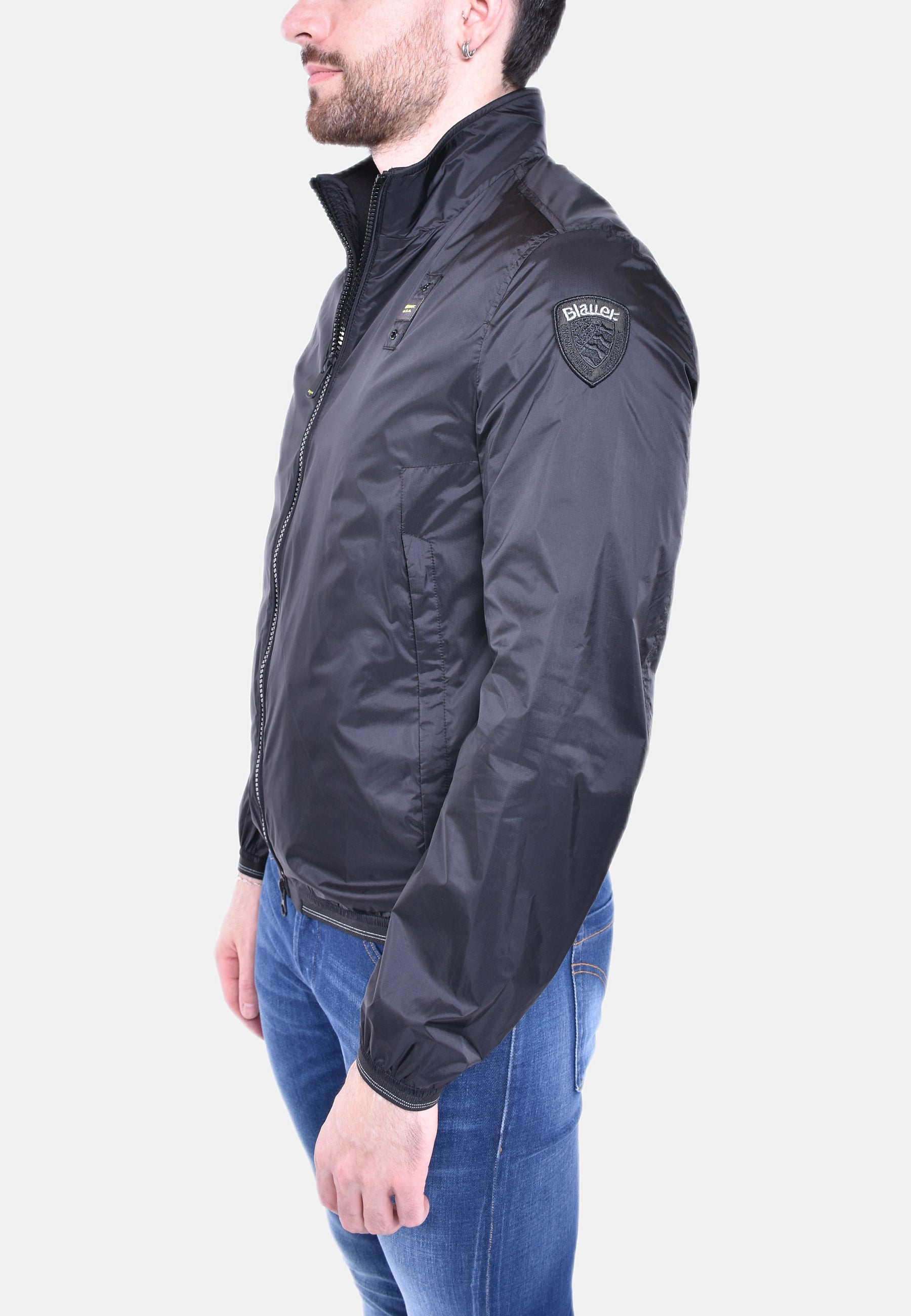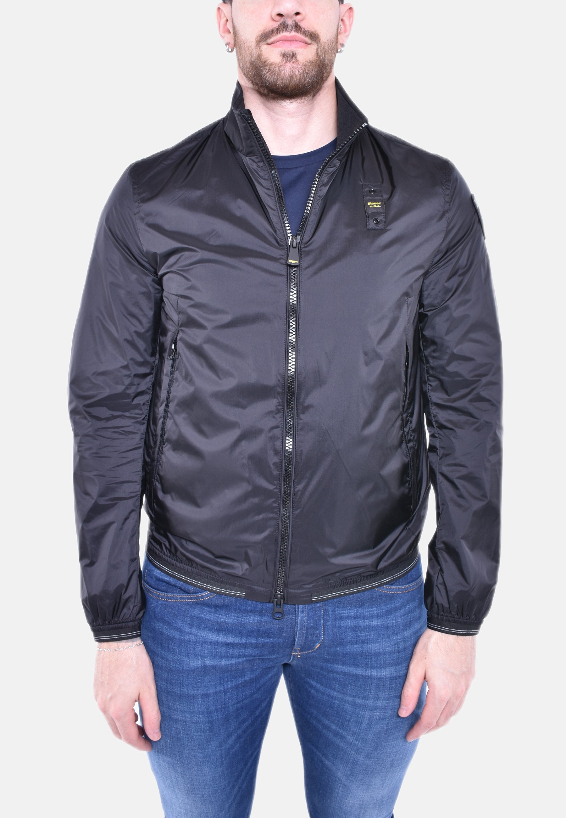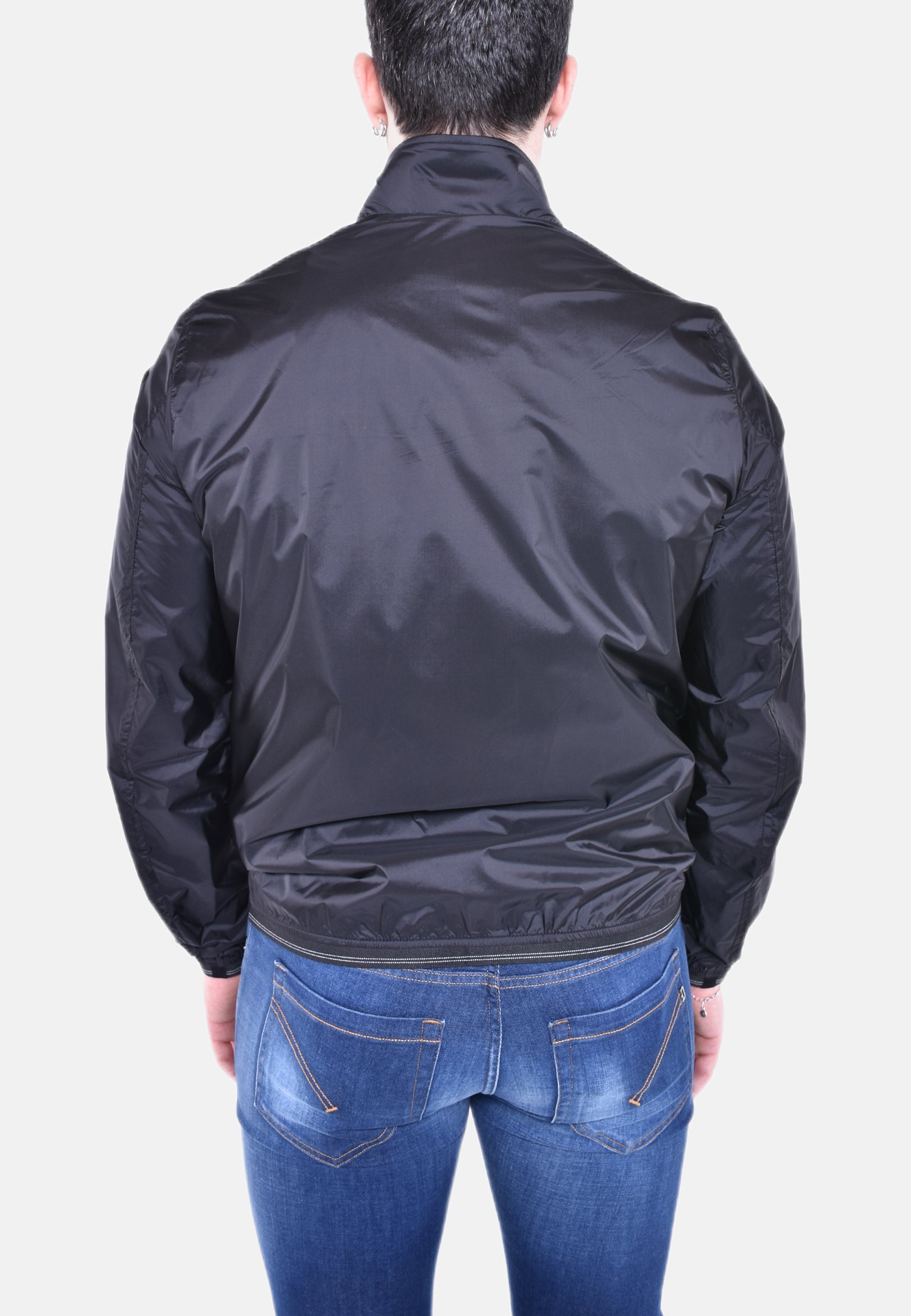 Bomber in mix materiali della linea Acqua (2 ombrellini), realizzato con una finissima gabardina tecnica accoppiata ad una membrana traspirante e impermeabile.