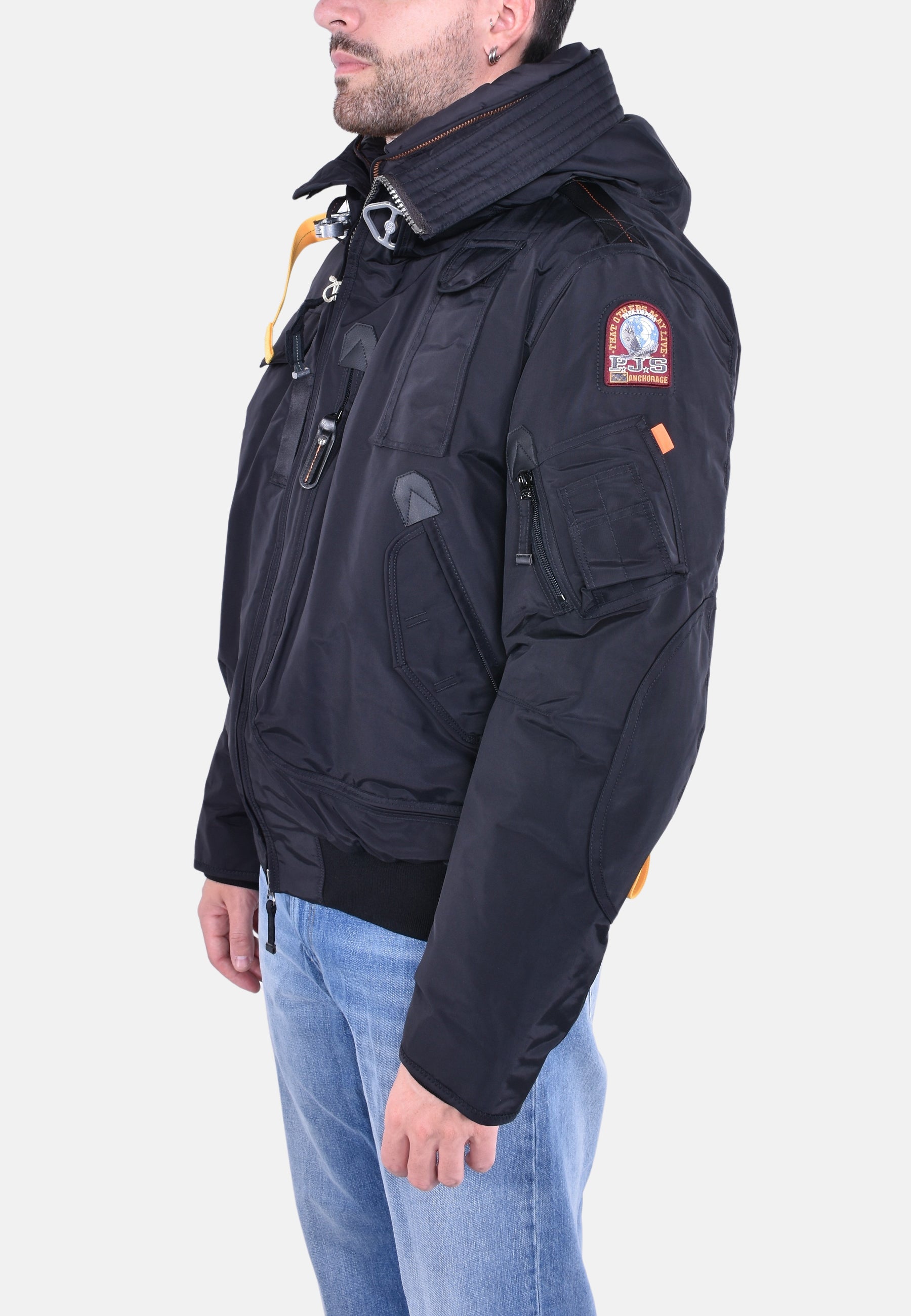 Patch Parajumpers sulla manica e iconico gancio amovibile con tape giallo a chiusura del collo