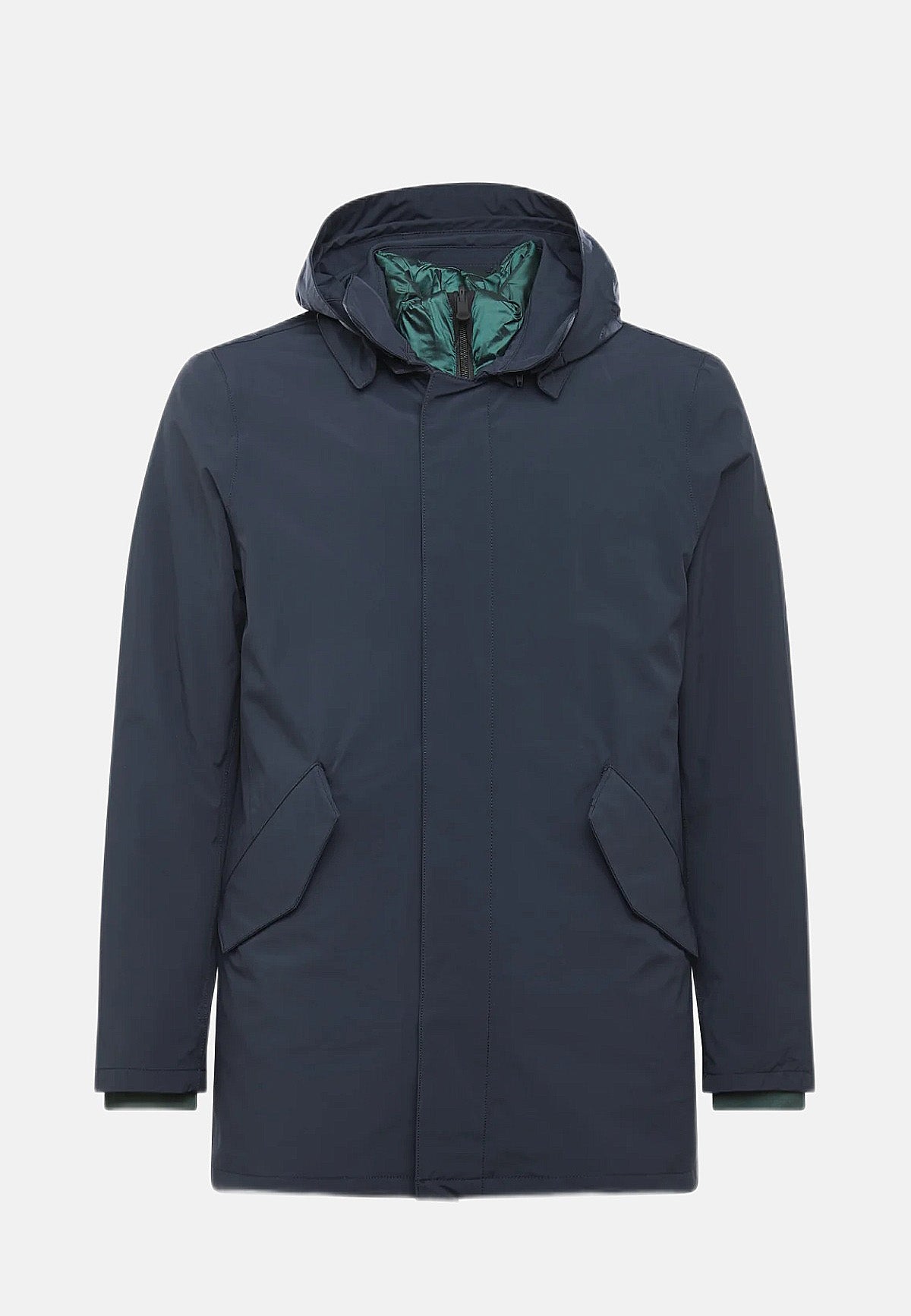 Capo “3 in 1” studiato per le 4 stagioni in tessuto tecnico idrorepellente con piumino interno staccabile trapuntato con isolante tecnico “PRIMALOFT”. Cappuccio staccabile.