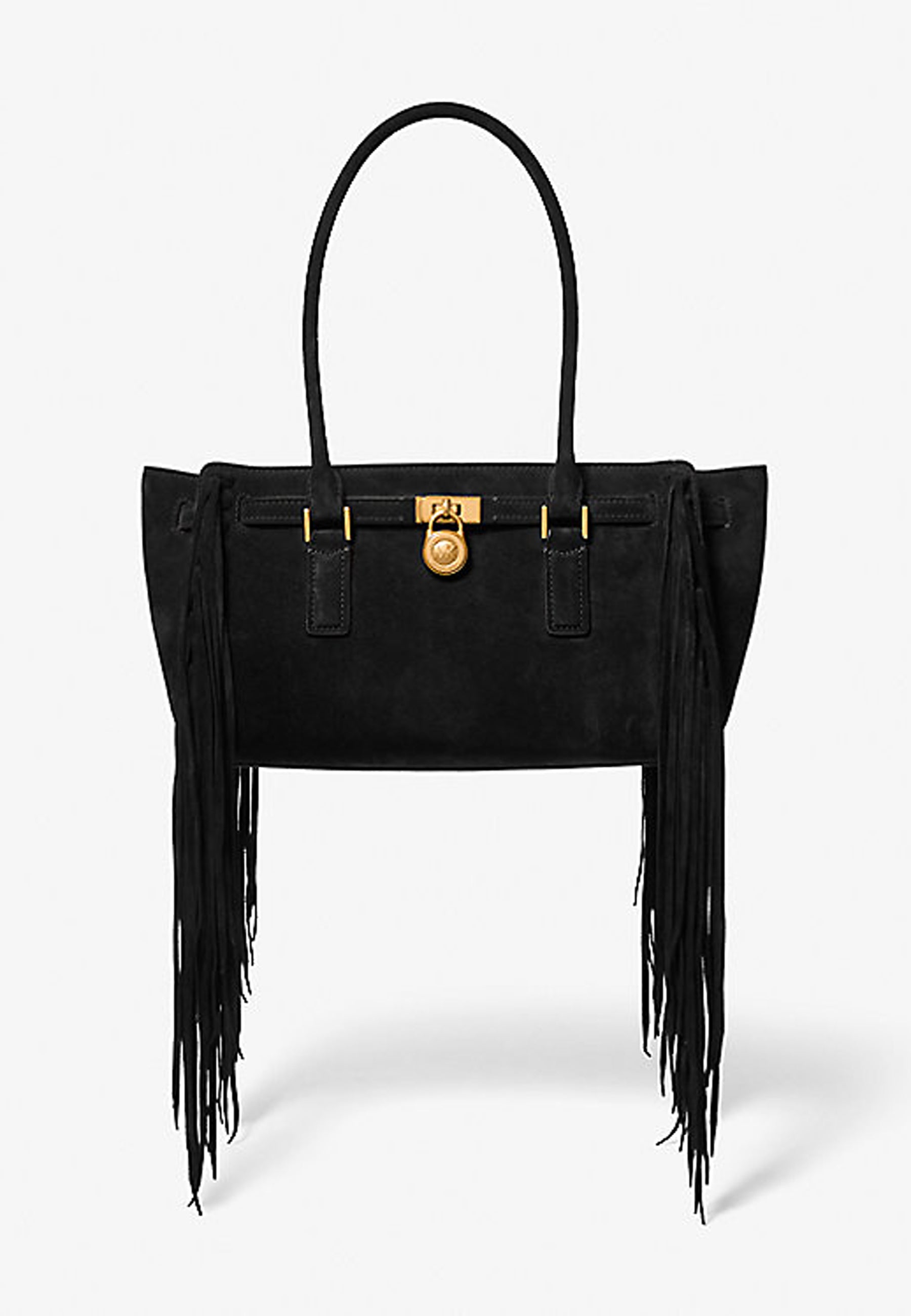 Per me un classico perfetto non passa mai di moda. La riedizione della nostra borsa Hamilton dimostra che il design di qualità è senza tempo", dichiara Michael Kors. Lo stile heritage-chic della Hamilton Moderne la rende un accessorio accattivante che amerai per sempre. Impreziosita da frange in pelle scamosciata che conferiscono un look bohémien di ispirazione vintage, questa borsa a mano presenta soffietti laterali e un design con cintura rifinito con un elegante ciondolo con catena per un tocco moderno. Portala con te tutto il giorno grazie ai manici extra lunghi.
