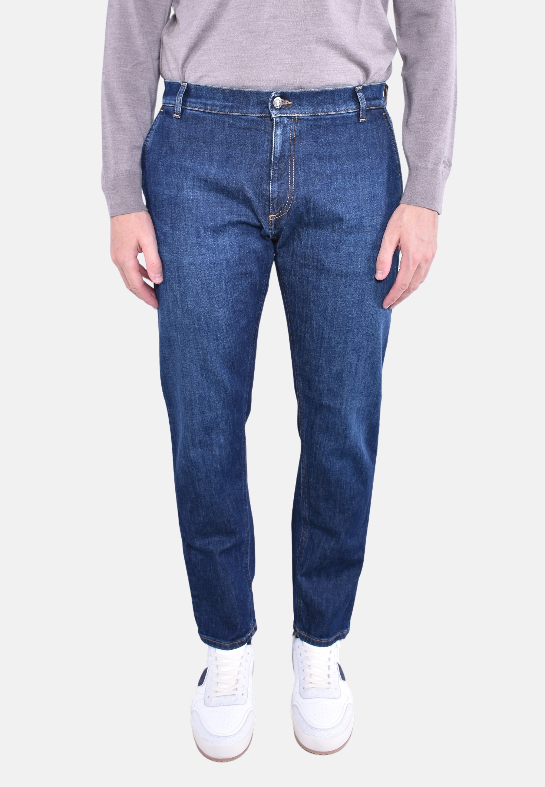 Jeans Jeff carrot in denim stretch, vita bassa, tasche america, lavaggio medio pulito, logo Dondup.