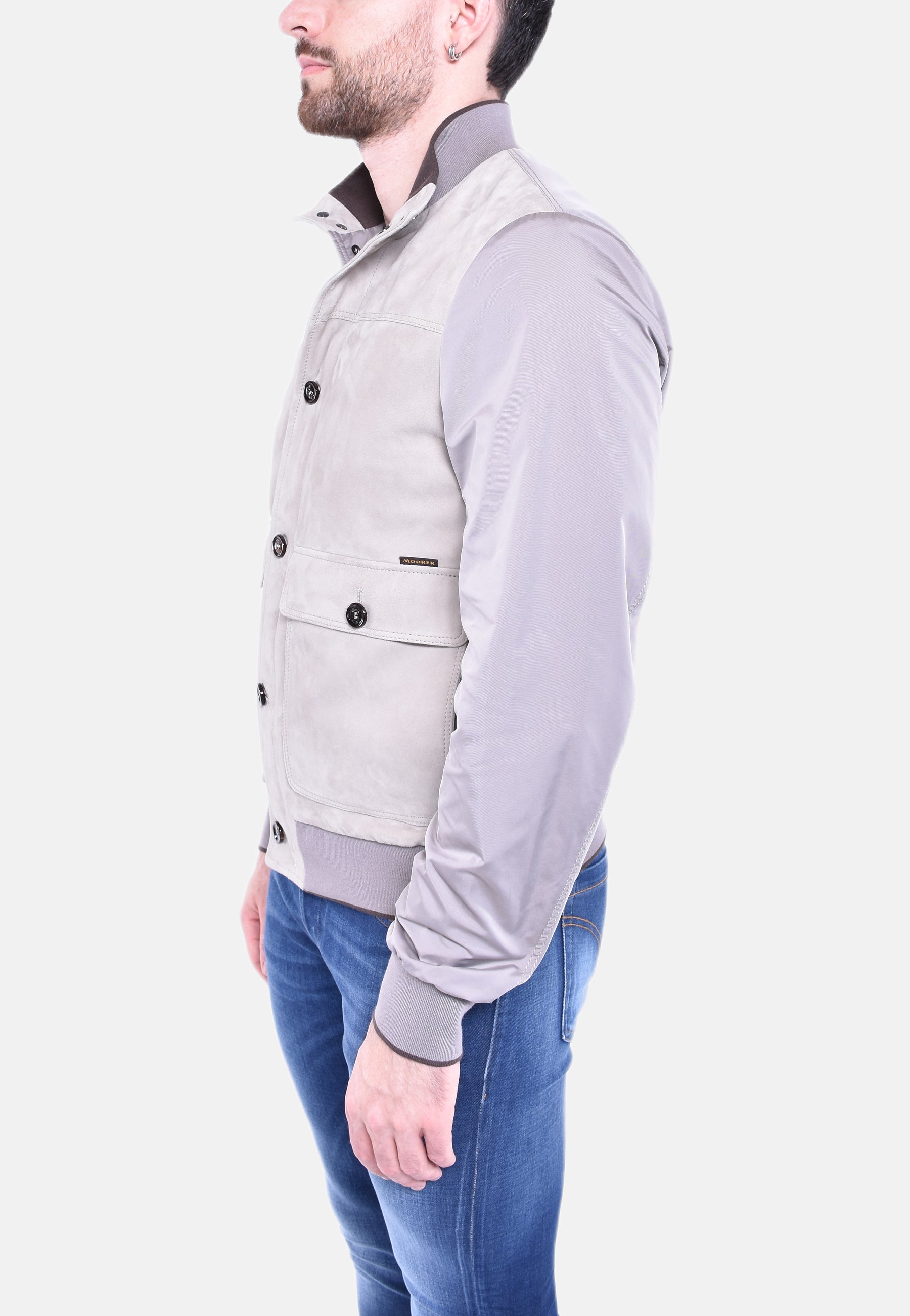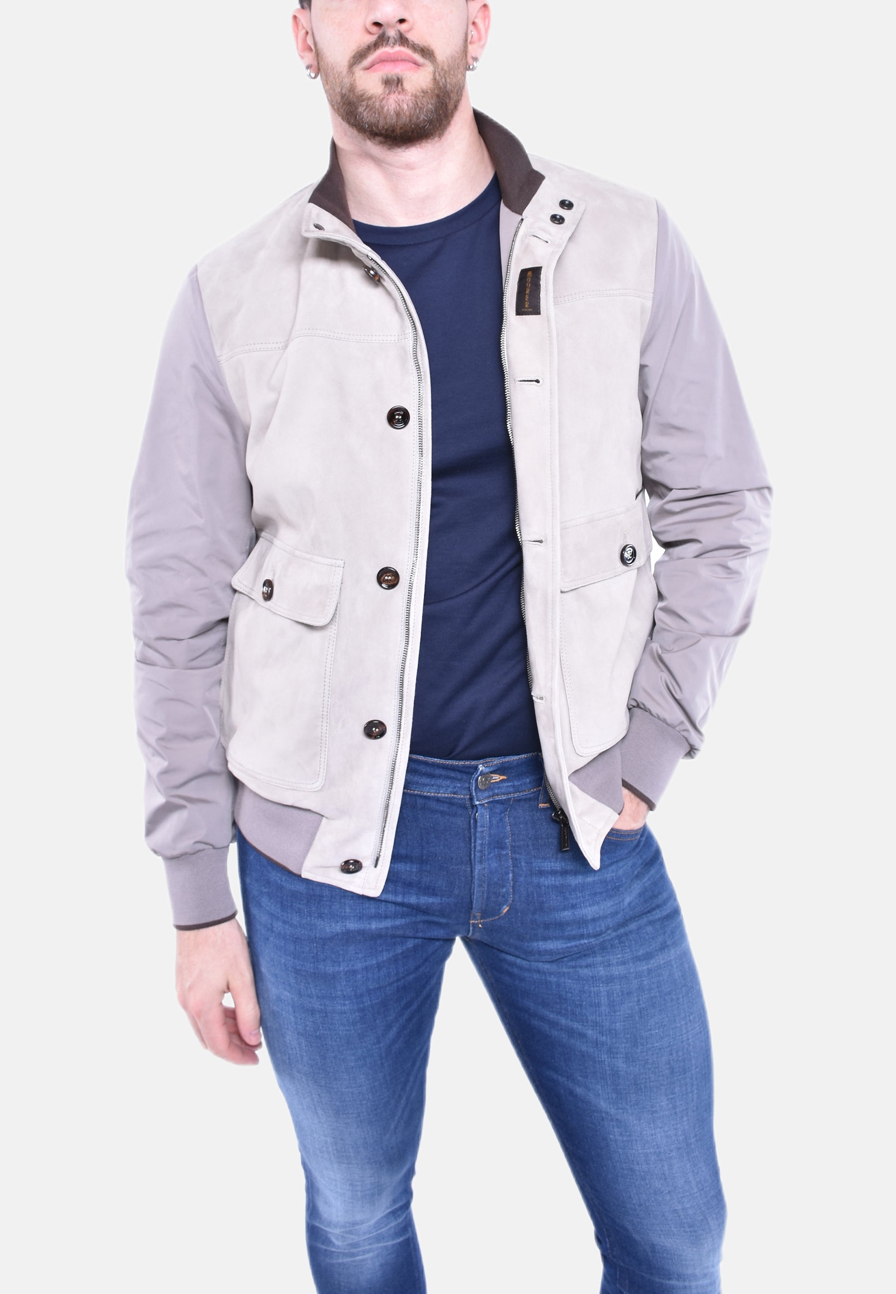 Bomber in camoscio e drill cangiante.