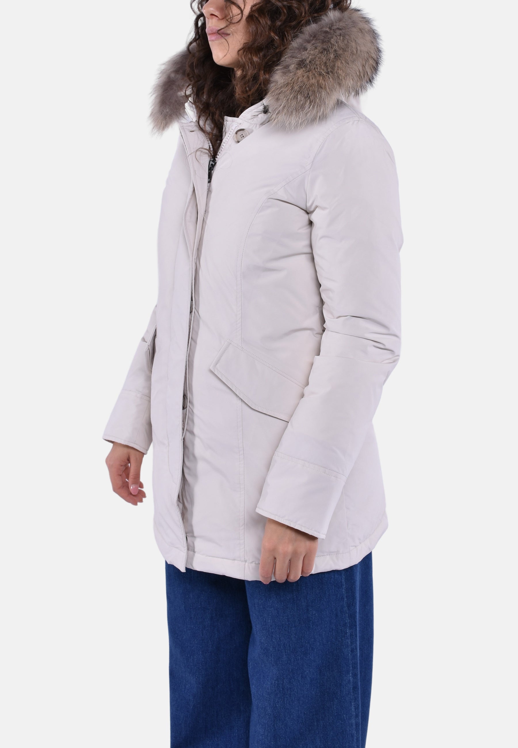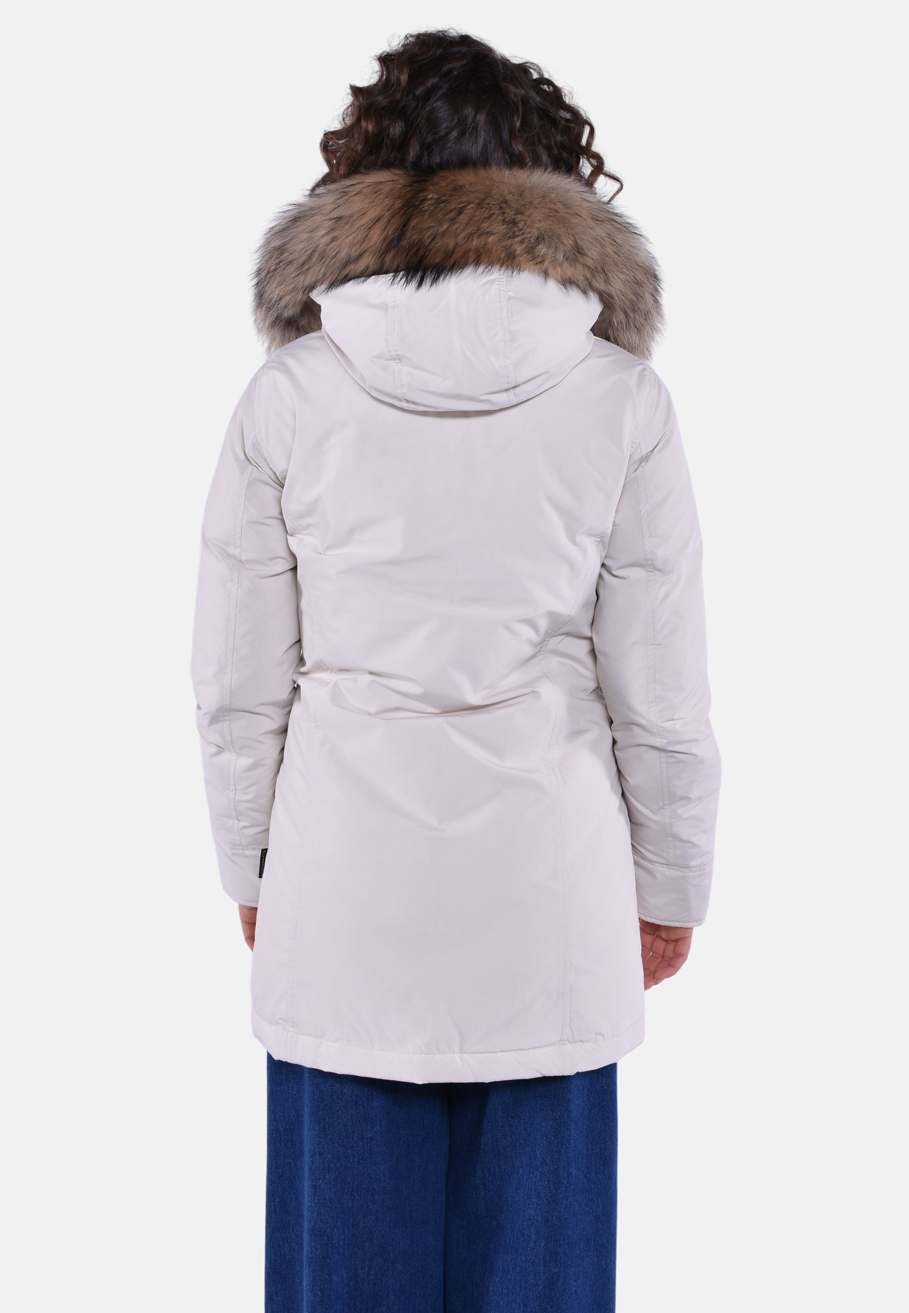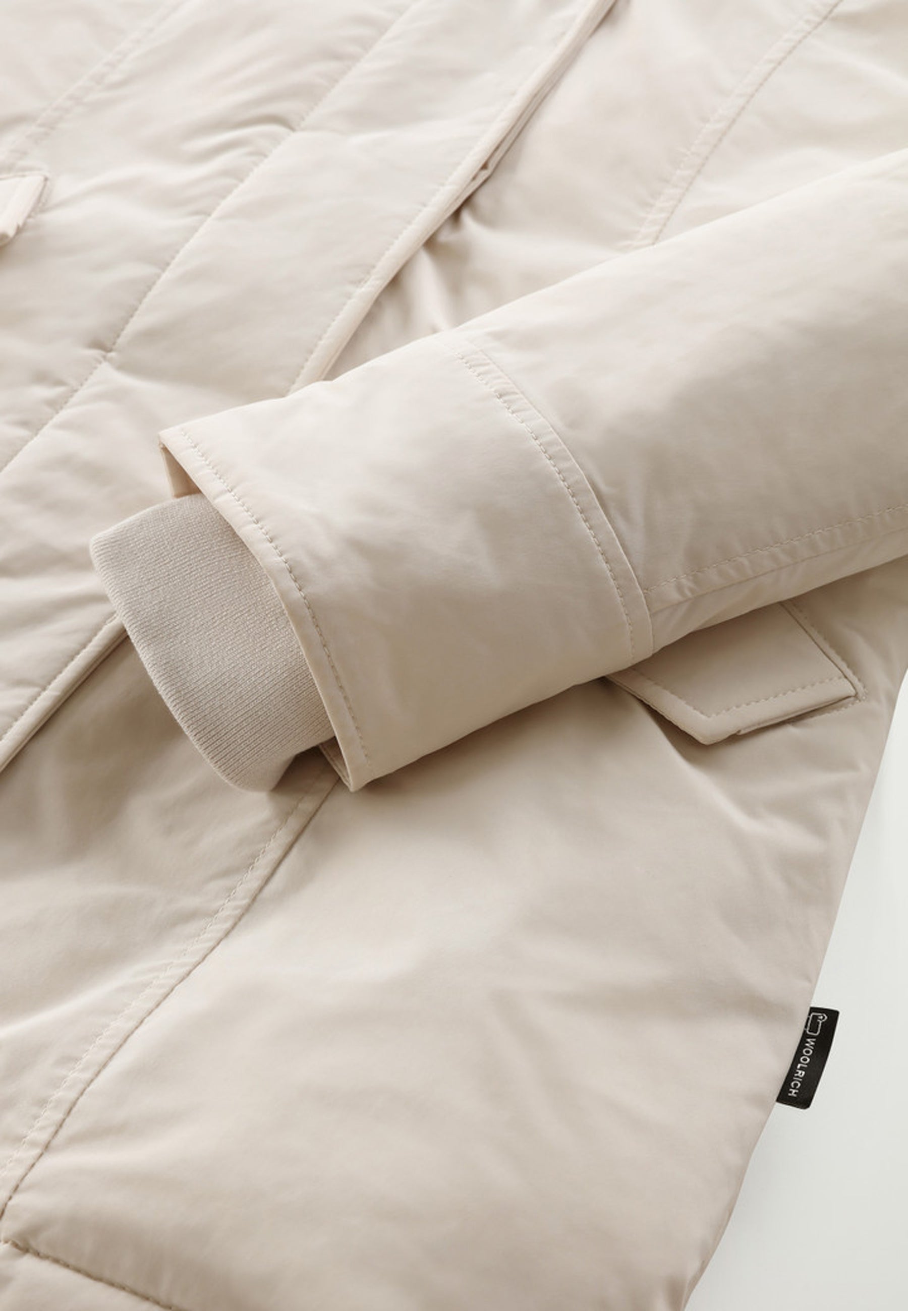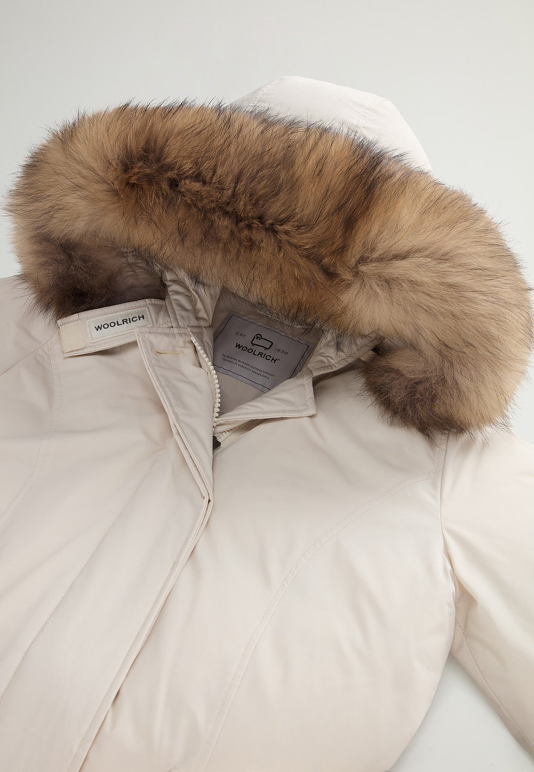 Il Luxury Arctic Parka fonde la ricca tradizione Woolrich con un tocco di femminilità, rivisitando il nostro storico modello originariamente realizzato per proteggere i lavoratori degli oleodotti dell'Alaska dai climi più rigidi. Questa interpretazione è realizzata nel nostro caratteristico tessuto Urban Touch idrorepellente, resistente al vento ed è imbottita in piuma d'anatra e completata da un ampio cappuccio. L'inserto staccabile in pelliccia di procione valorizza il design con un tocco pregiato, mentre le ampie tasche e i polsini a costine assicurano ulteriore protezione nelle giornate particolarmente fredde e ventose.