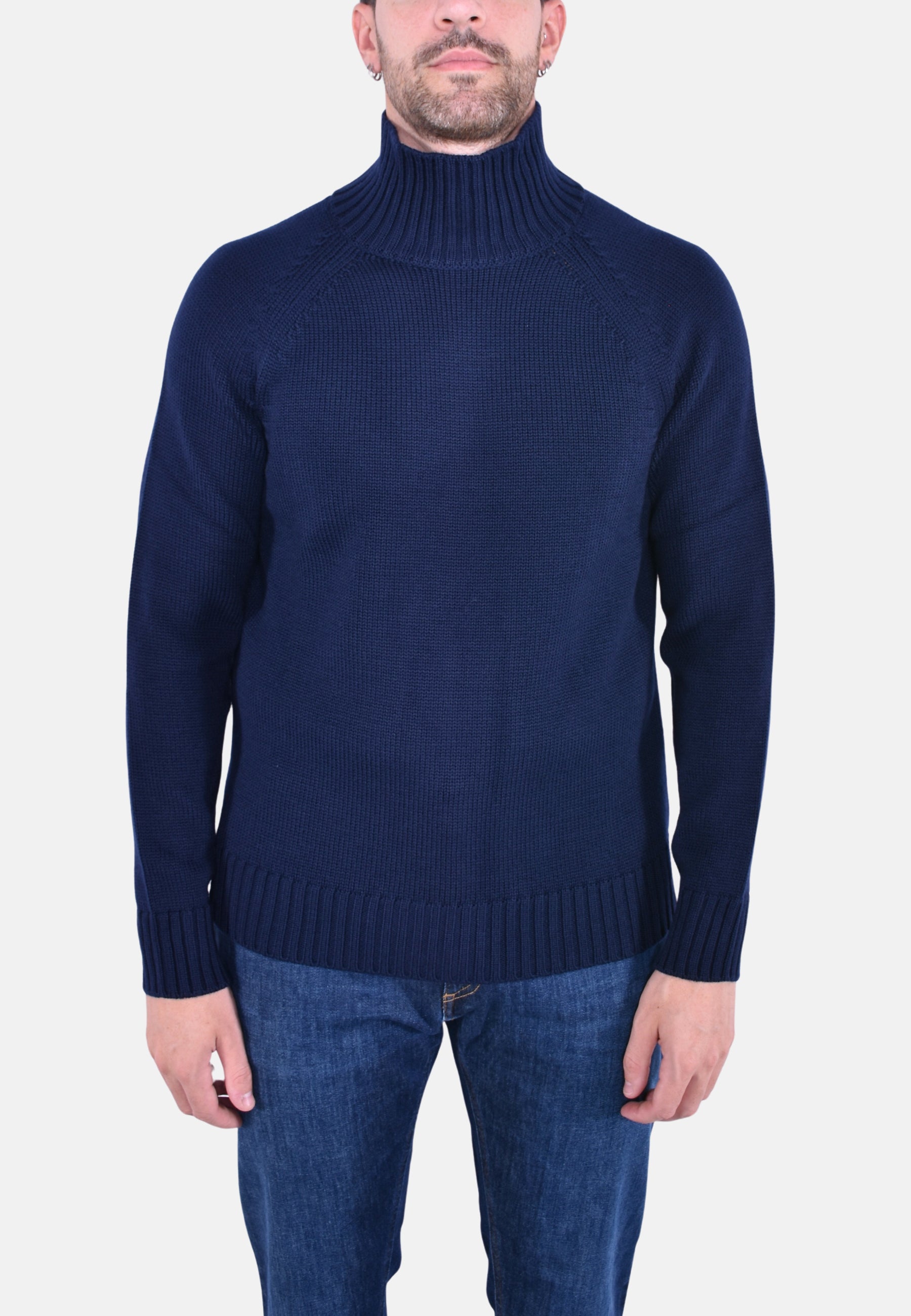 Maglia con collo alto in calda lana, finezza 5. Manica raglan e vestibilità regolare, per un capo dal sapore sportivo.