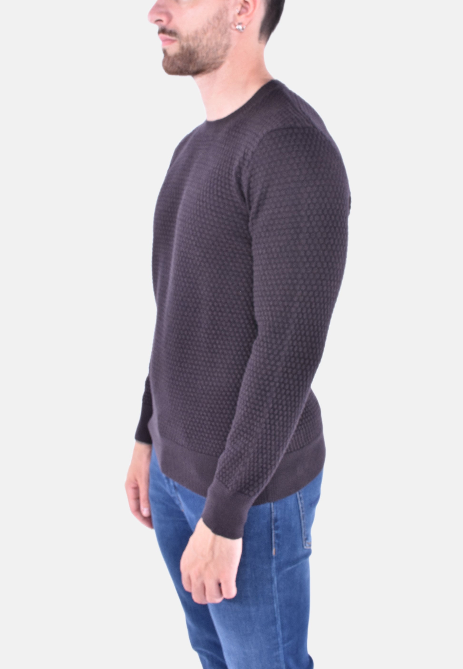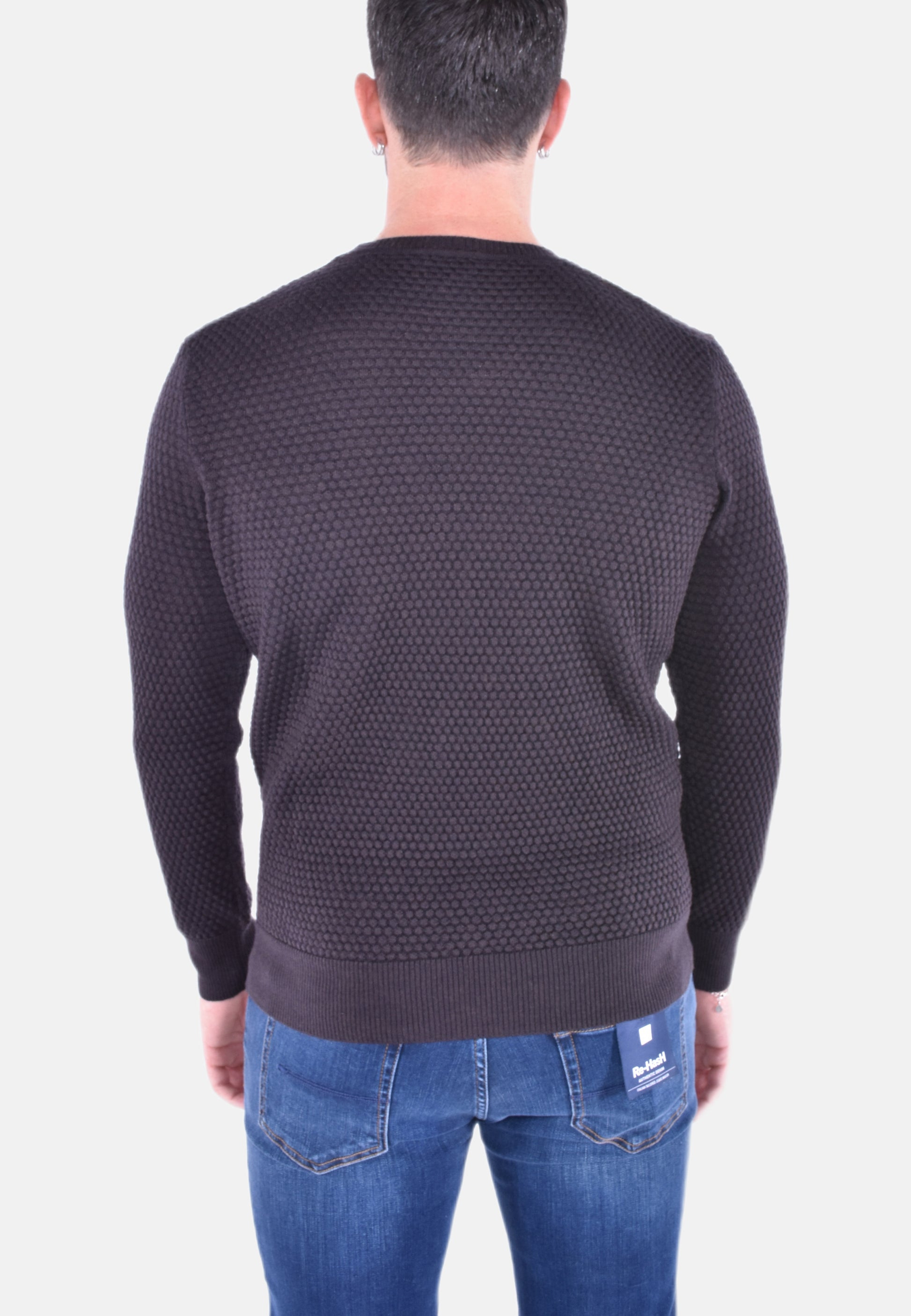Maglione girocollo in morbida lana stretch con fantasia a pallini in rilievo.