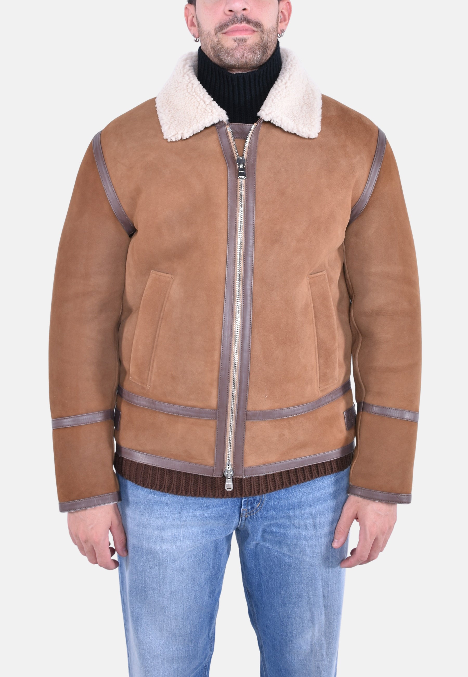 Giaccone regular zippato con collo a camicia, tasche con maxi filetto diagonale e cintini su fianchi. Shearling. Logo Dondup. Made in Italy