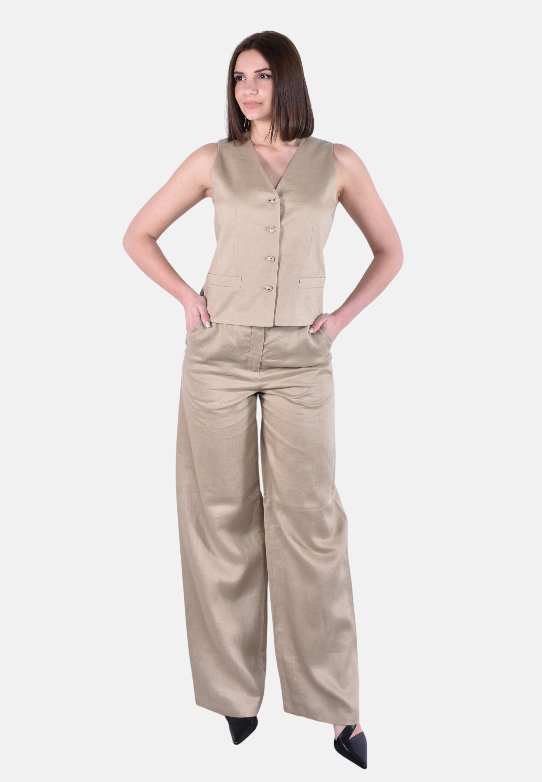 Gilet in tela leggera di puro lino lavato