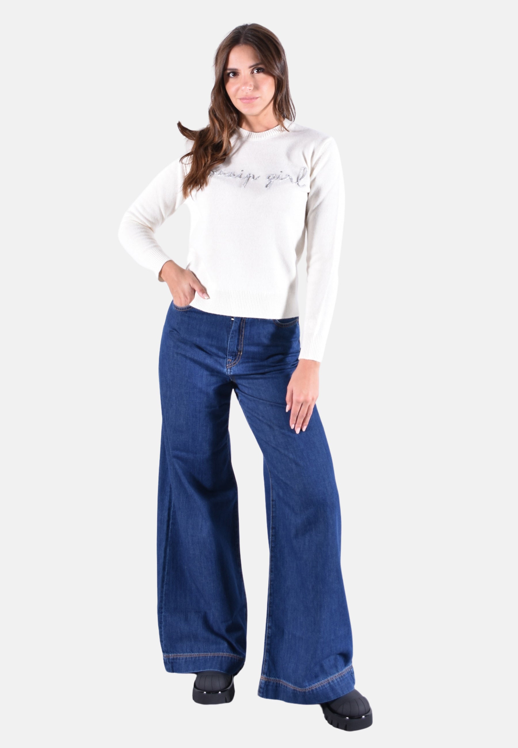 New Queen bianco fa gossip di stile: il ricamo in lurex Gossip Girl illumina il tuo knit essenziale.