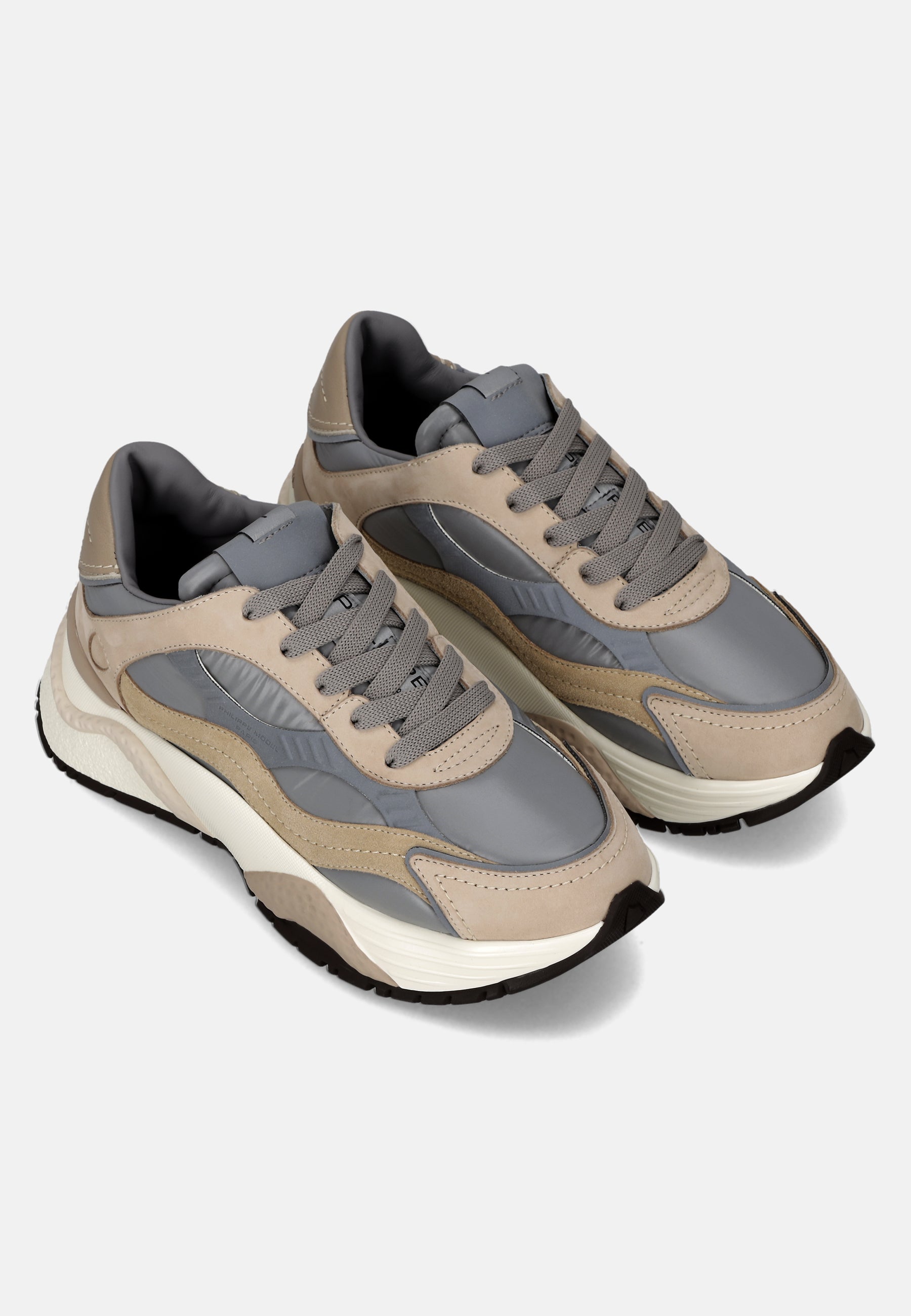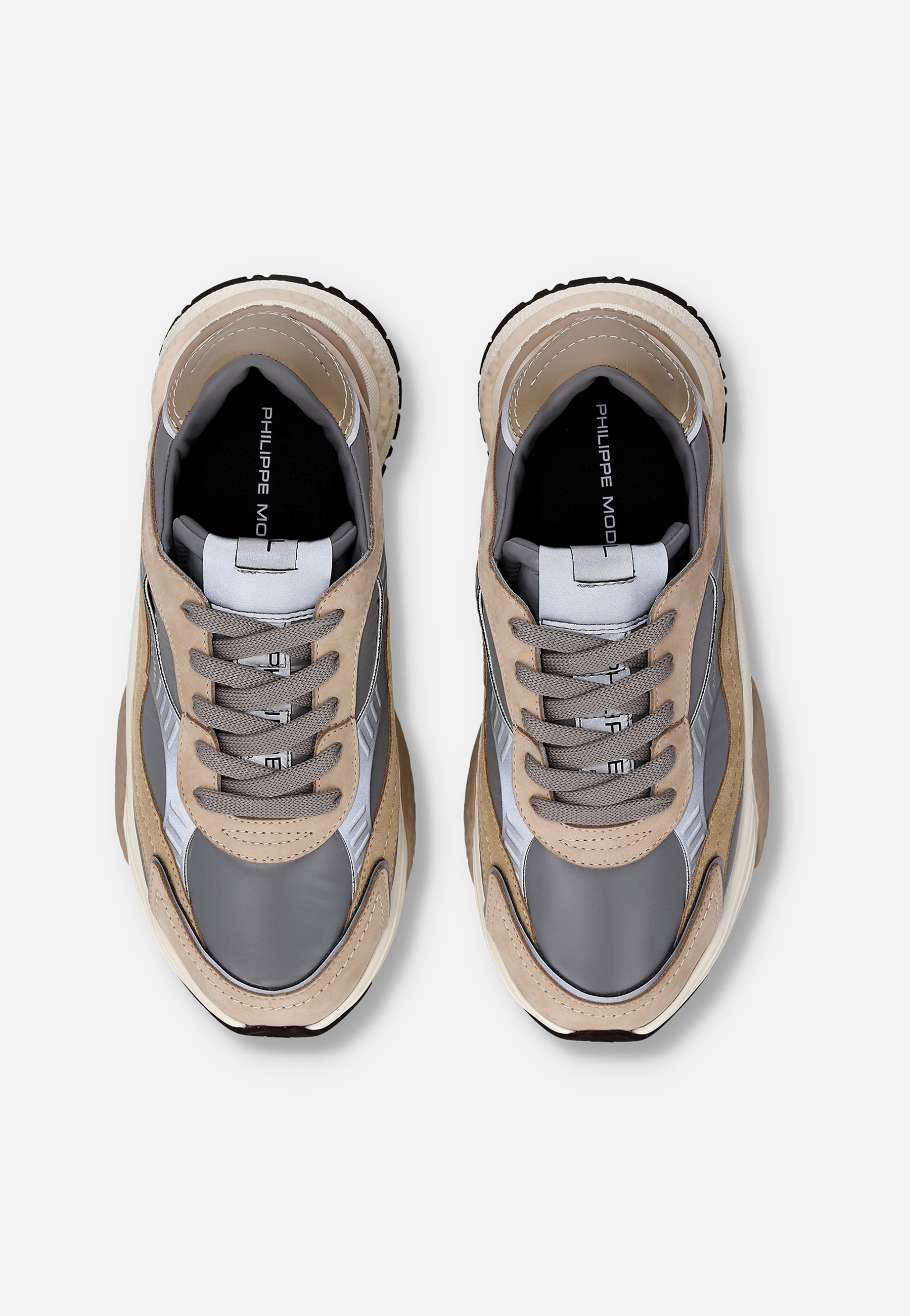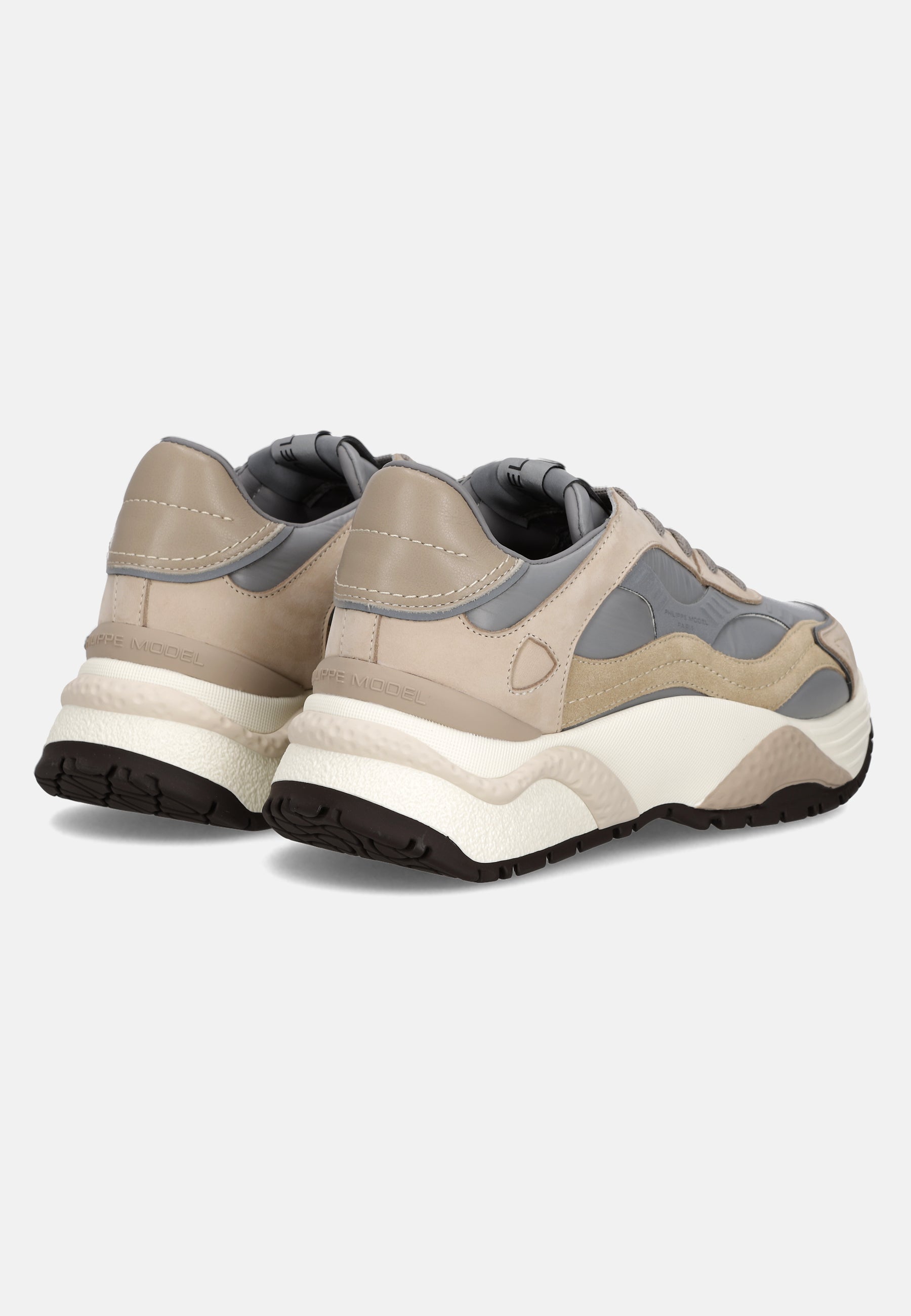 Nuova running dalle forme contemporanee e uno stile bold, una sneaker moderna contemporanea, che prende ispirazione dal mondo cittadino. La tomaia è in suede traforato con inserti in suede come lo scudo lavorato ad alta frequenza sul tallone. In versione bassa con una suola platform dinamica color burro e bianco.