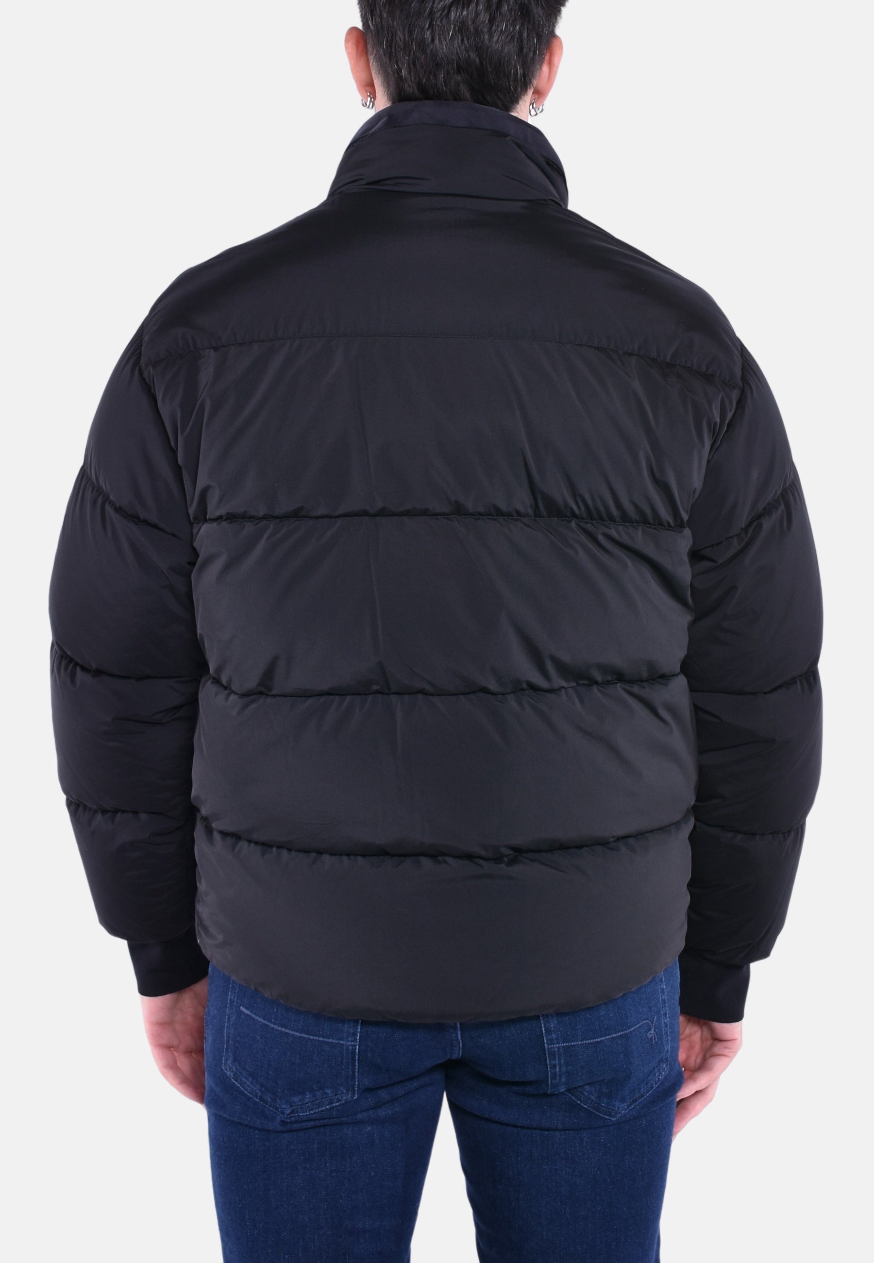 Piumino corto realizzato in Nycra-R, composto da ECONYL® elasticizzato 100% rigenerato. Tinto in capo con trattamento anti-goccia.