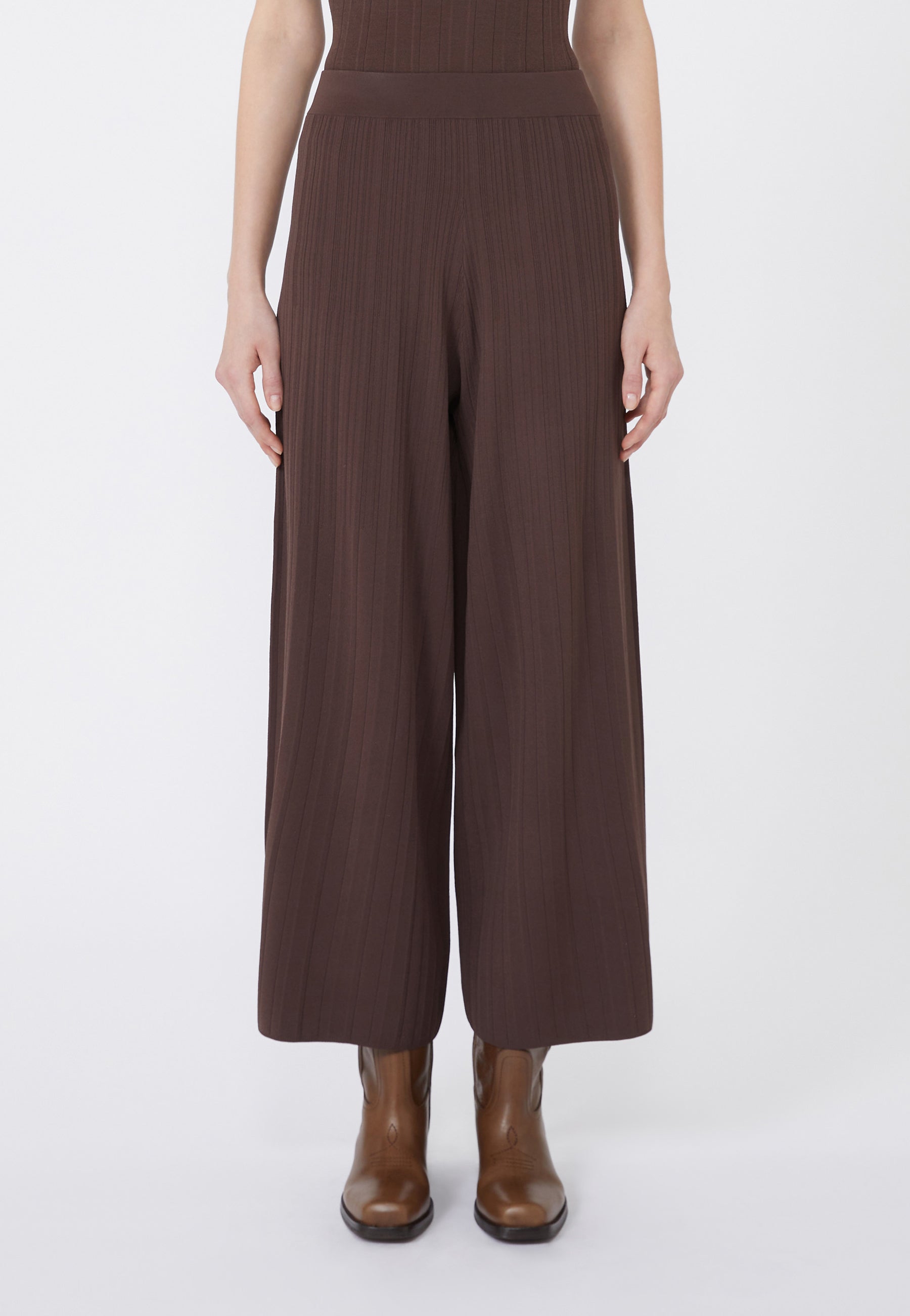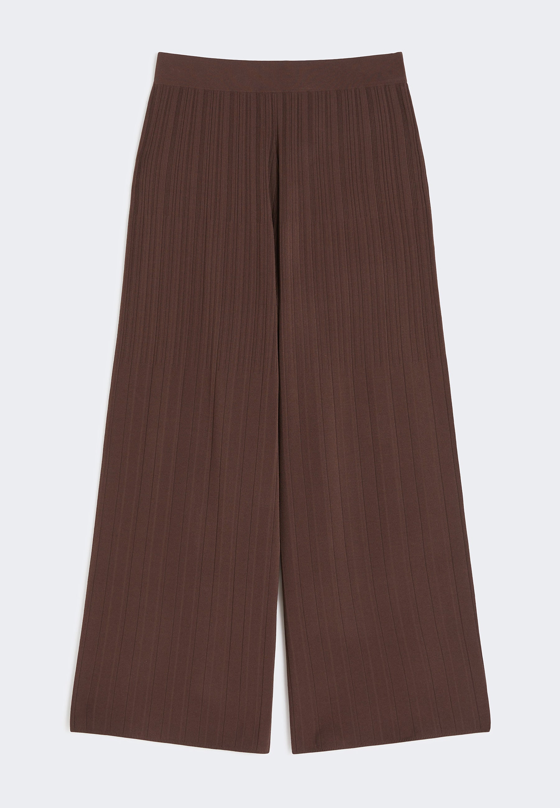 Pantalone crop, caratterizzato da una lavorazione a pieghe plissé che dona movimento.