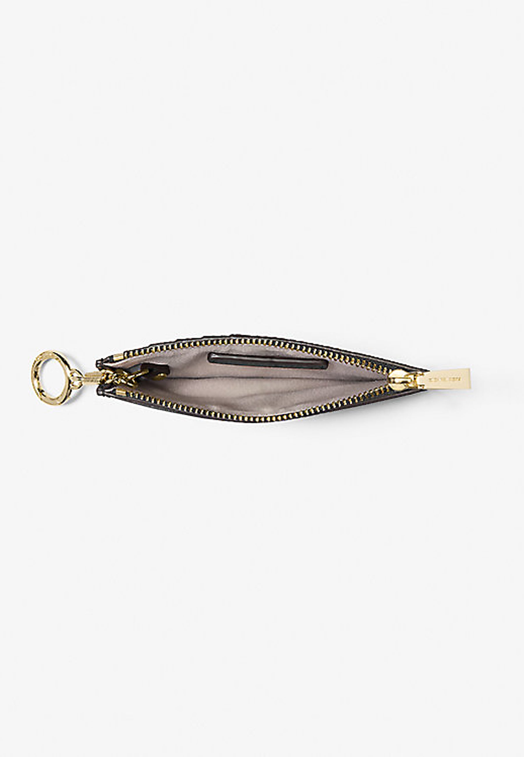 Questo accessorio compatto della gamma Jet Set mantiene le tue carte perfettamente organizzate. Realizzato in pregiata pelle martellata con dettagli in metallo tonalità oro, presenta una chiusura con zip e un comodo portachiavi. Per le tue commissioni o una serata fuori, questo porta carte è il compagno perfetto. Grazie alla speciale confezione, è un'idea regalo perfetta.