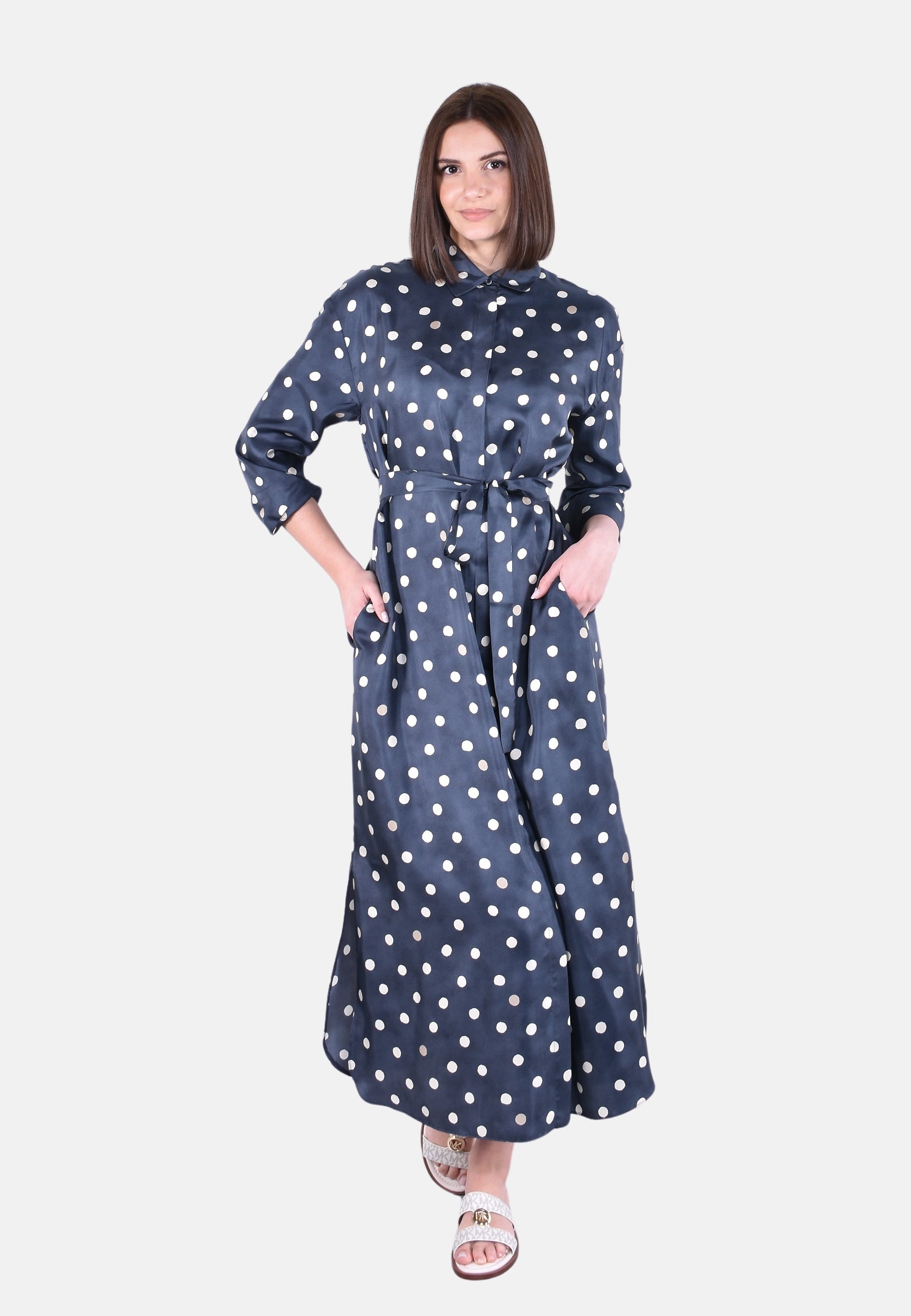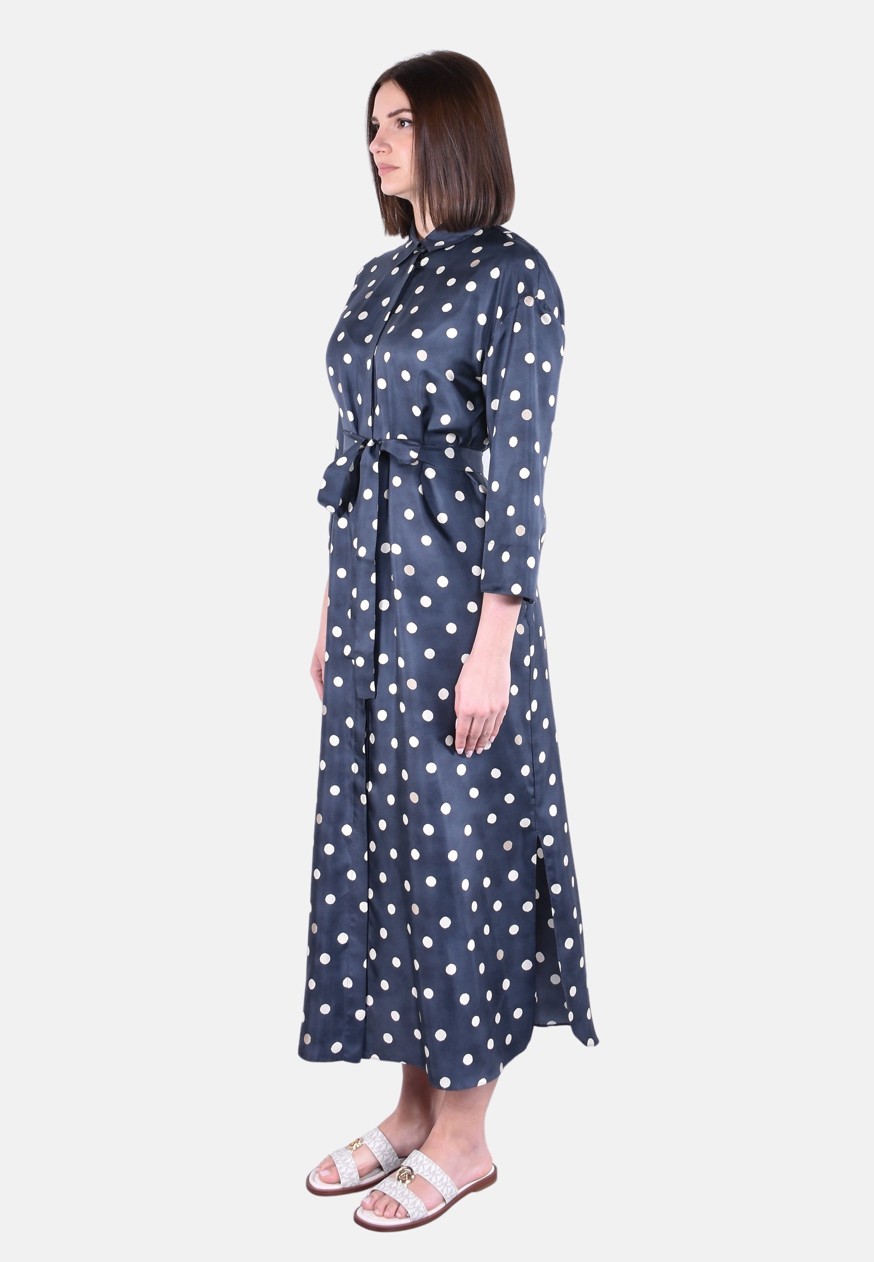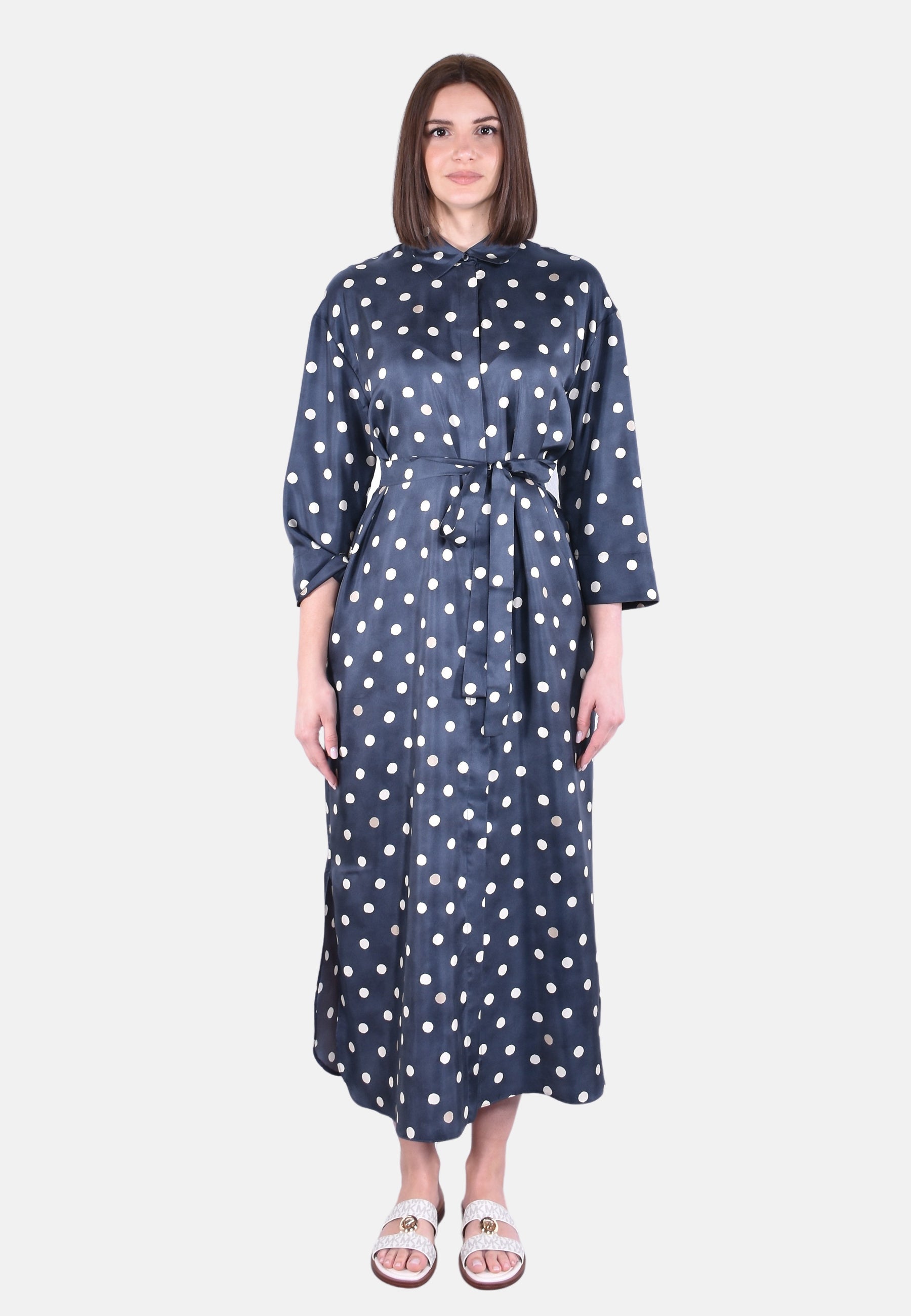 Colletto a camicia e maniche 3/4 con spalla scesa