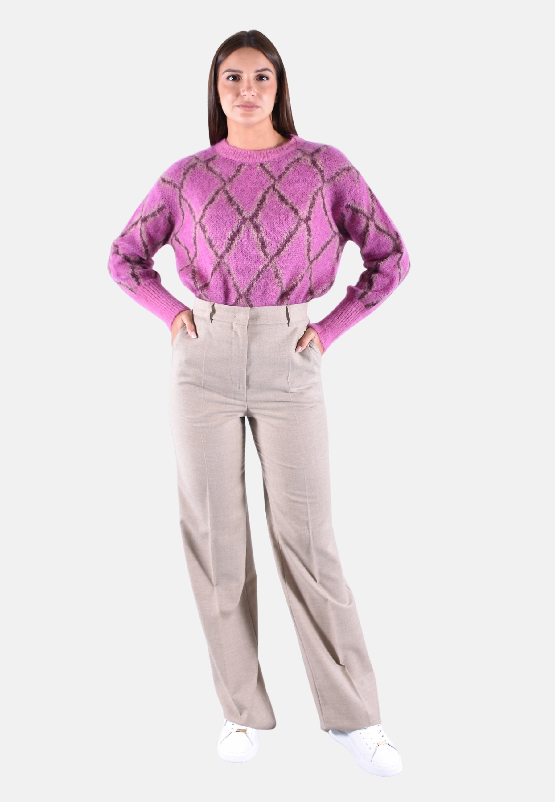 Maglia girocollo realizzata in lana e alpaca. Modello girocollo senza cuciture per una vestibilità pulita e confortevole. Fondi in costa 1×1, linea essenziale e versatile.