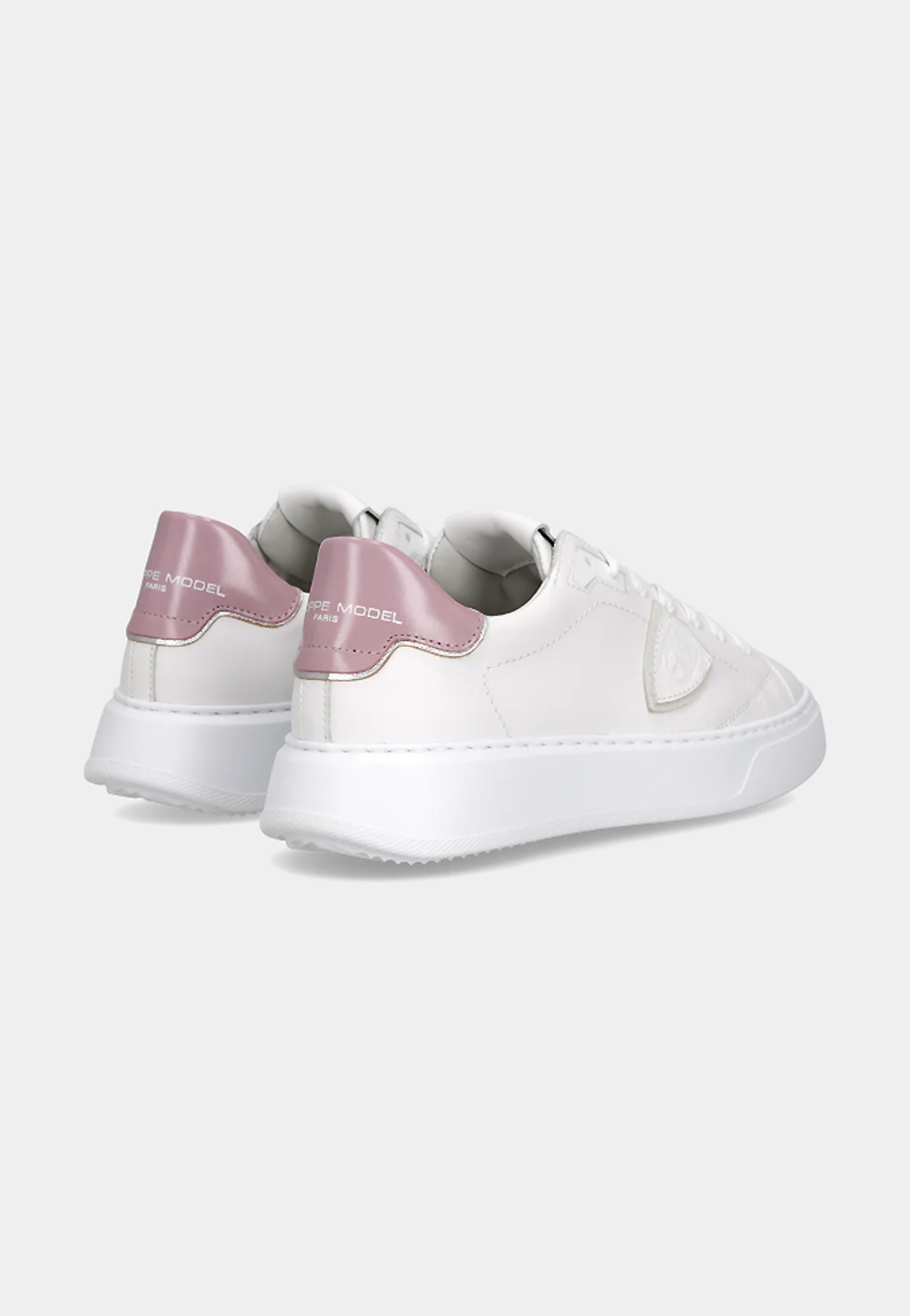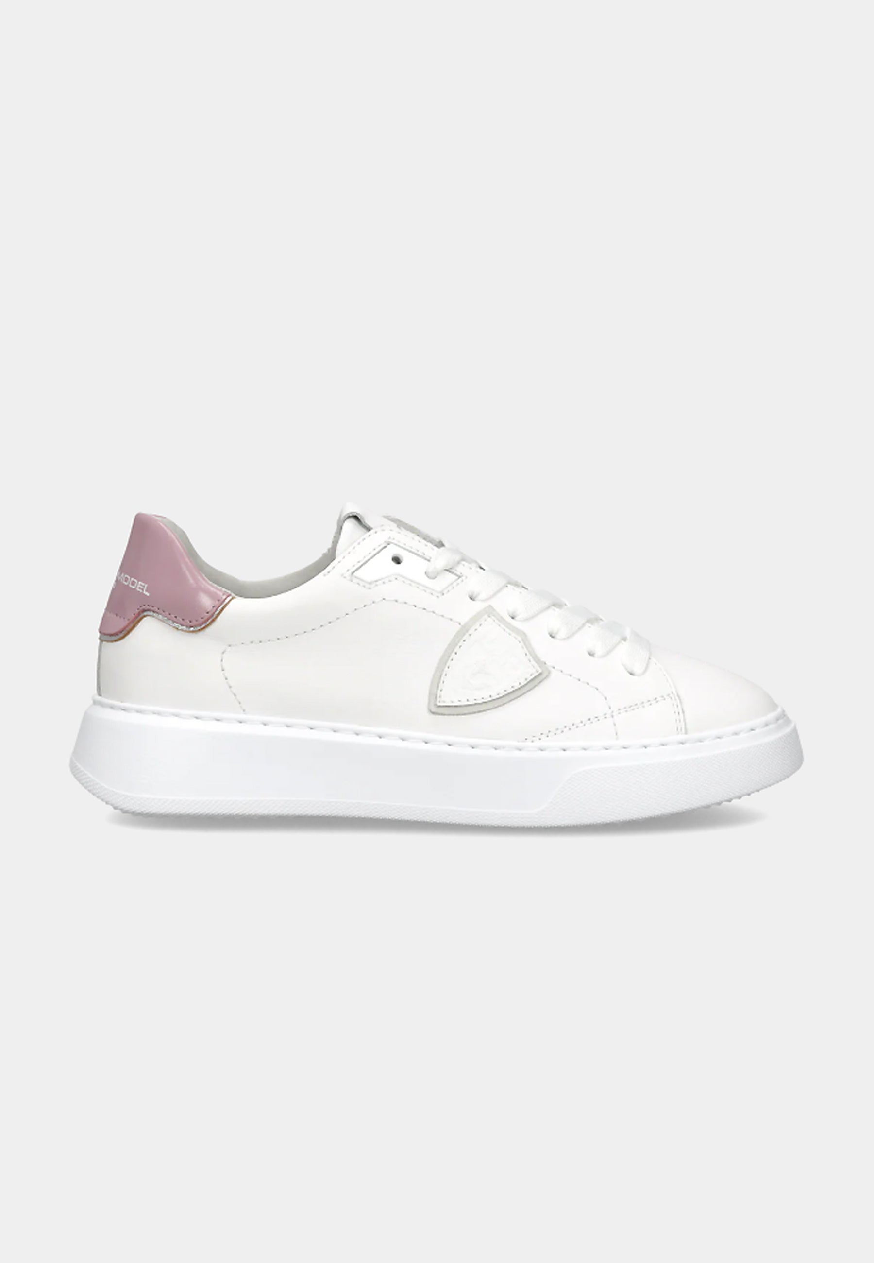 Lo stile active chic in città si chiama Temple: una sneaker da donna con suola alta dalle linee ispirate ai modelli fashion anni '90 rivisitate con creatività. La tomaia in morbido vitello bianco è completata da spoiler in vinile color malva che riprende il sottoscudo. La suola è in gomma ultraleggera.