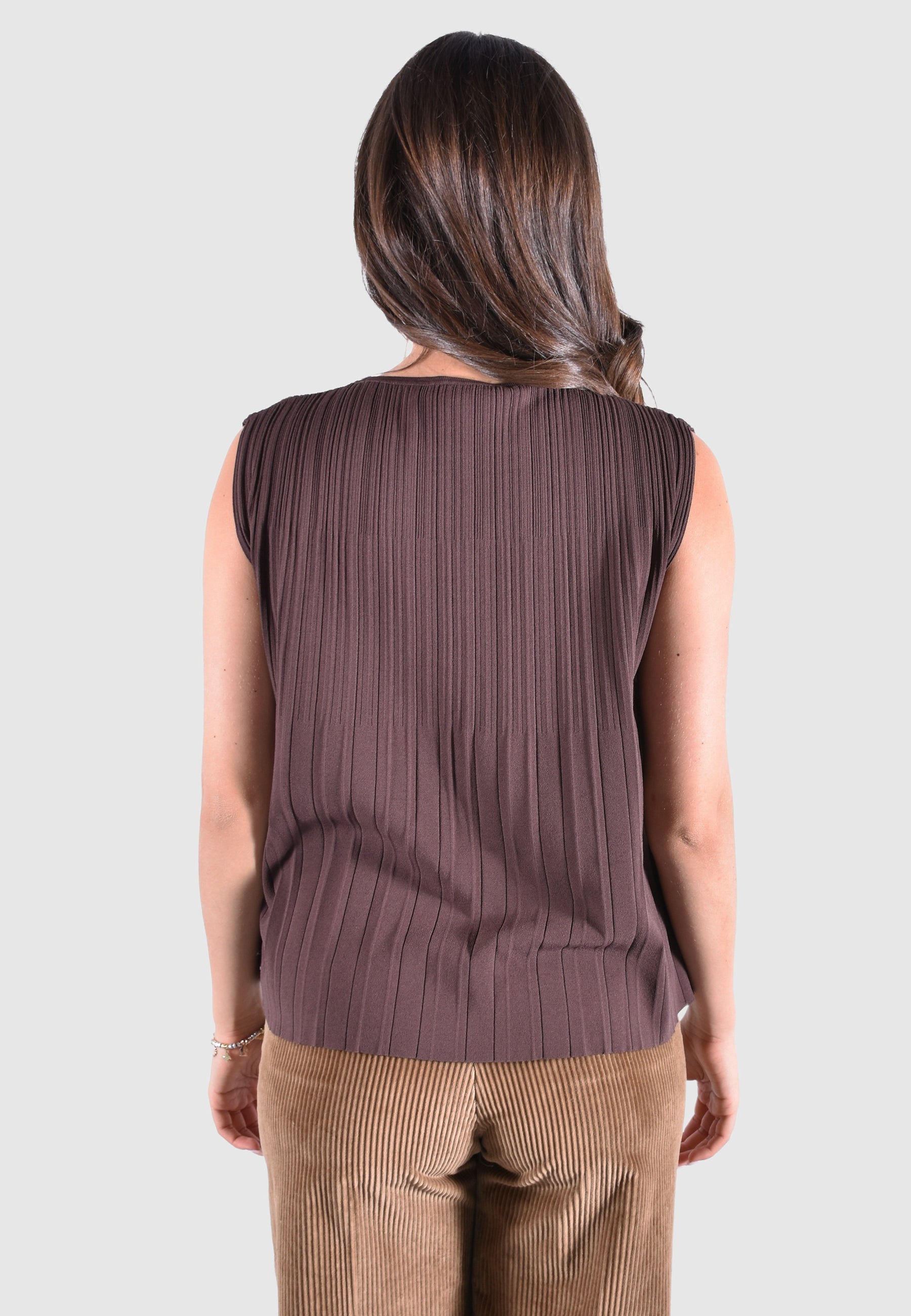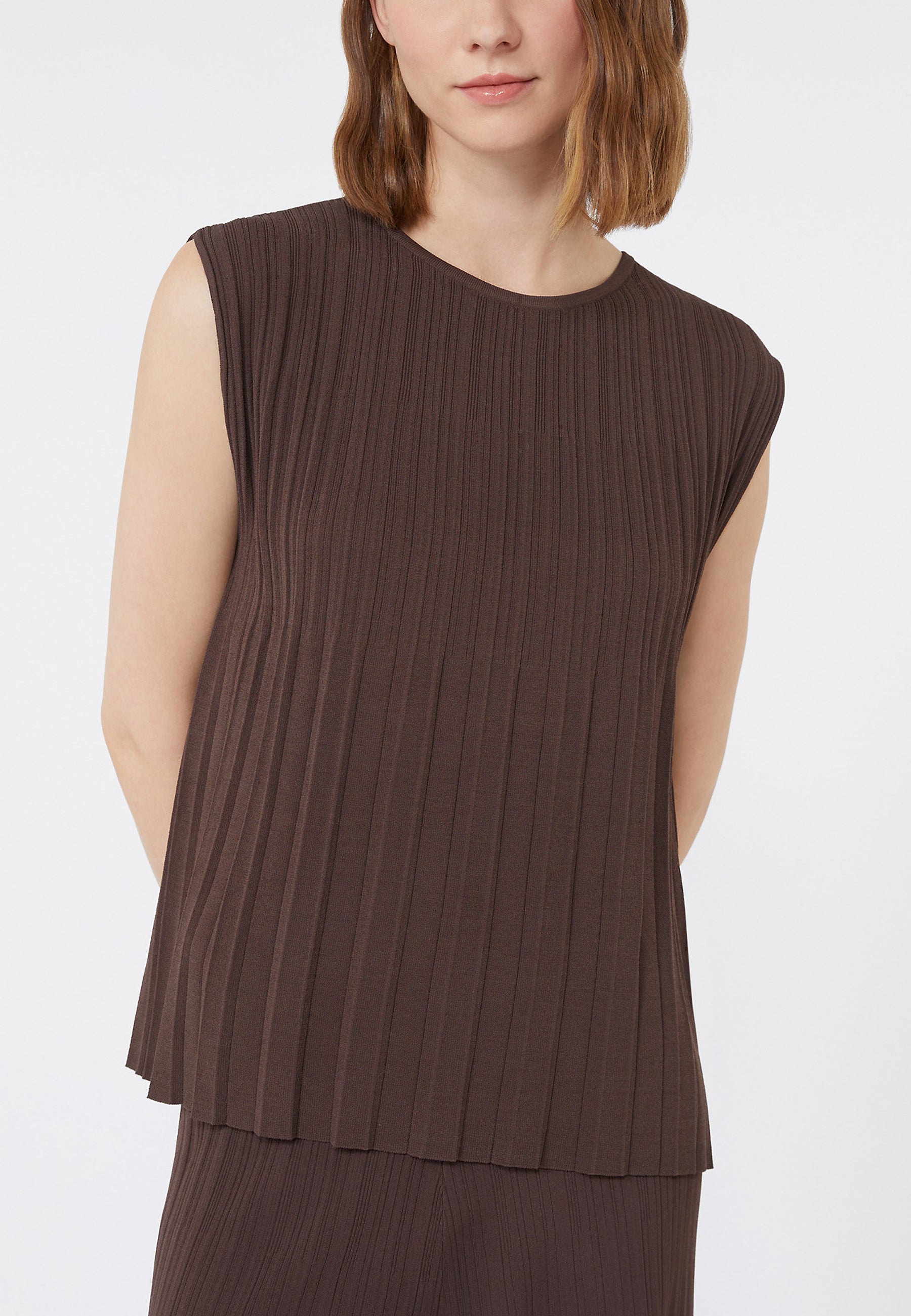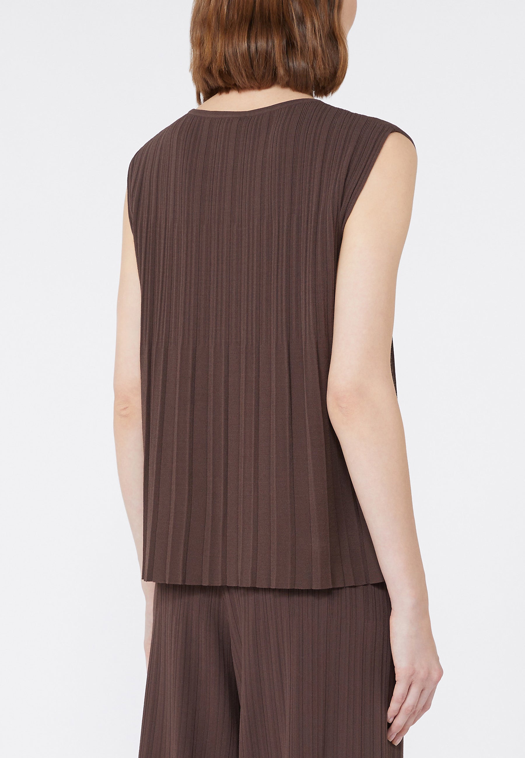 T-shirt a pieghe plissé, lavorata con effetto dégradé che evidenzia la silhouette.