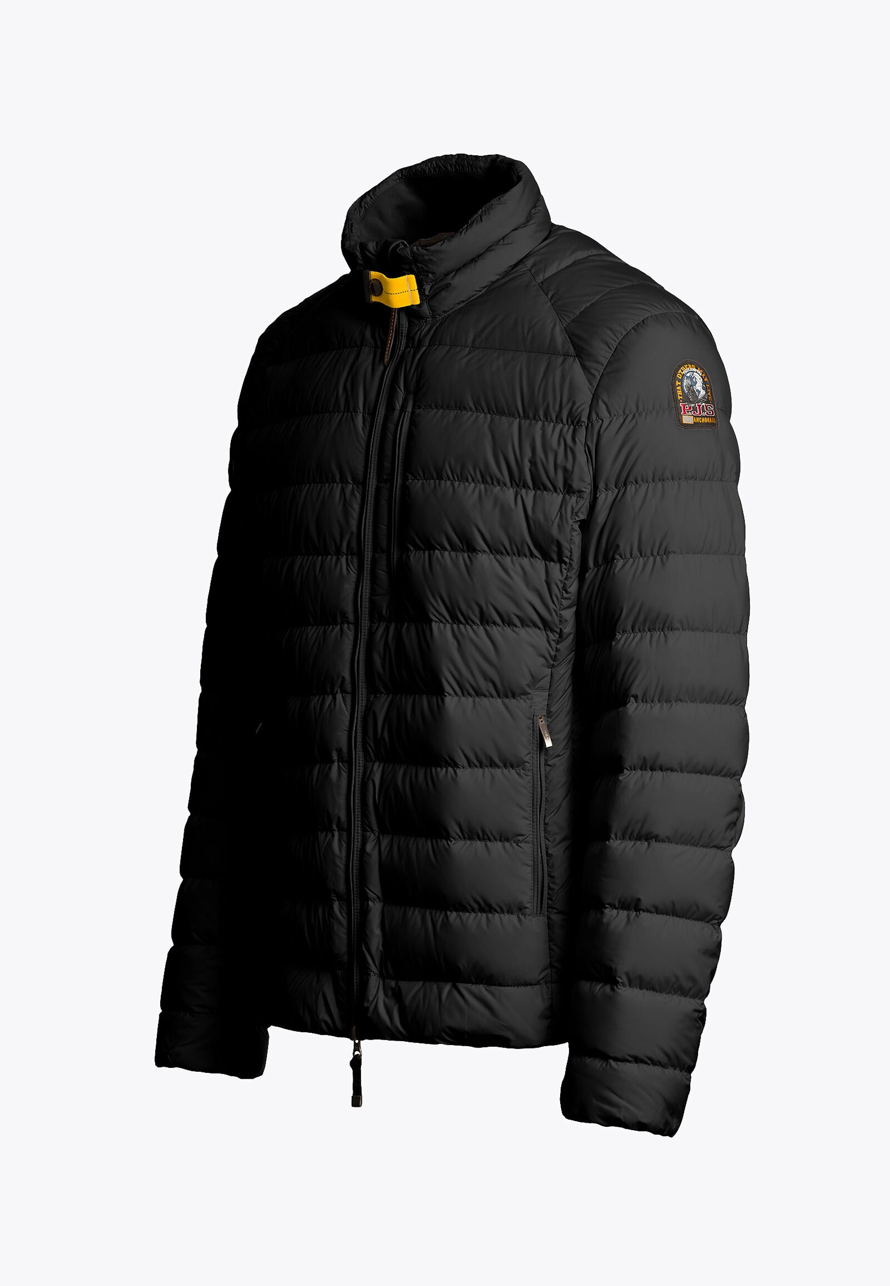 Patch Parajumpers sulla manica e iconico tape giallo a chiusura del collo