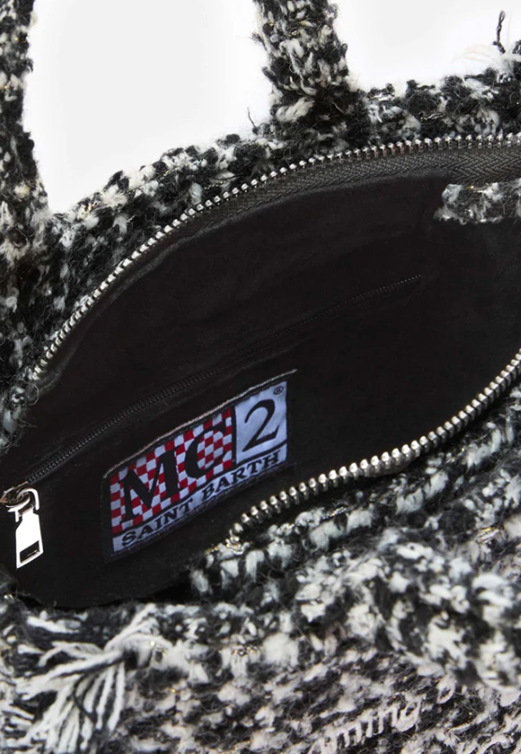 La Vanity Mini Tweed bianco e nero unisce fascino classico e design moderno per un accessorio versatile.