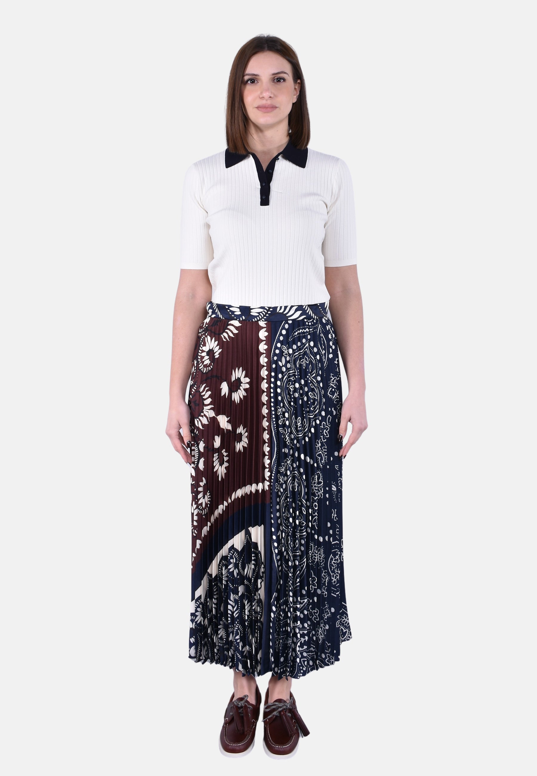 Gonna midi a pieghe plissé con motivo stampato all over.