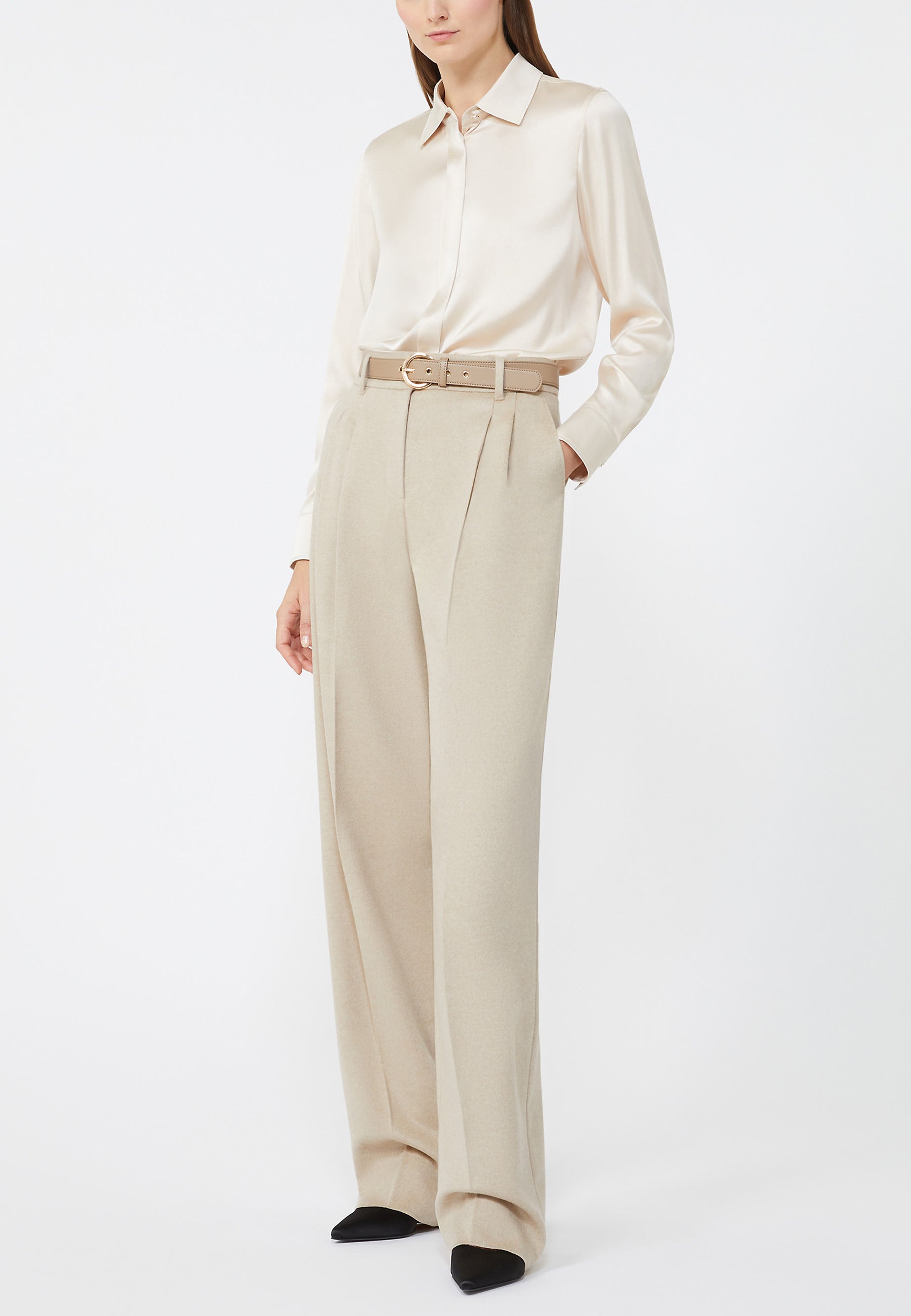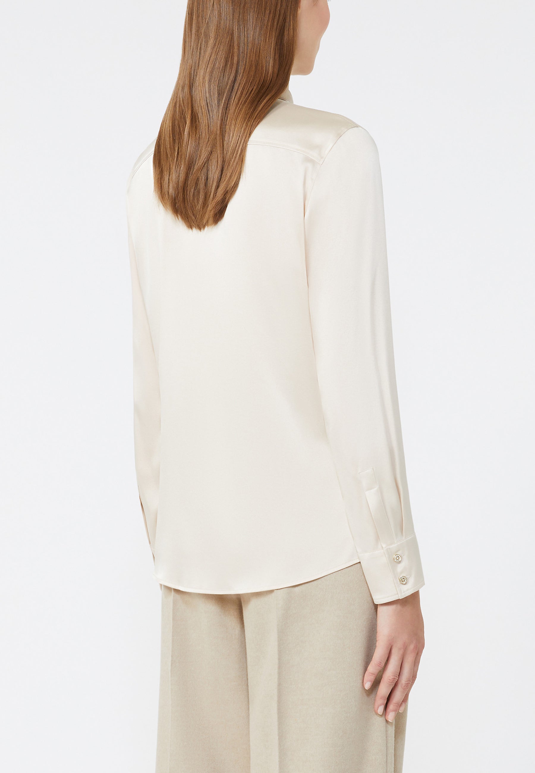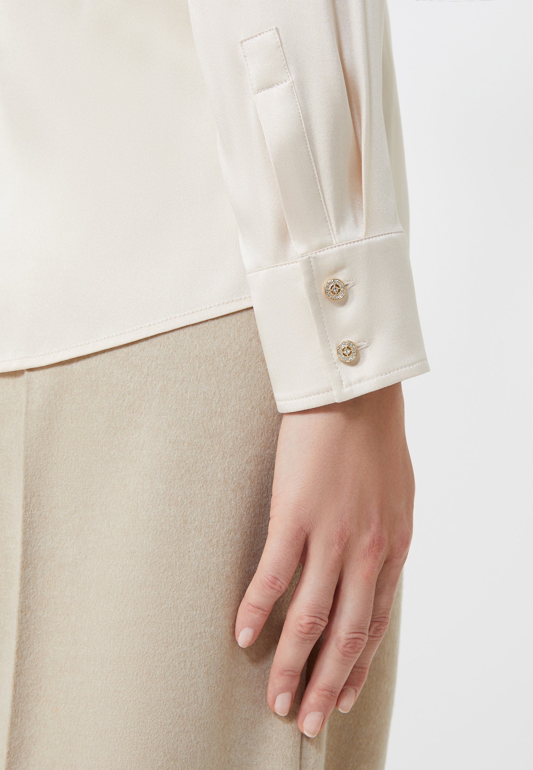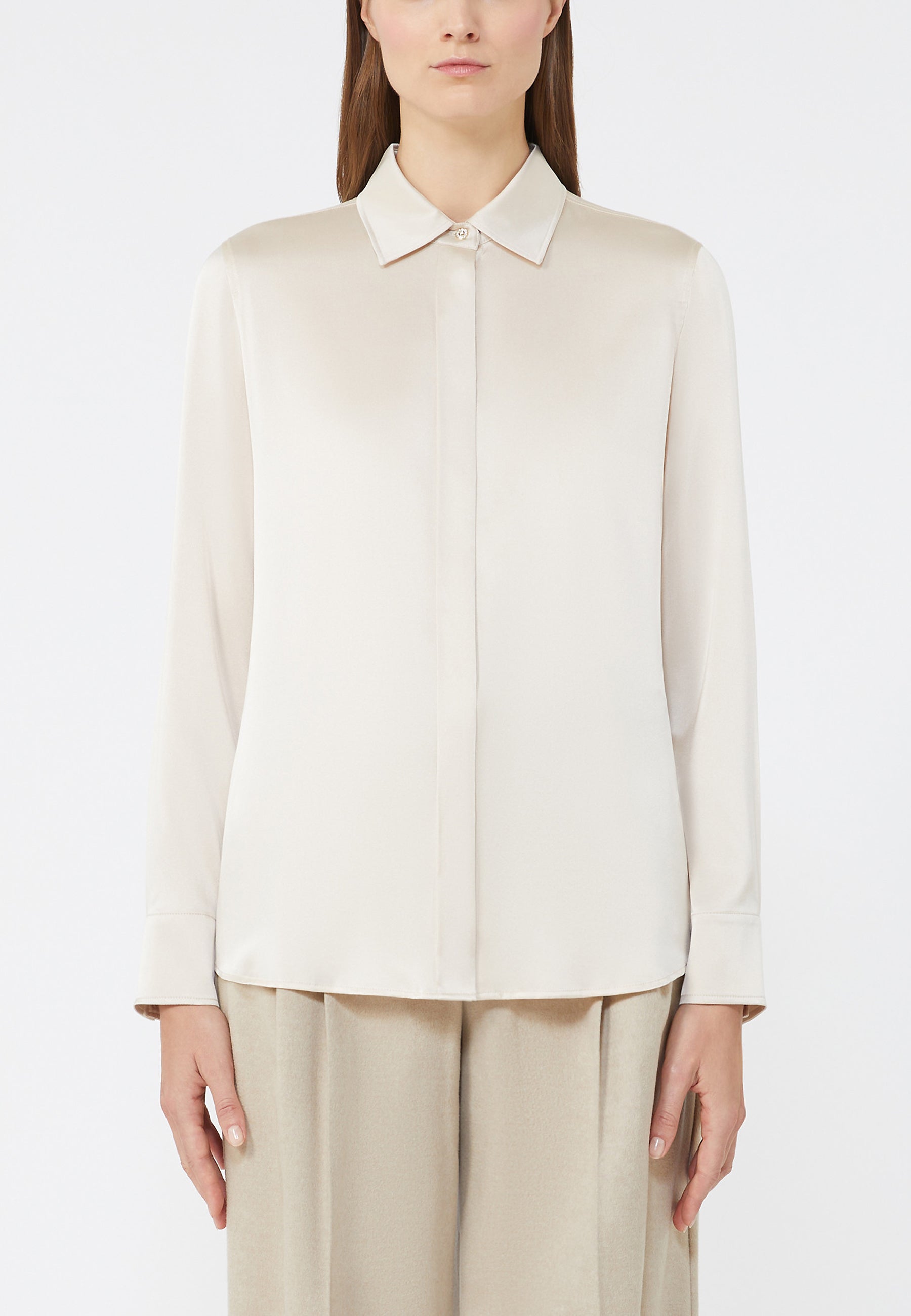 Camicia maschile in raso di seta dalla silhouette classica, caratterizzata da linee pulite ed essenziali. Dettagli tecnici e bottoni gioiello completano il modello alla perfezione. - Camicia donna in raso di pura seta - Linea dritta e fluida - Colletto a punta tradizionale - Maniche lunghe a giro - Chiusura frontale nascosta con bottoni gioiello - Polsini alti con doppio bottone