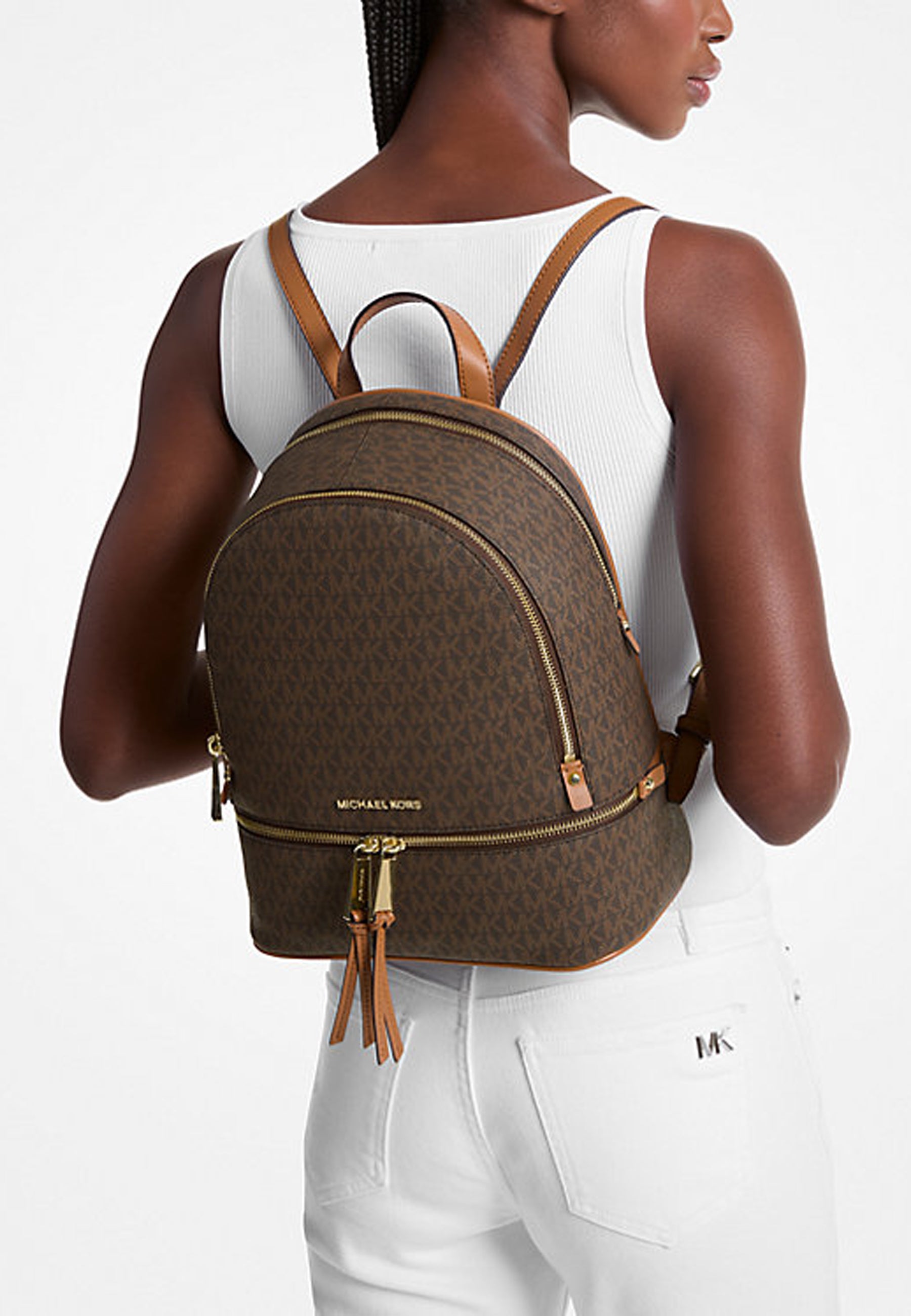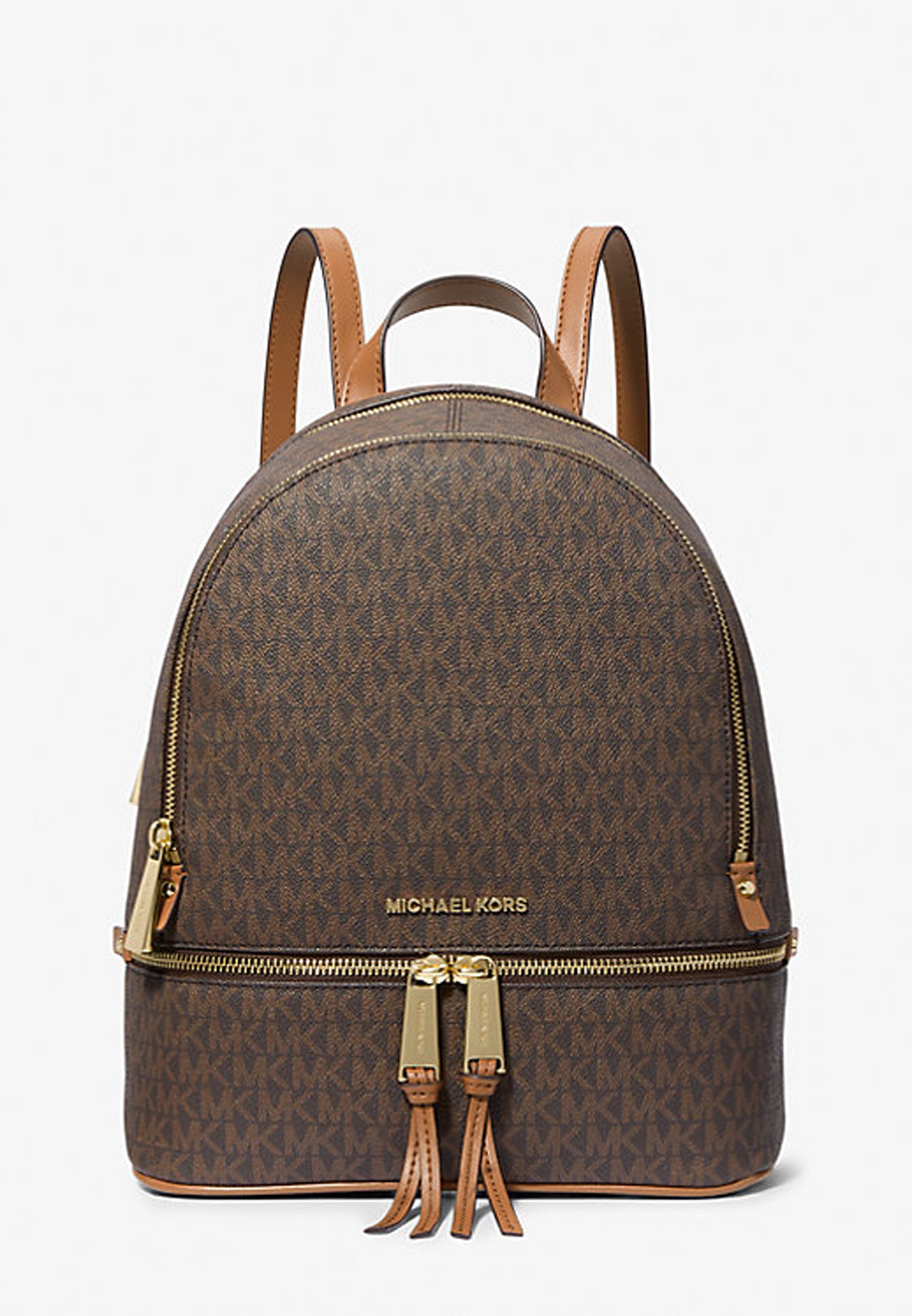 Stile casual e lusso si incontrano nel nostro zaino Rhea, che reinterpreta l'idea di accessorio metropolitano. Amiamo la combinazione della stampa con il logo e la luminosità dei dettagli in metallo. Con le sue tante tasche e i morbidi spallacci, la femminilità si fonde con un design resistente.